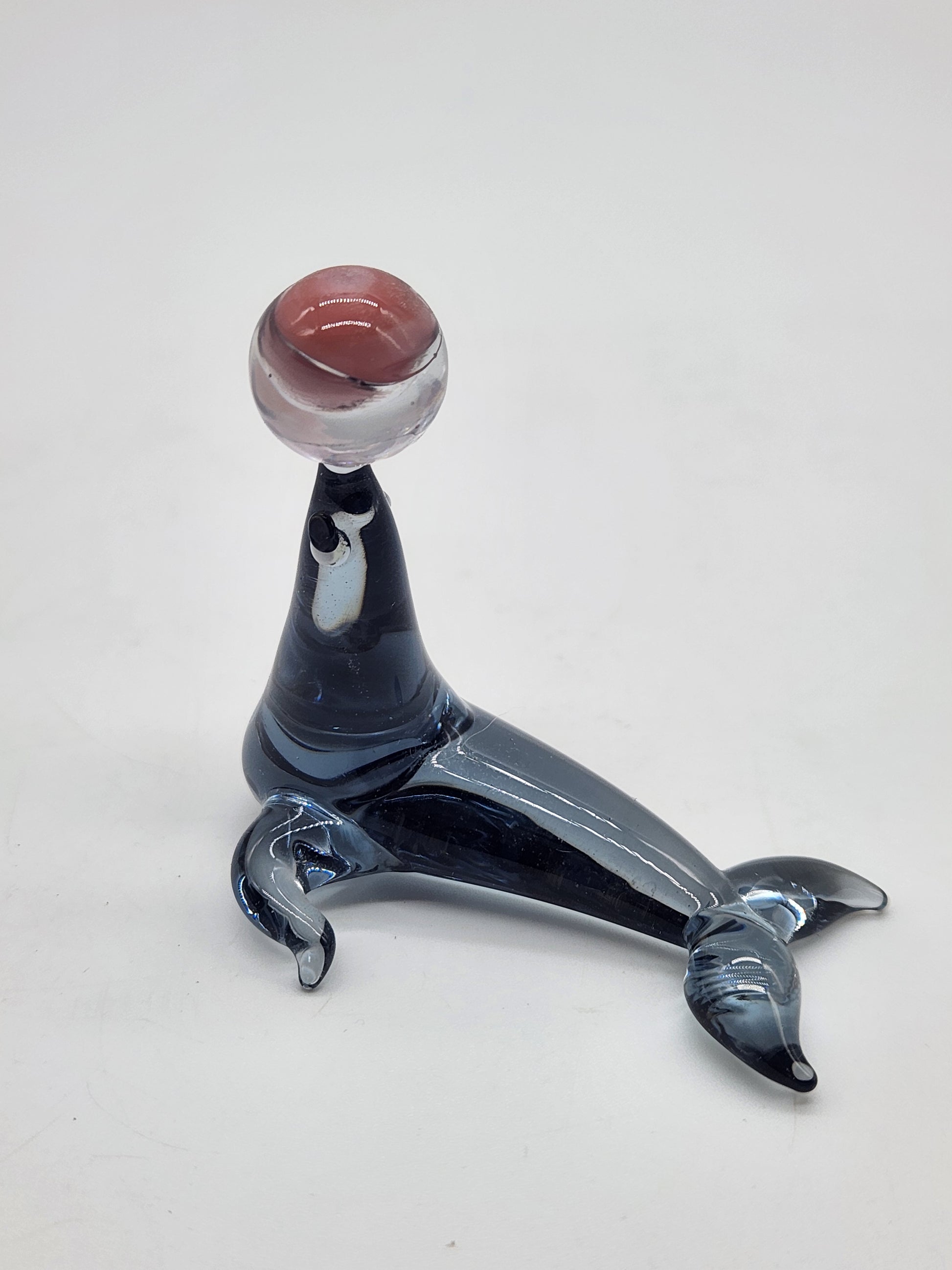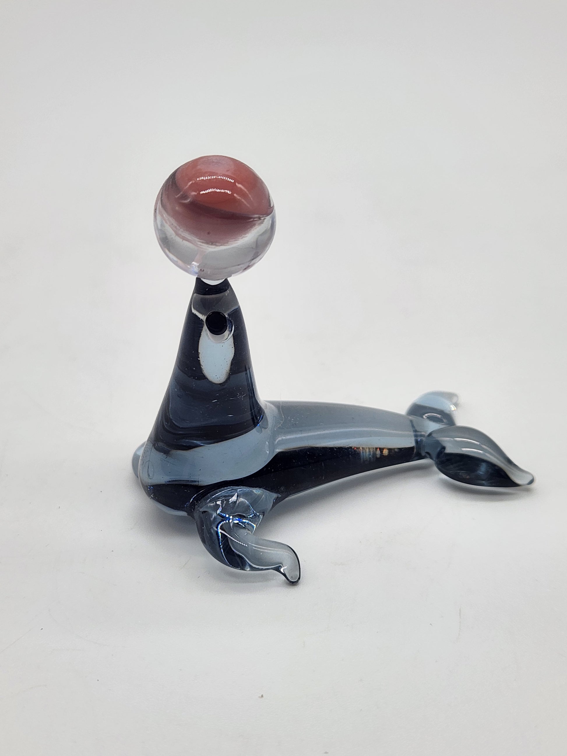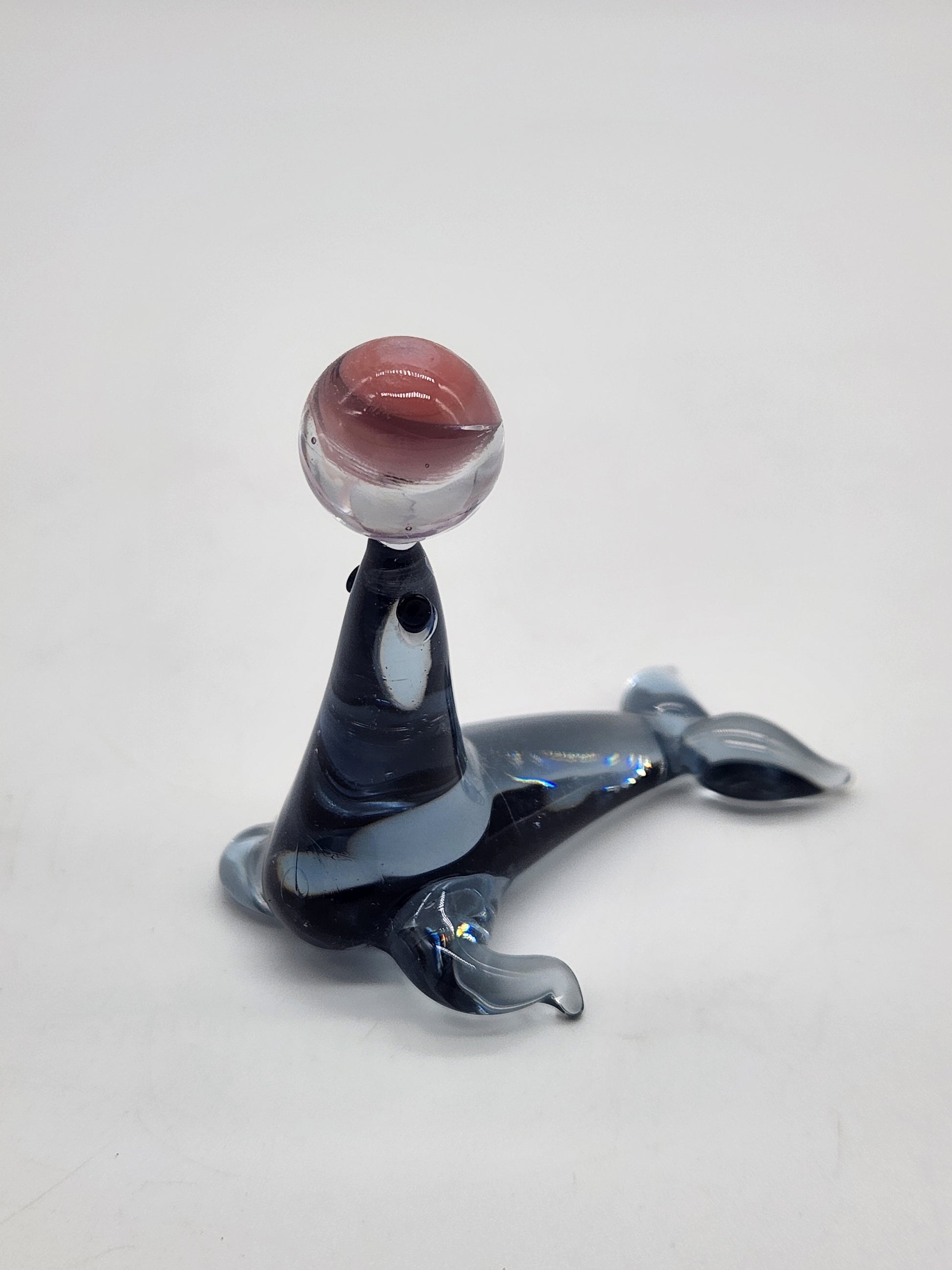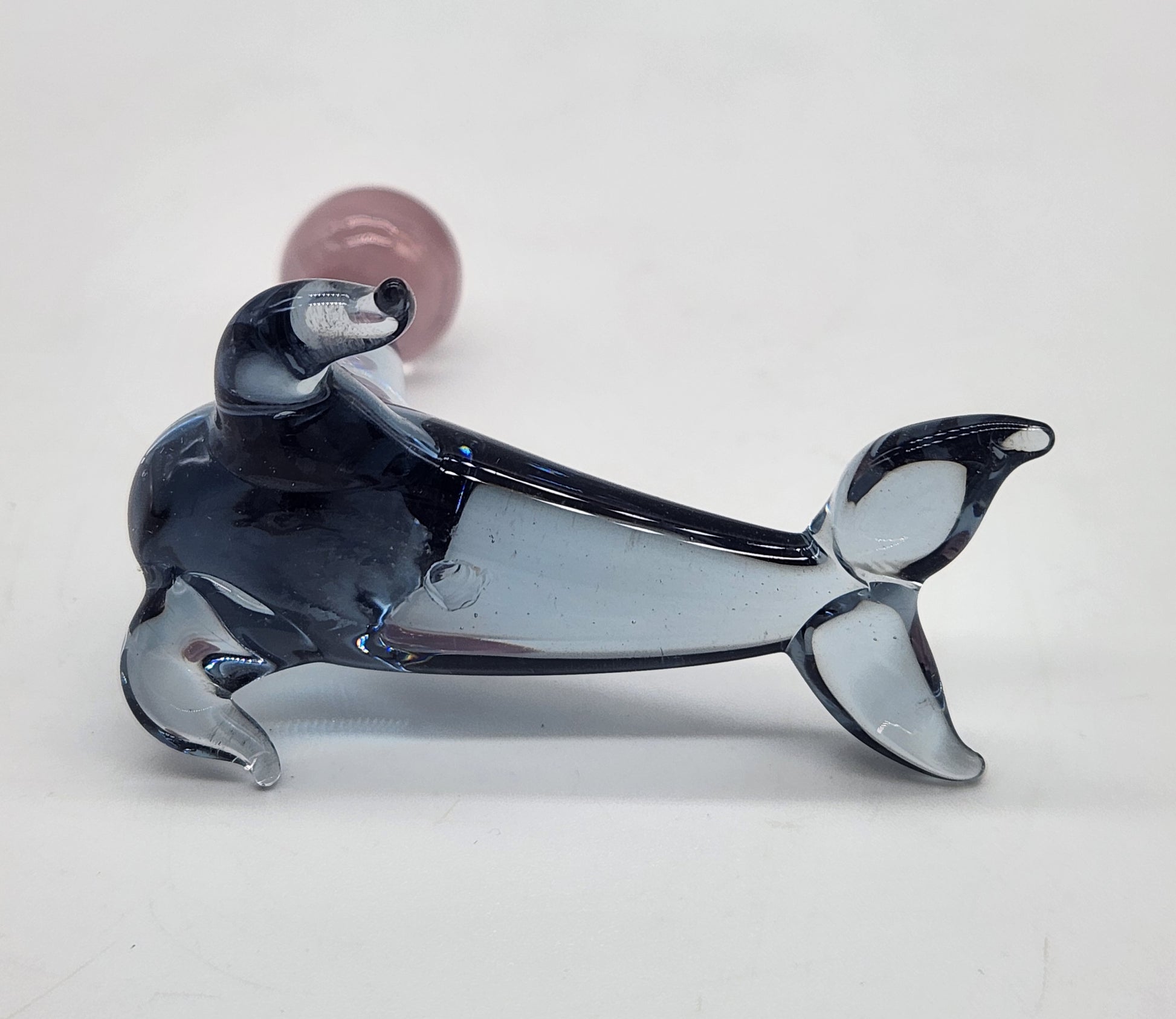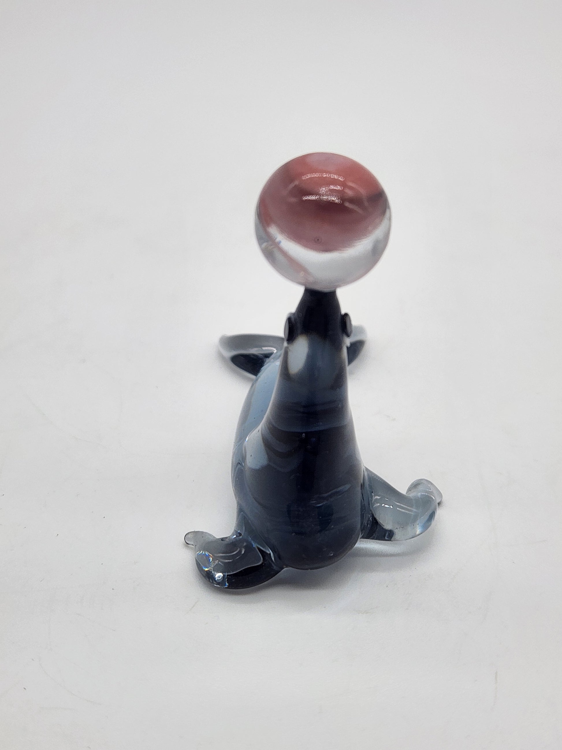Murano-style Seal With Ball, Lampwork Glass Miniature, Blue and Pink Glass Ornament, Vintage 1960s Collectible