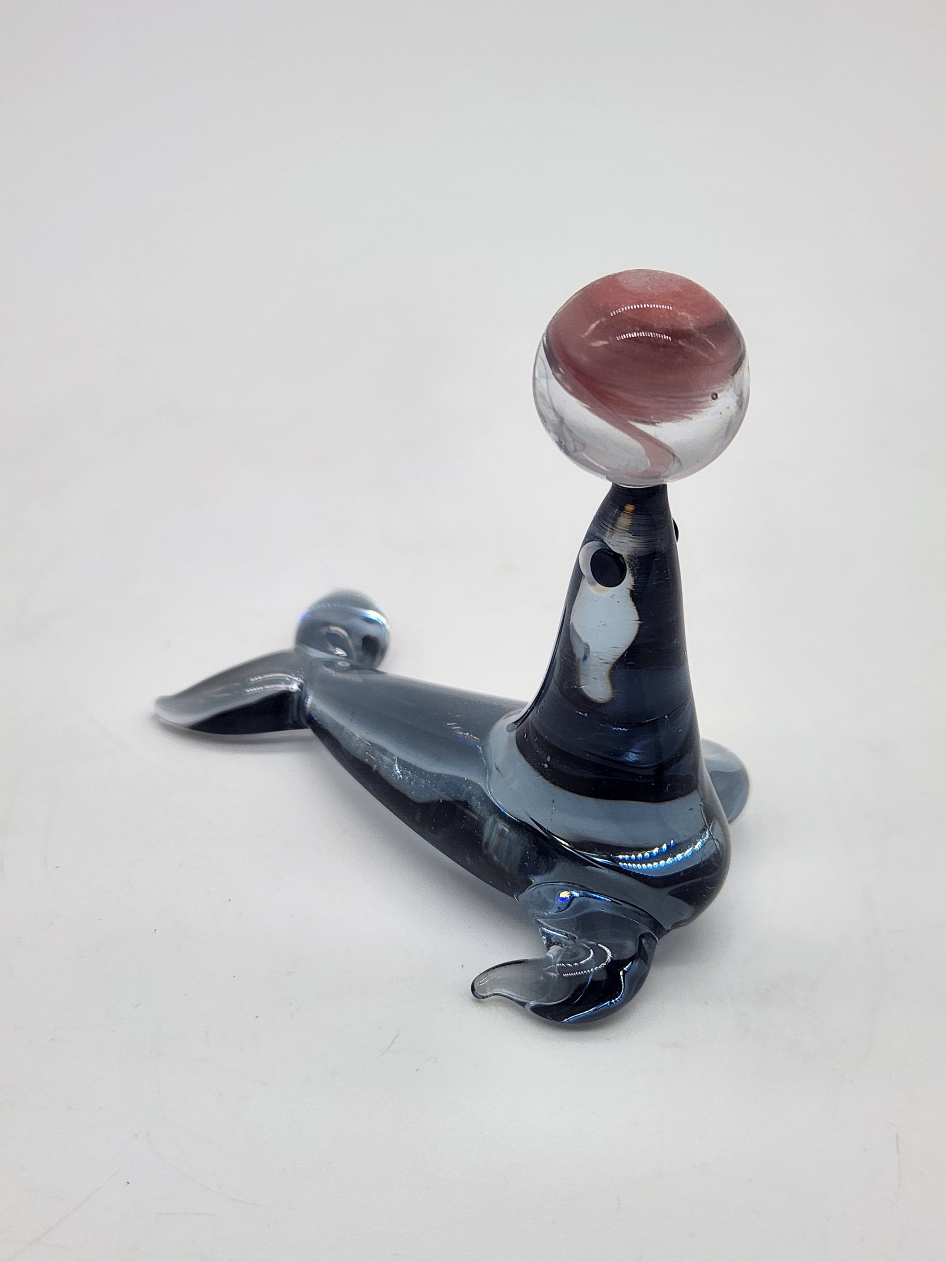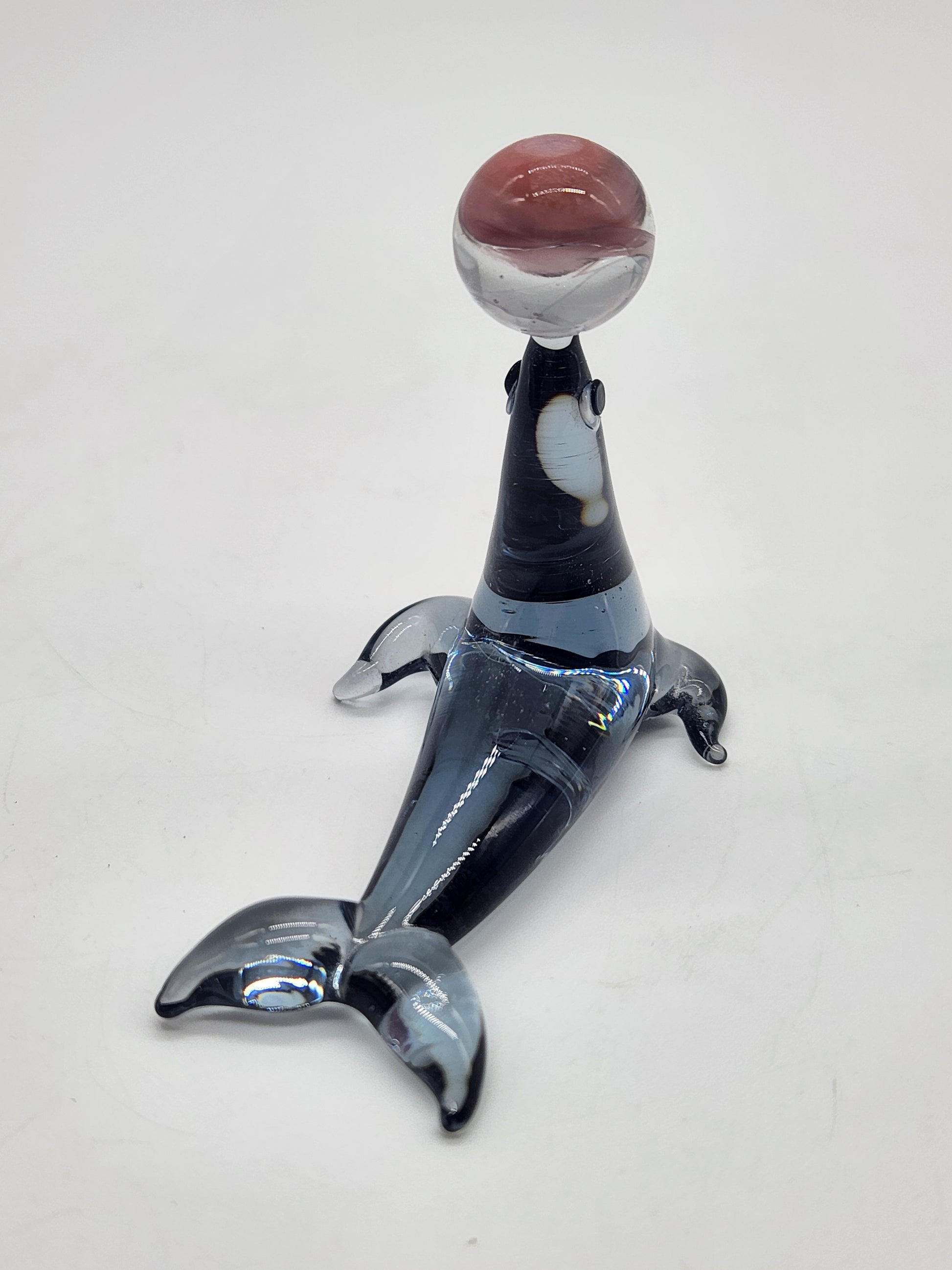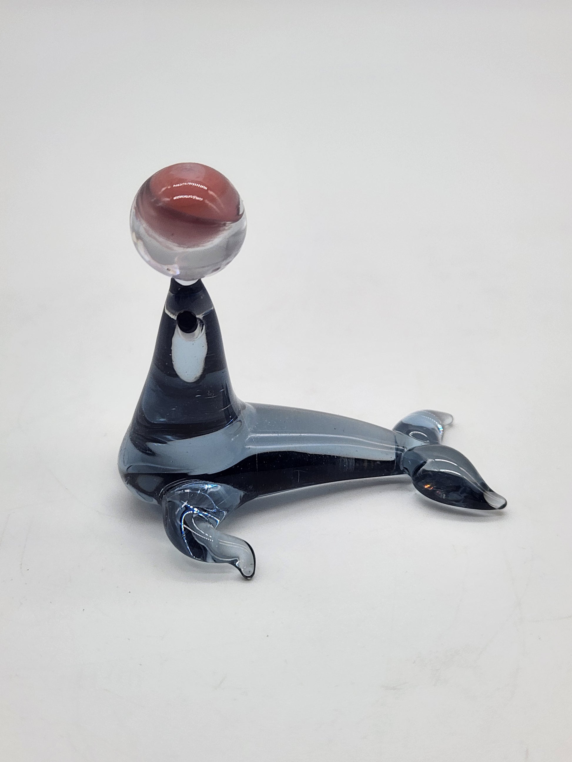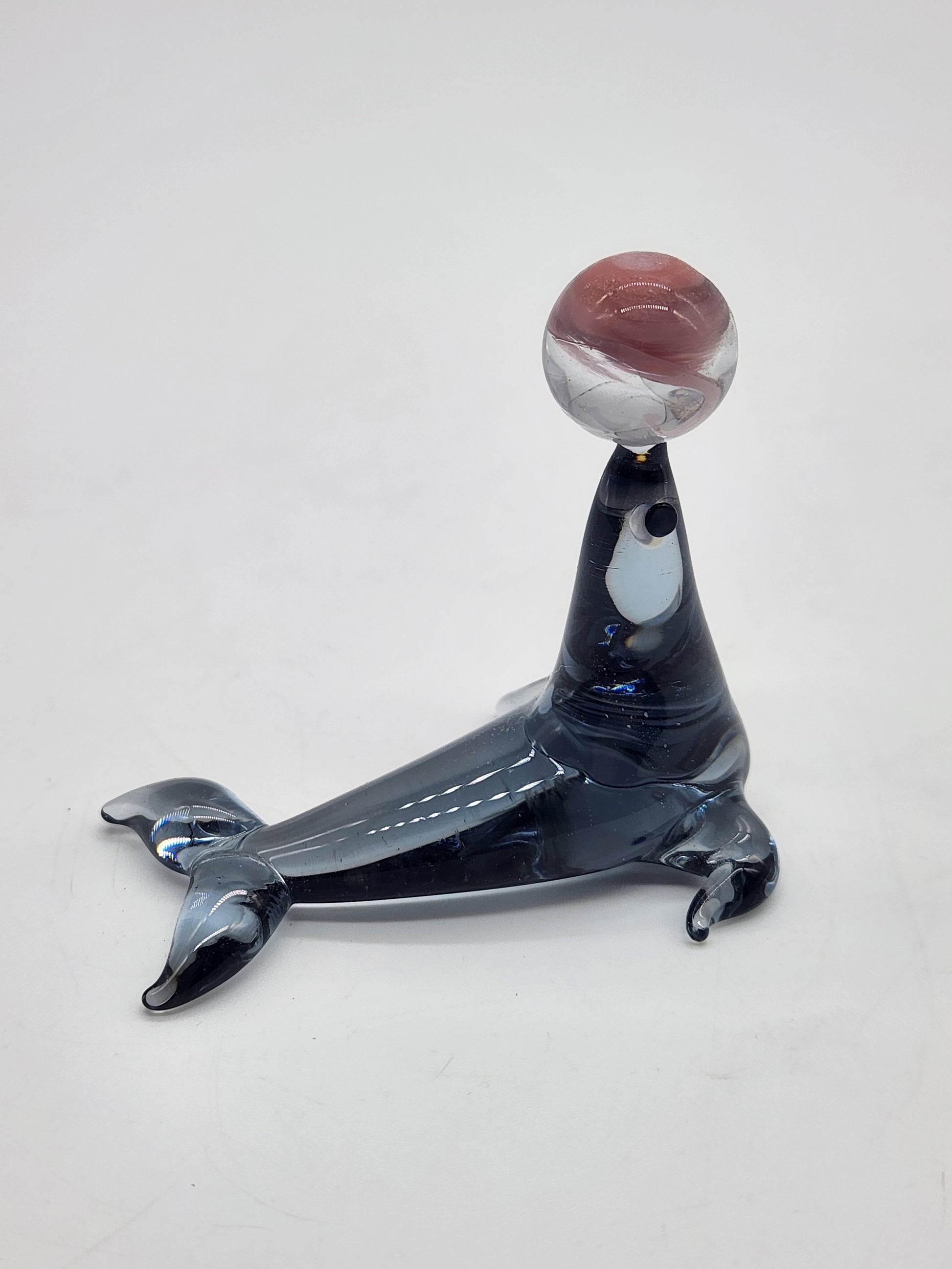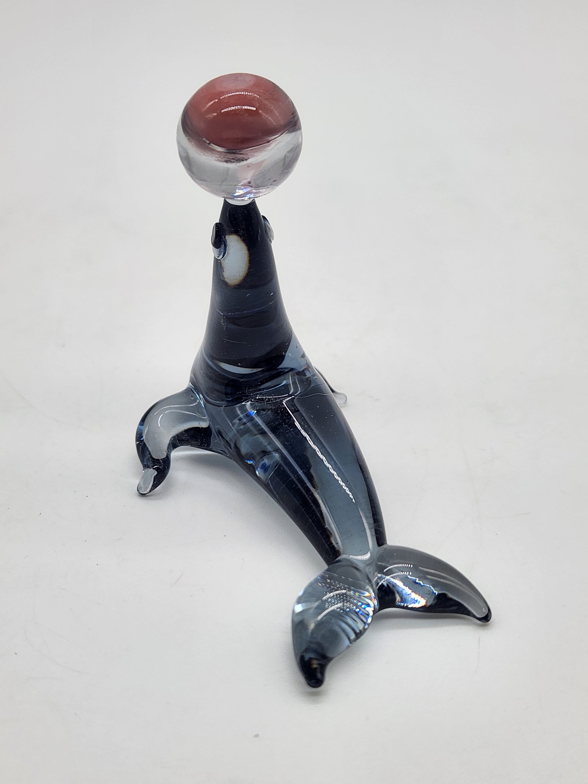 Murano-style Seal With Ball, Lampwork Glass Miniature, Blue and Pink Glass Ornament, Vintage 1960s Collectible