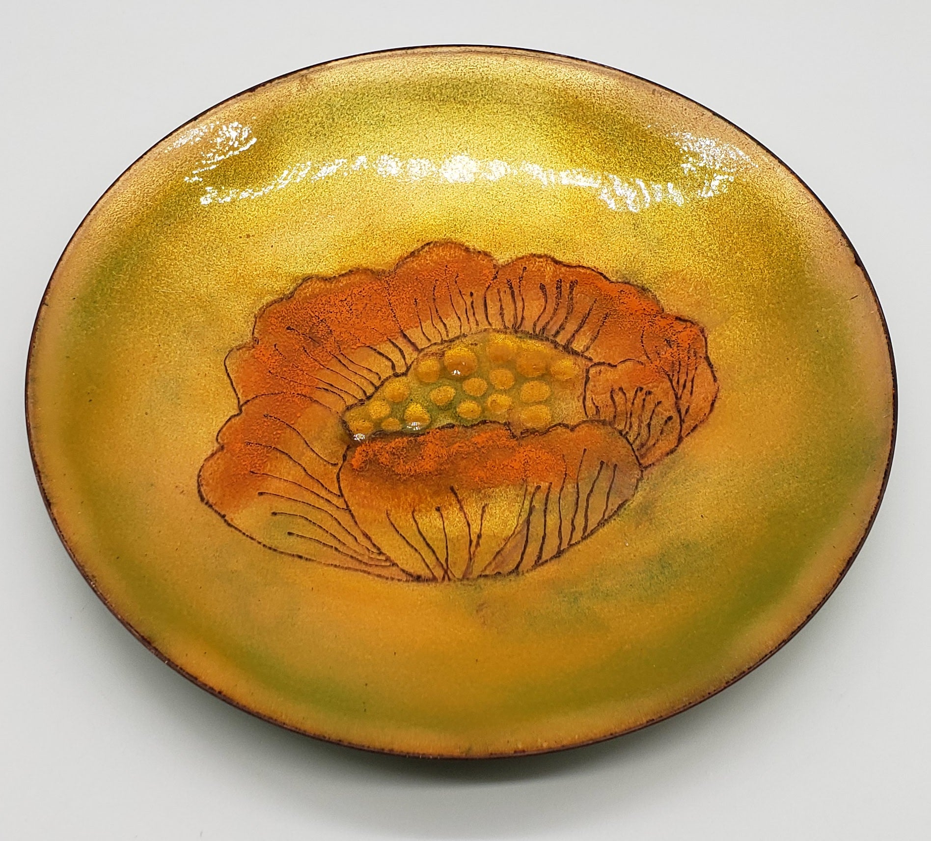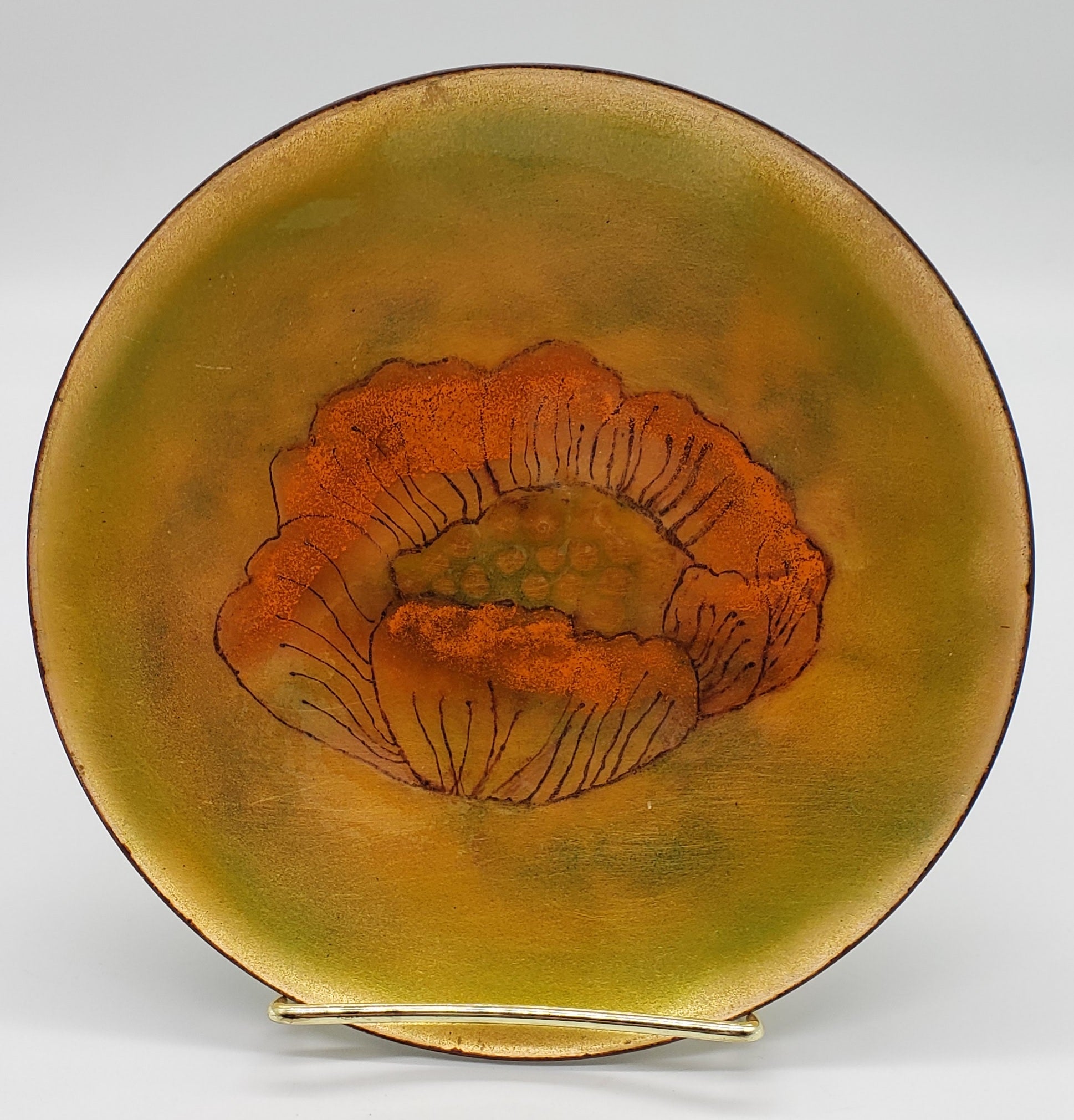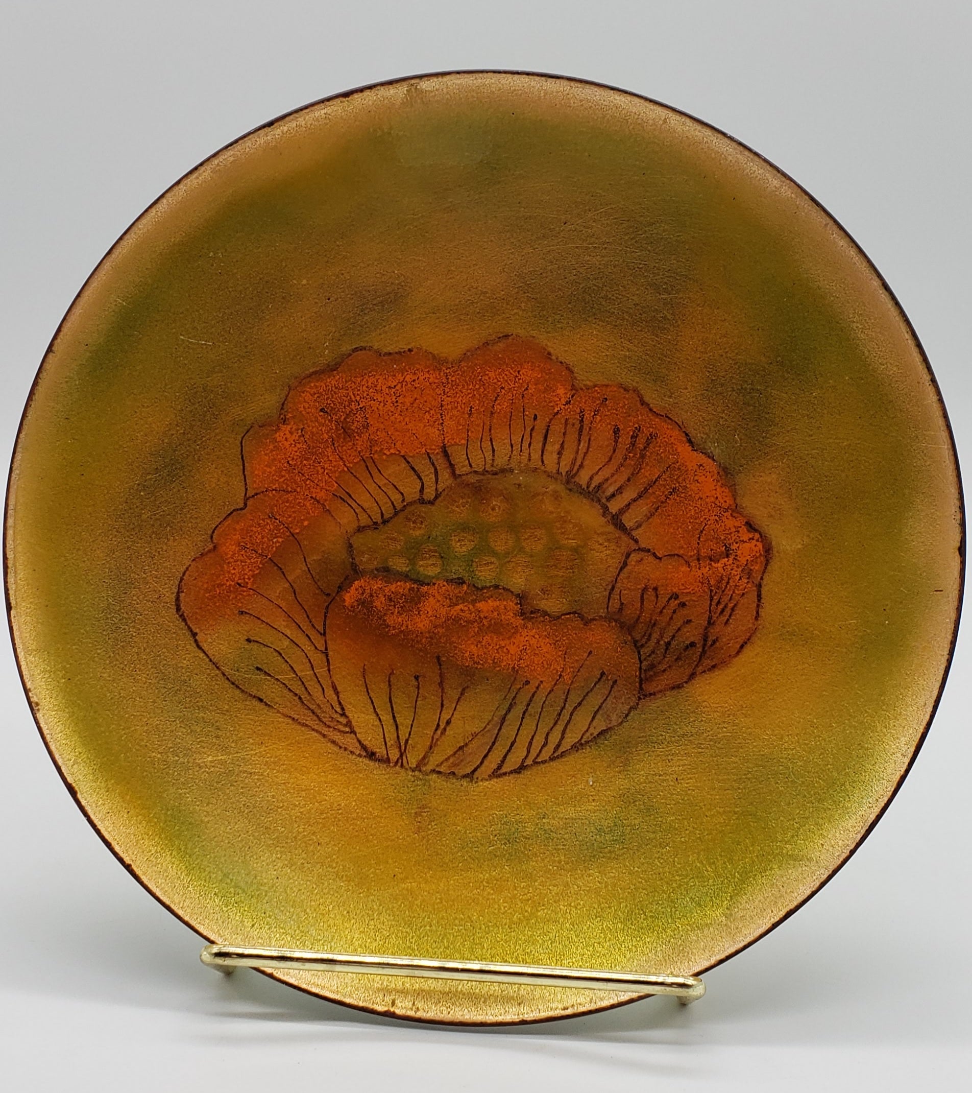Pearl Porter Vintage Artist Handcrafted Enamel on Copper Plate Flowers - Signed