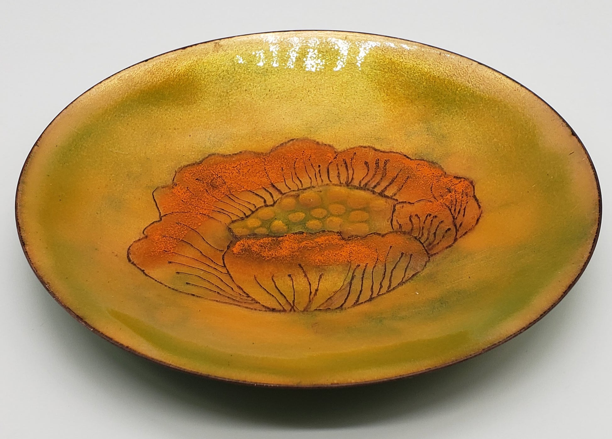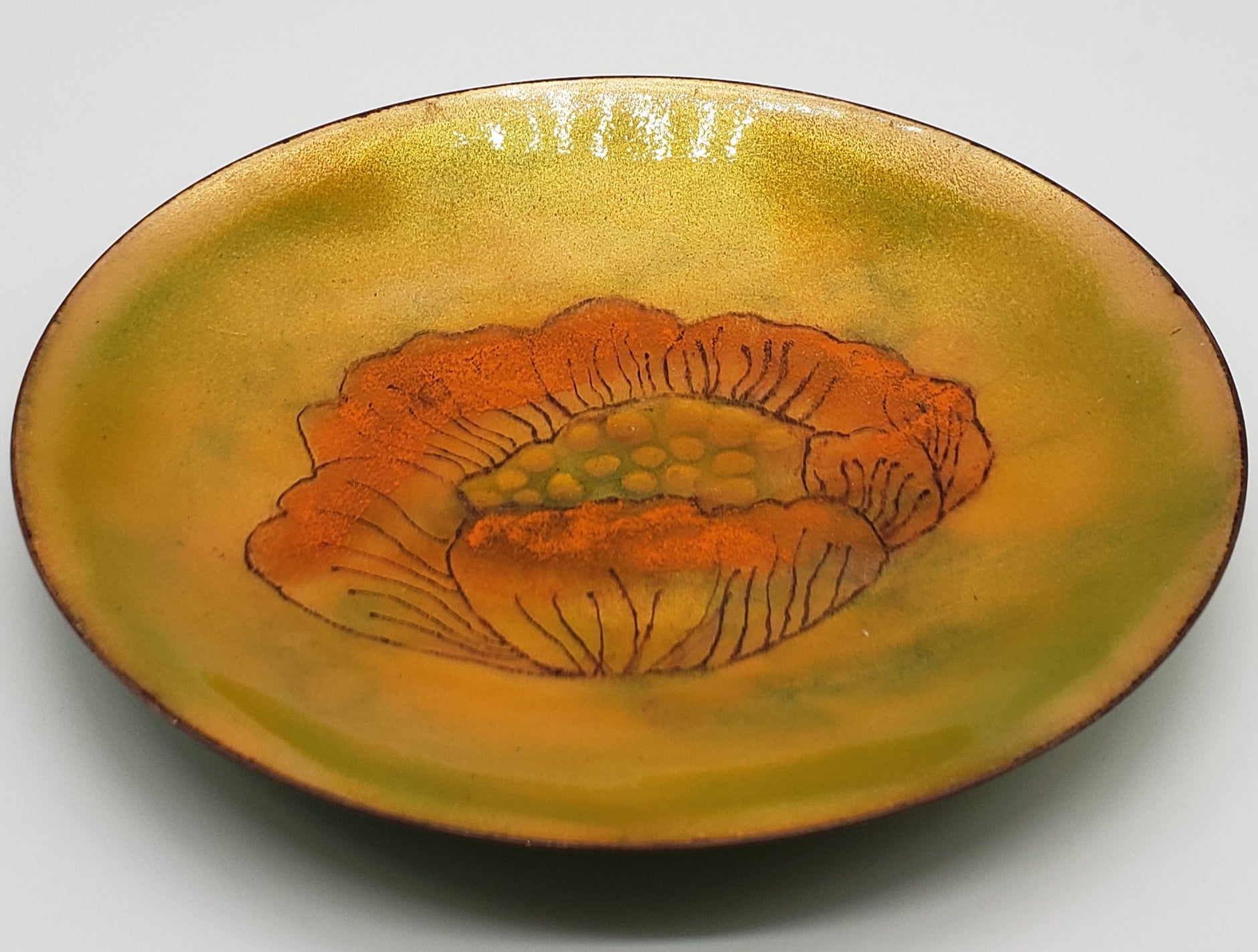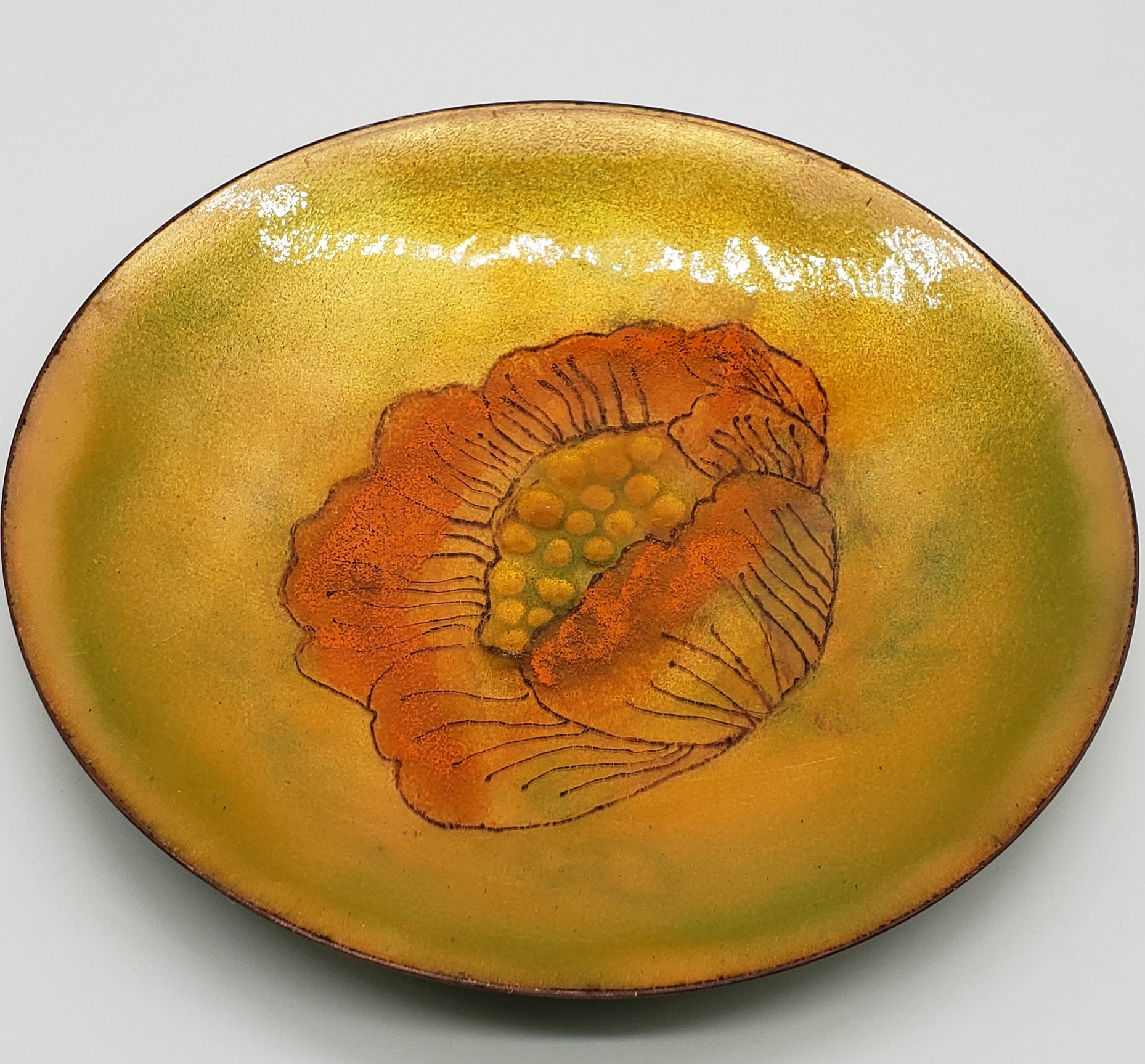 Pearl Porter Vintage Artist Handcrafted Enamel on Copper Plate Flowers - Signed