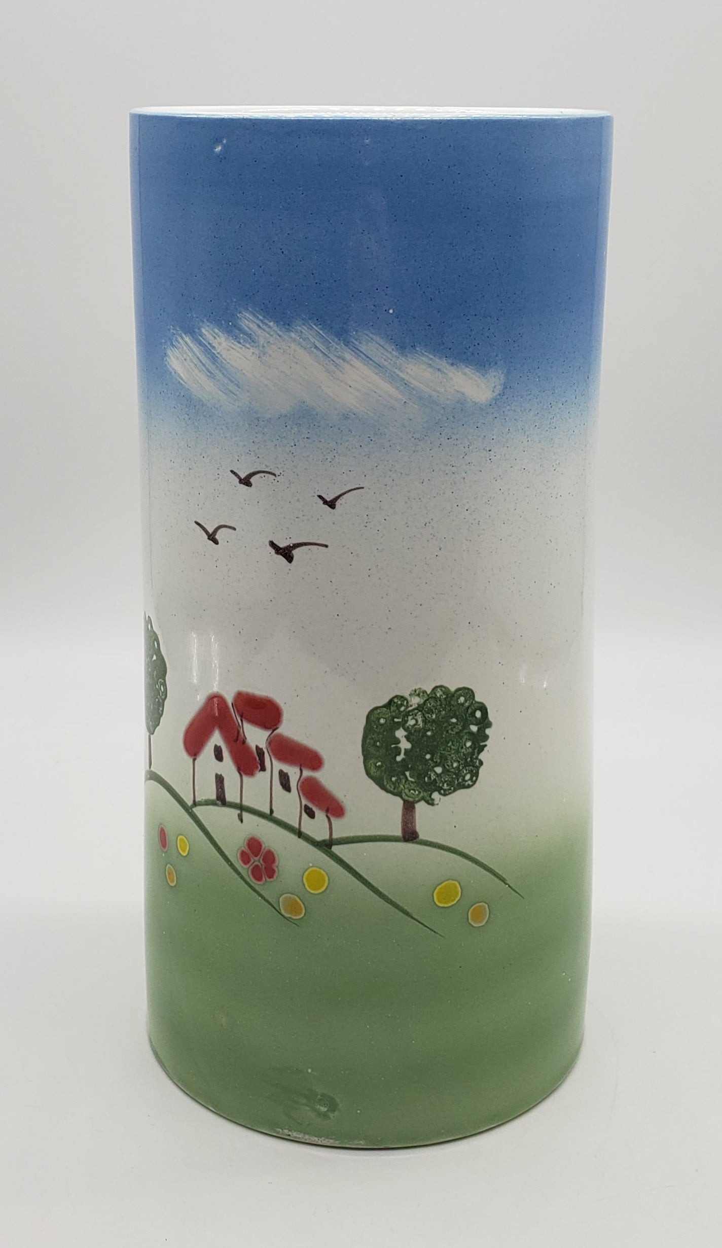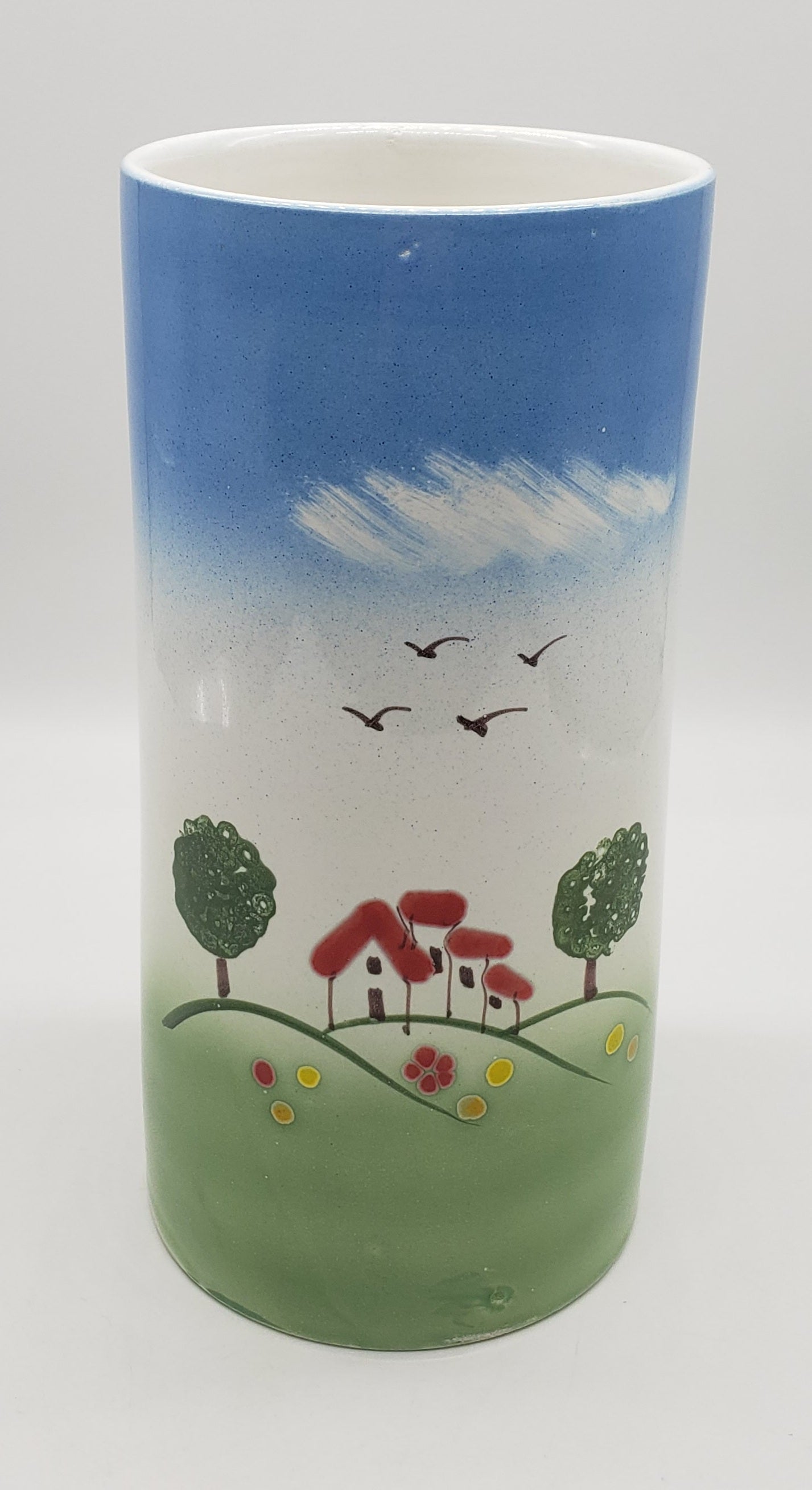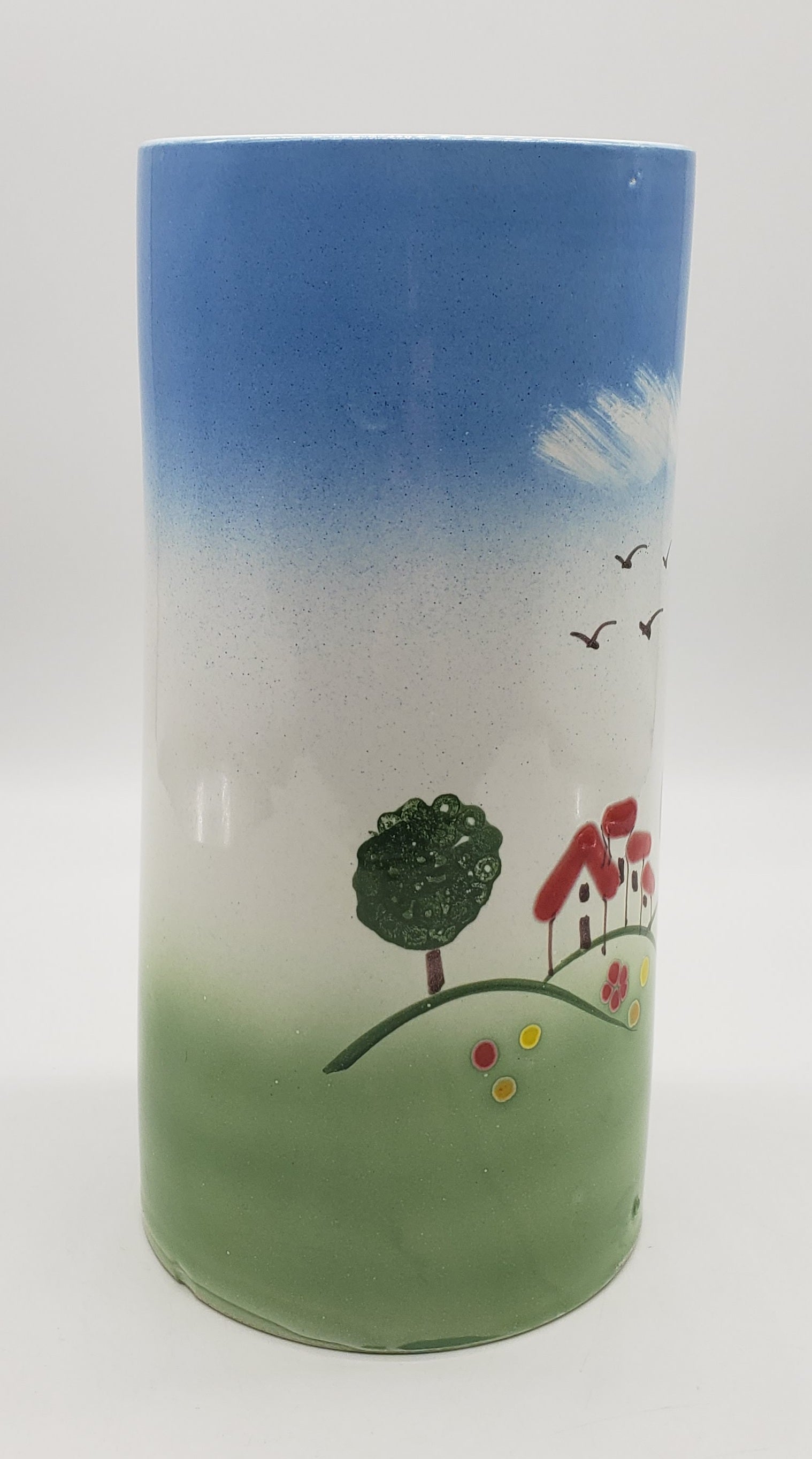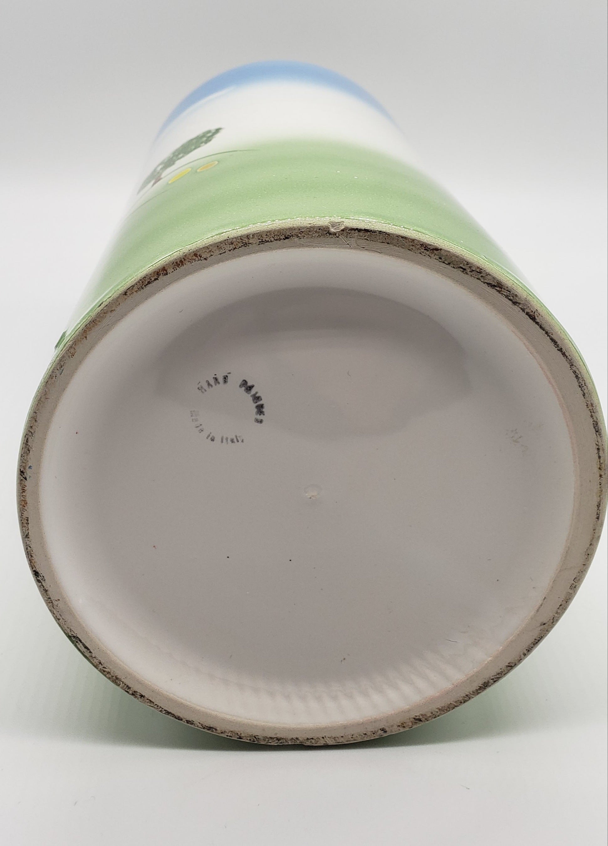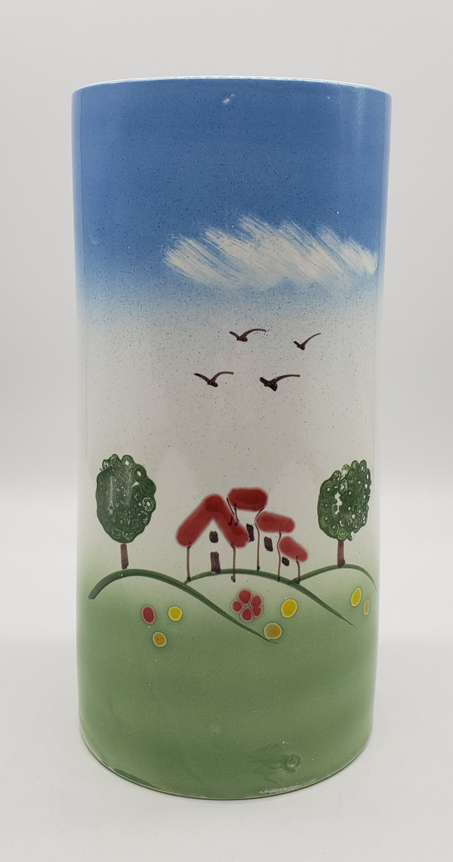 Pottery-8 Inch Tall / House Scene / Canister Made/Painted by hand in Italy