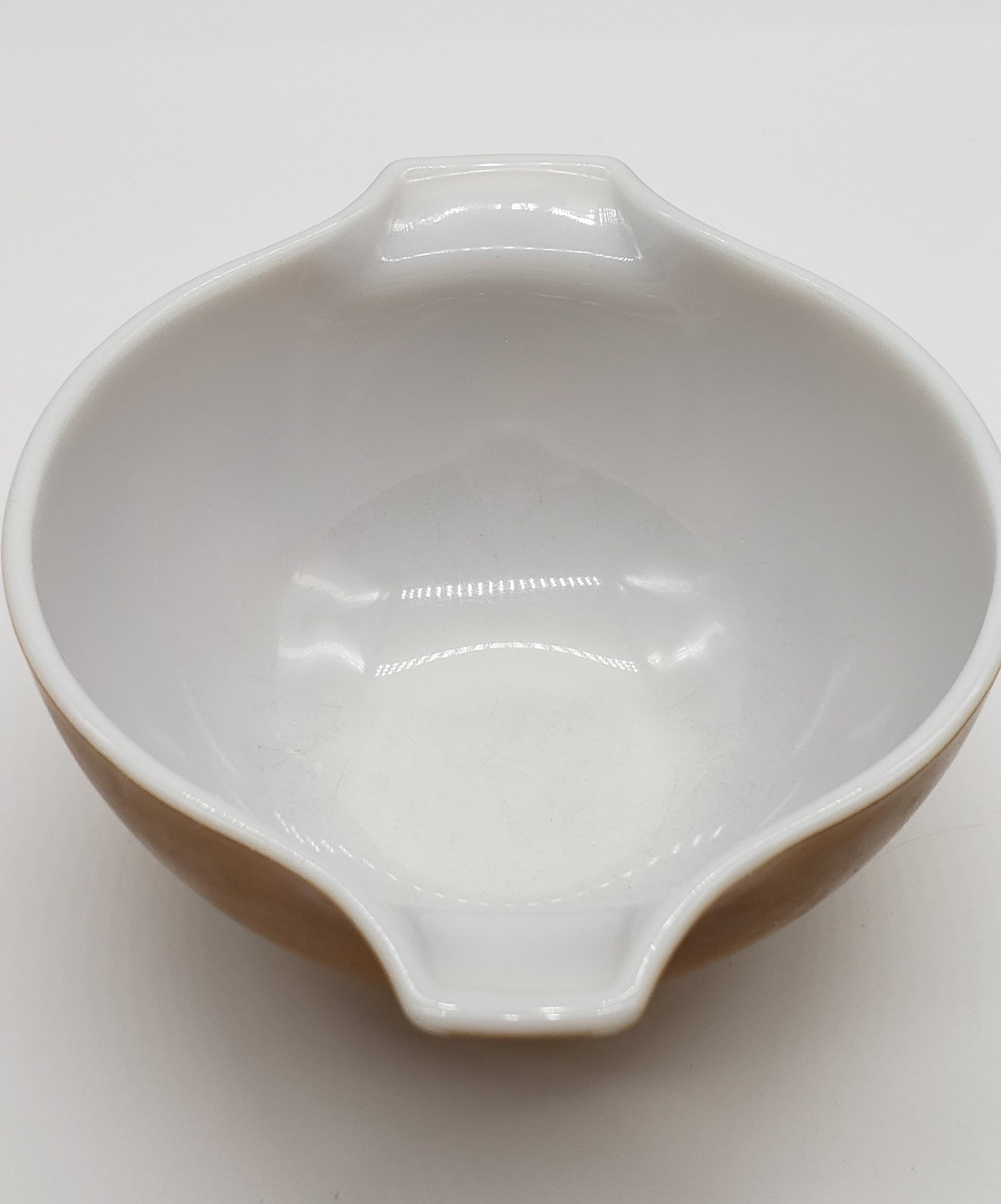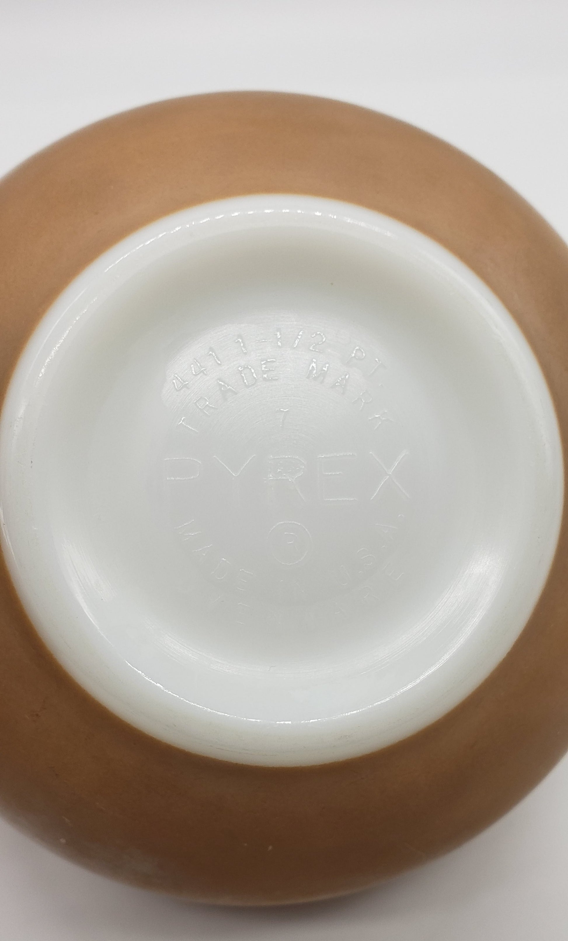 Pyrex 441 Cinderella Nesting Batter Bowl. This little 441 is the perfect reminder of why you shouldn't put your pyrex in the dishwasher. He's lost that gleam in his eye but he can still round out your collection of Cinderella nesting bowls if you just give him a chance.