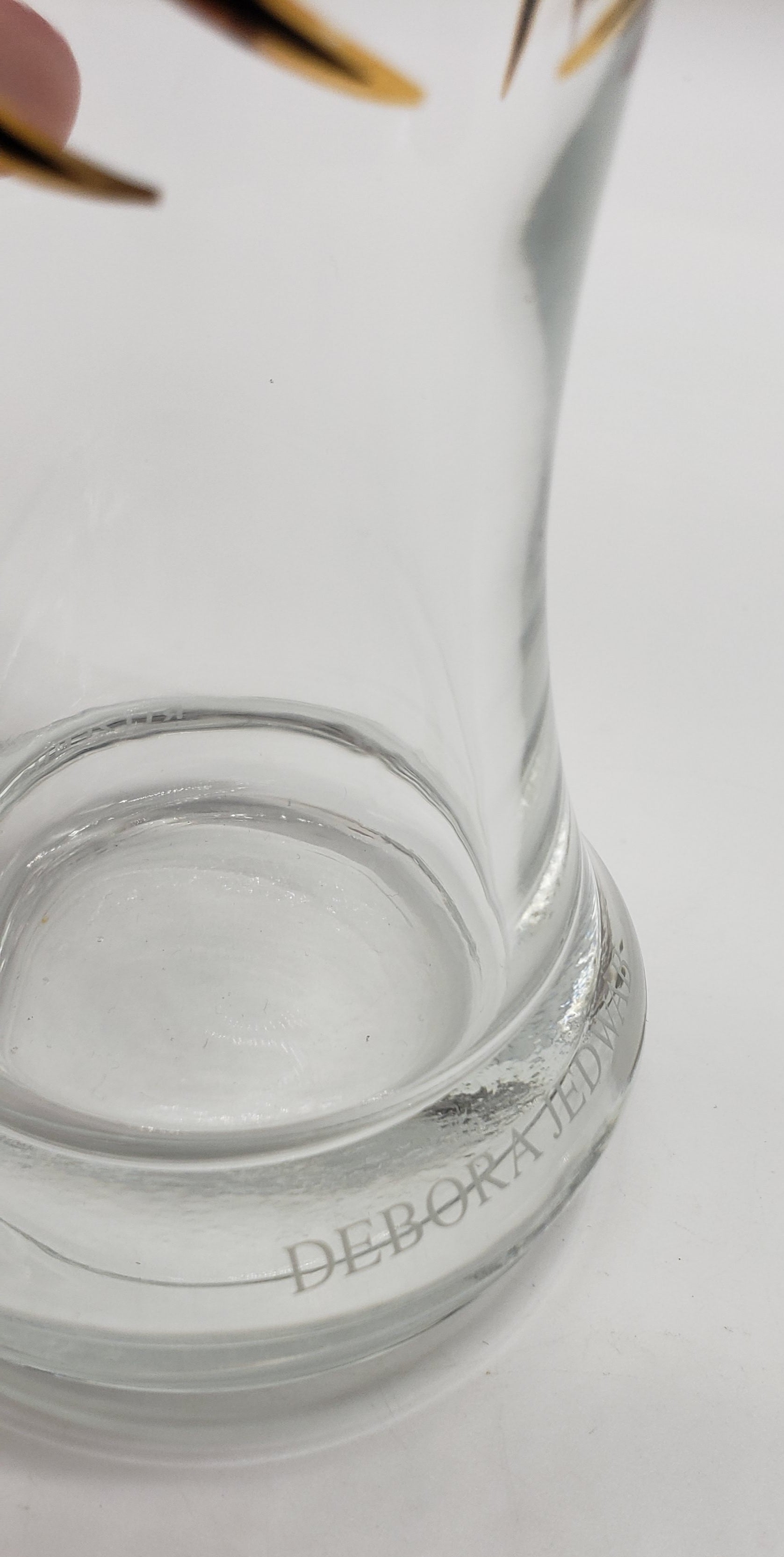 Ritzenhoff Weizen Glass Debora Jeddah with Debora Jedwab engraved on one side.