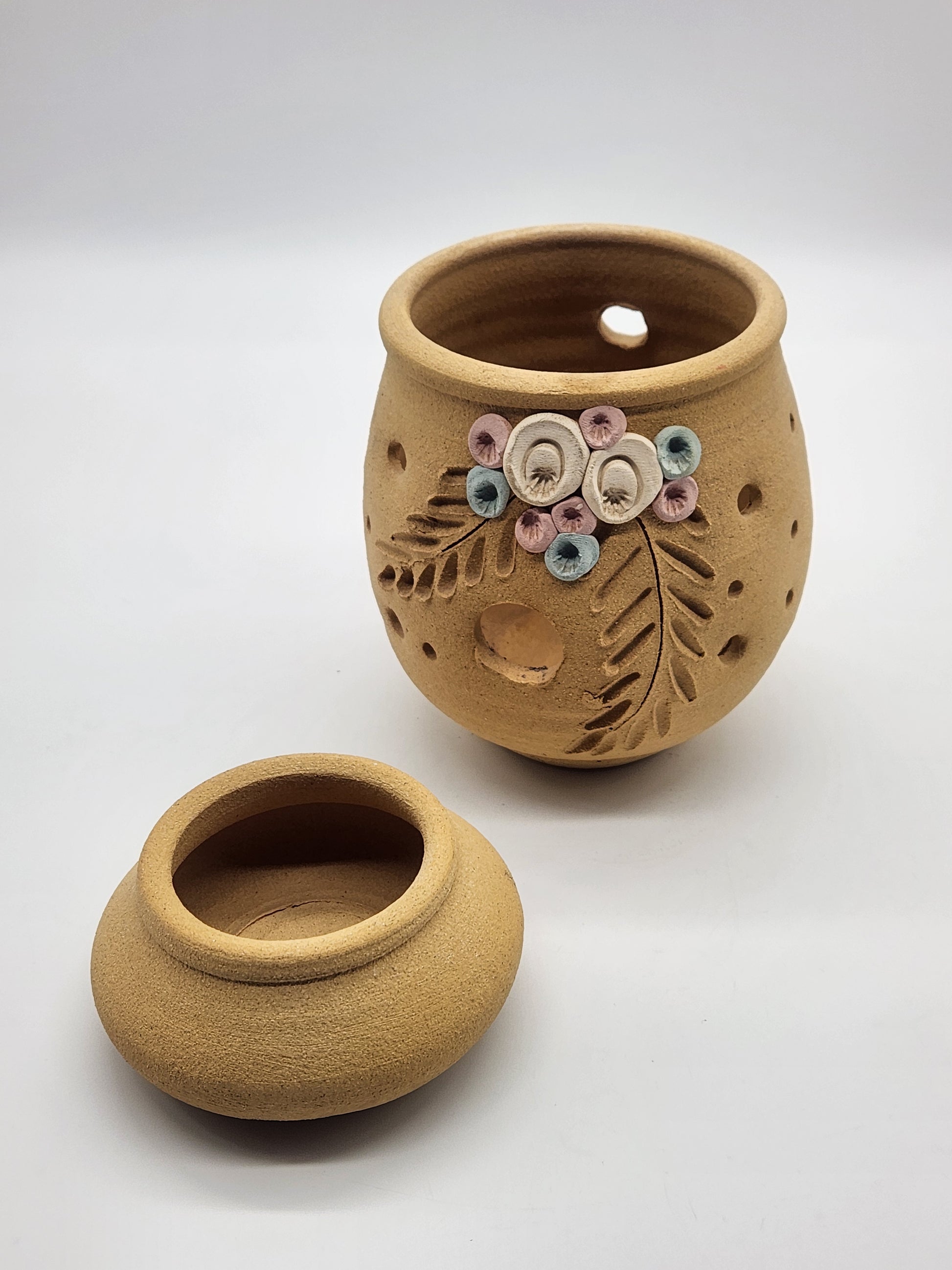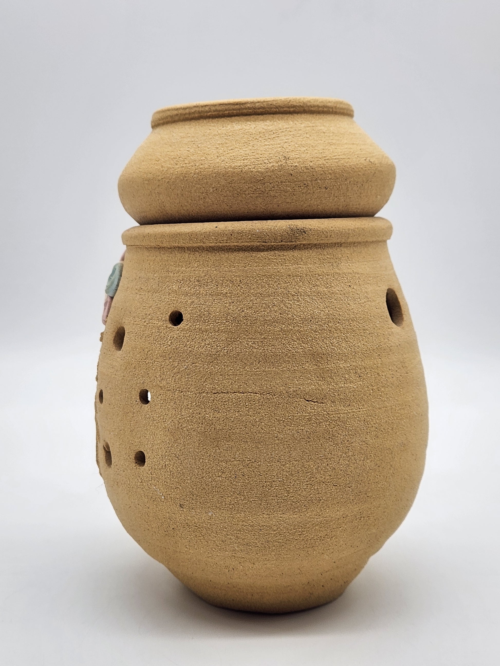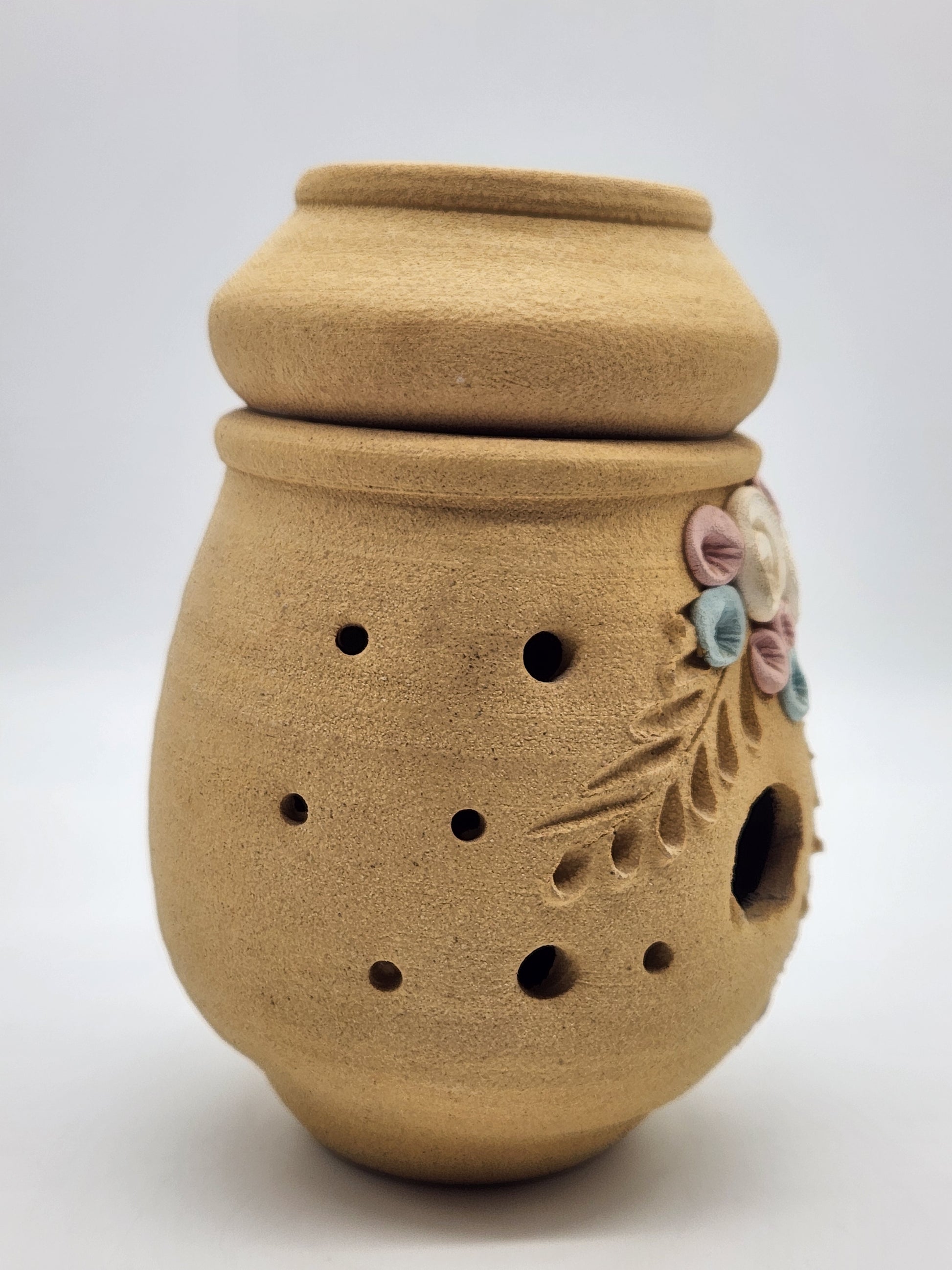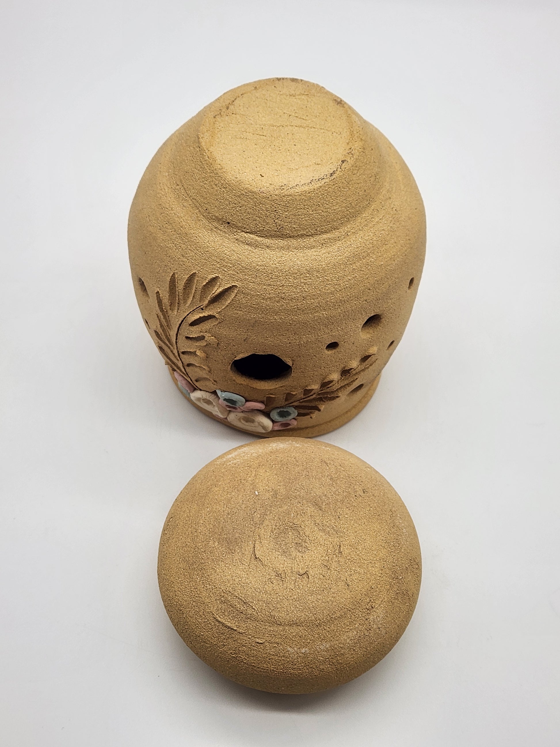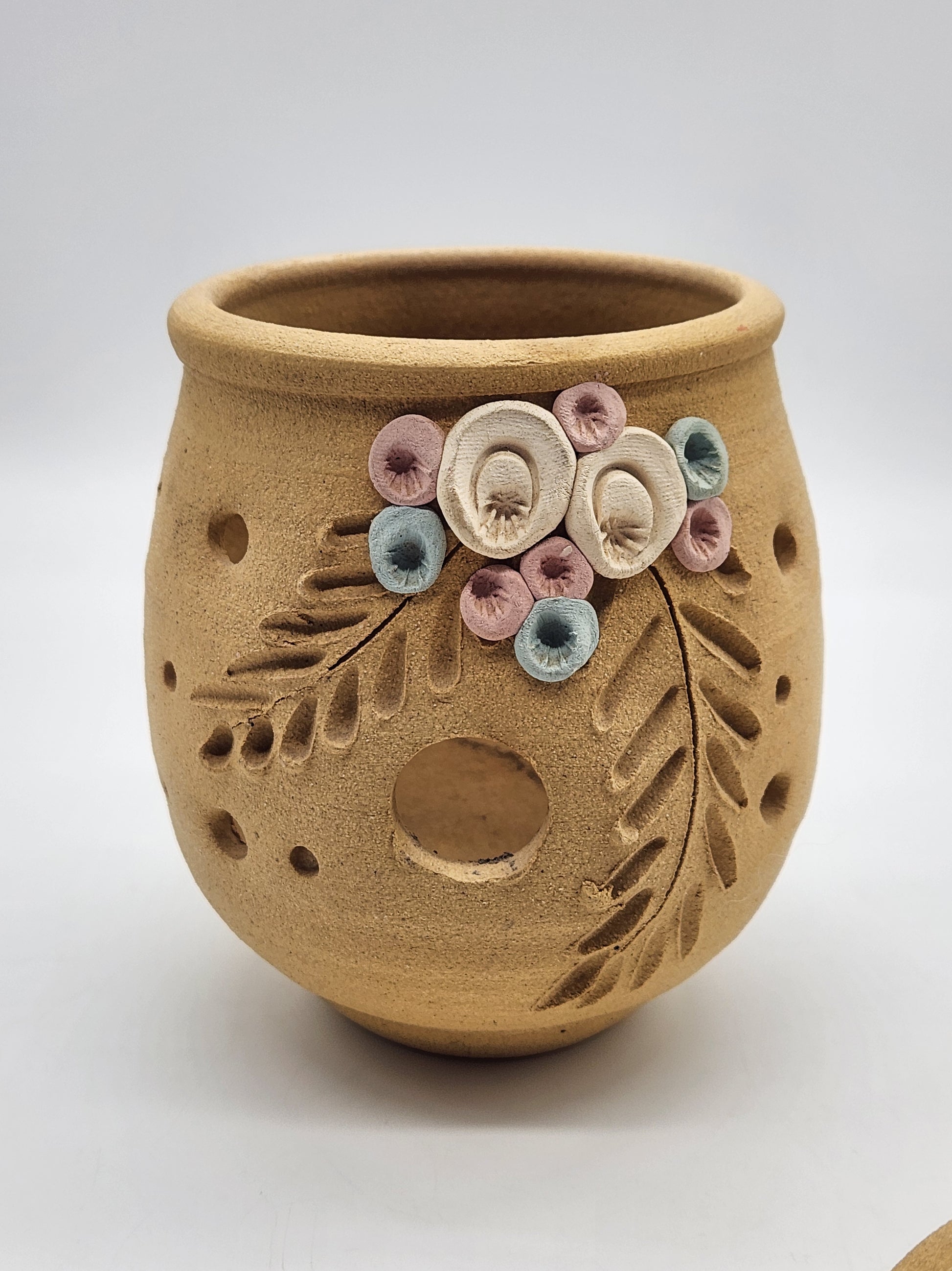 Sandstone Candle Holder Tea Light Tan Rustic Southwestern Home Decor Pink Floral 6"