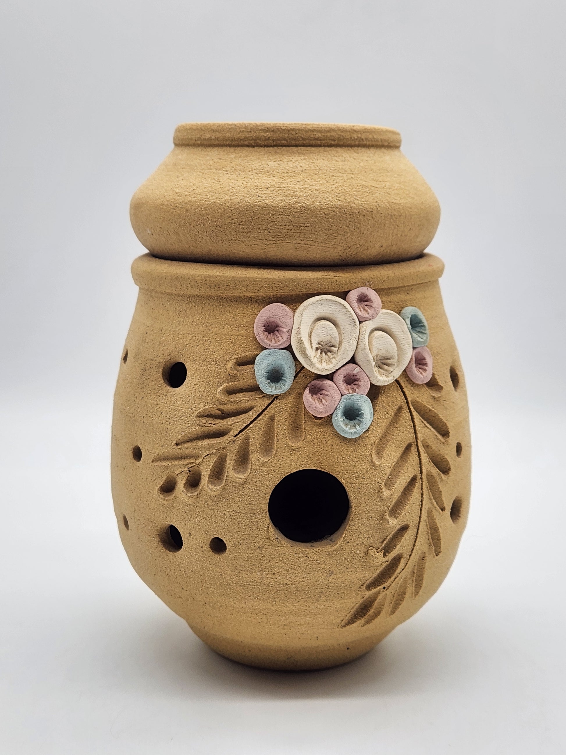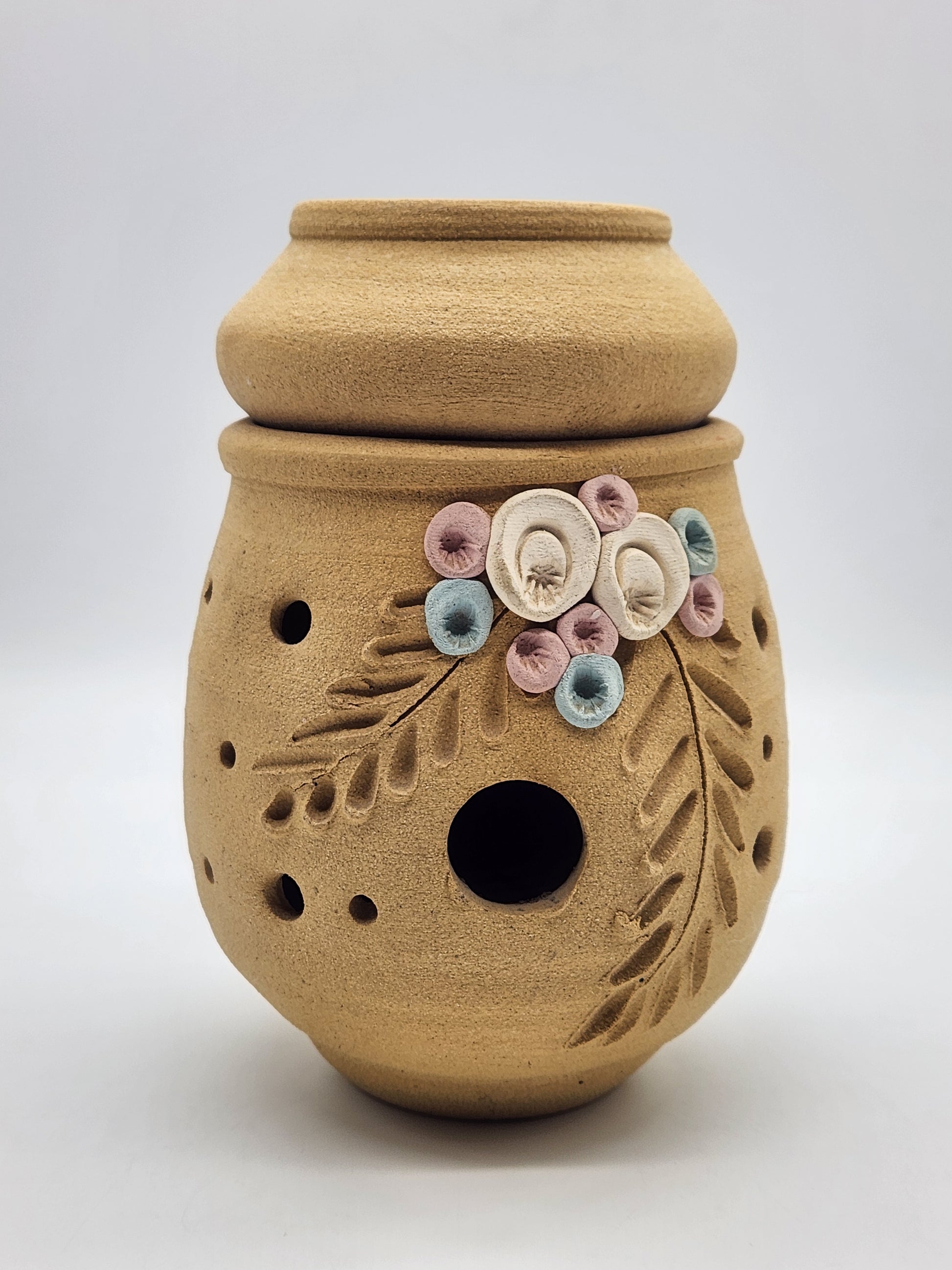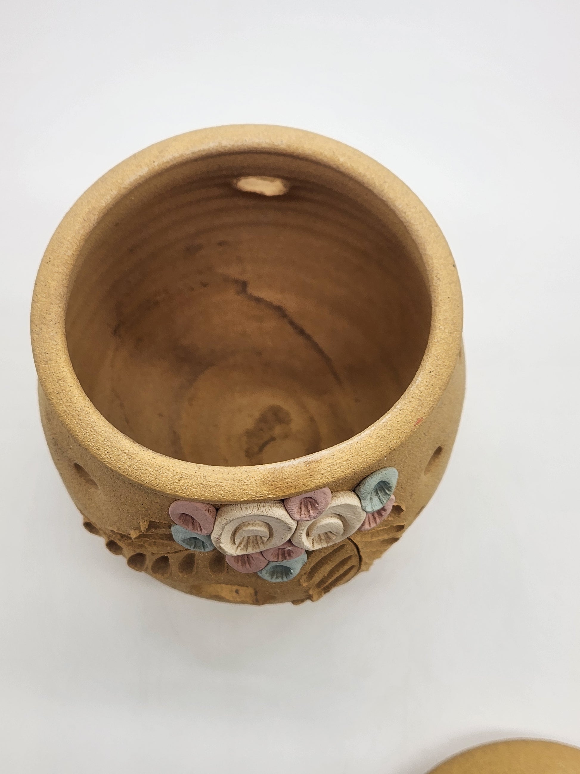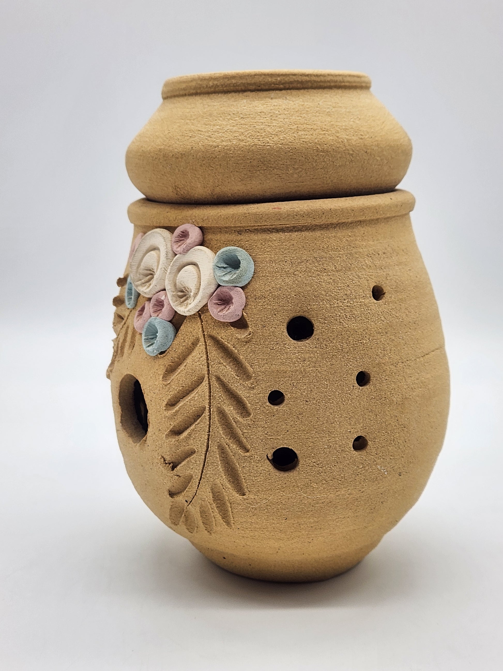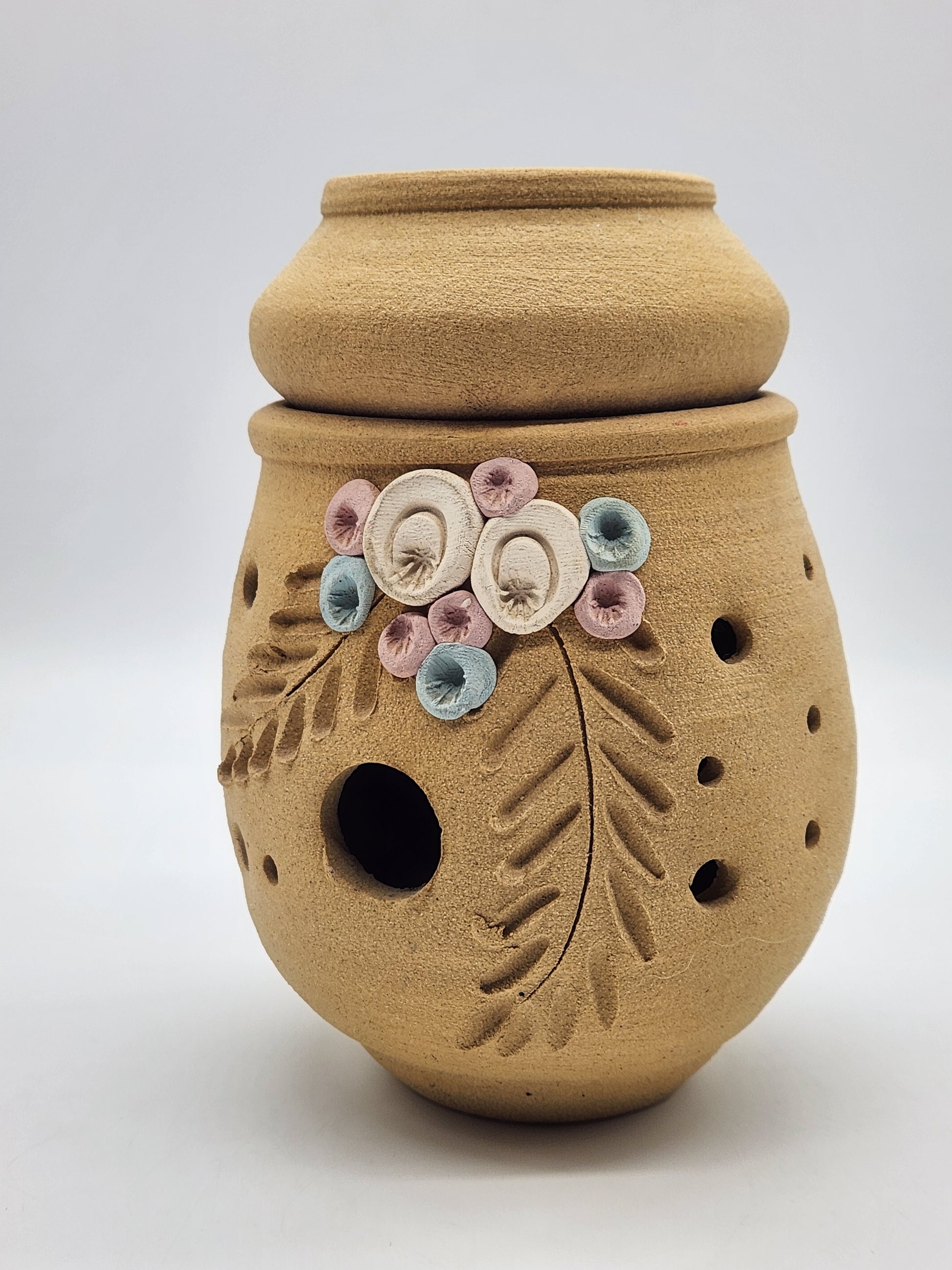 Sandstone Candle Holder Tea Light Tan Rustic Southwestern Home Decor Pink Floral 6"