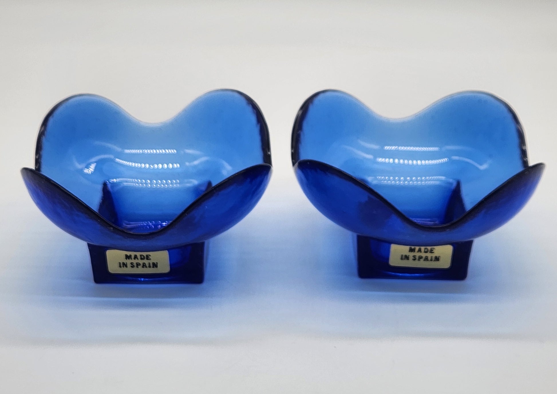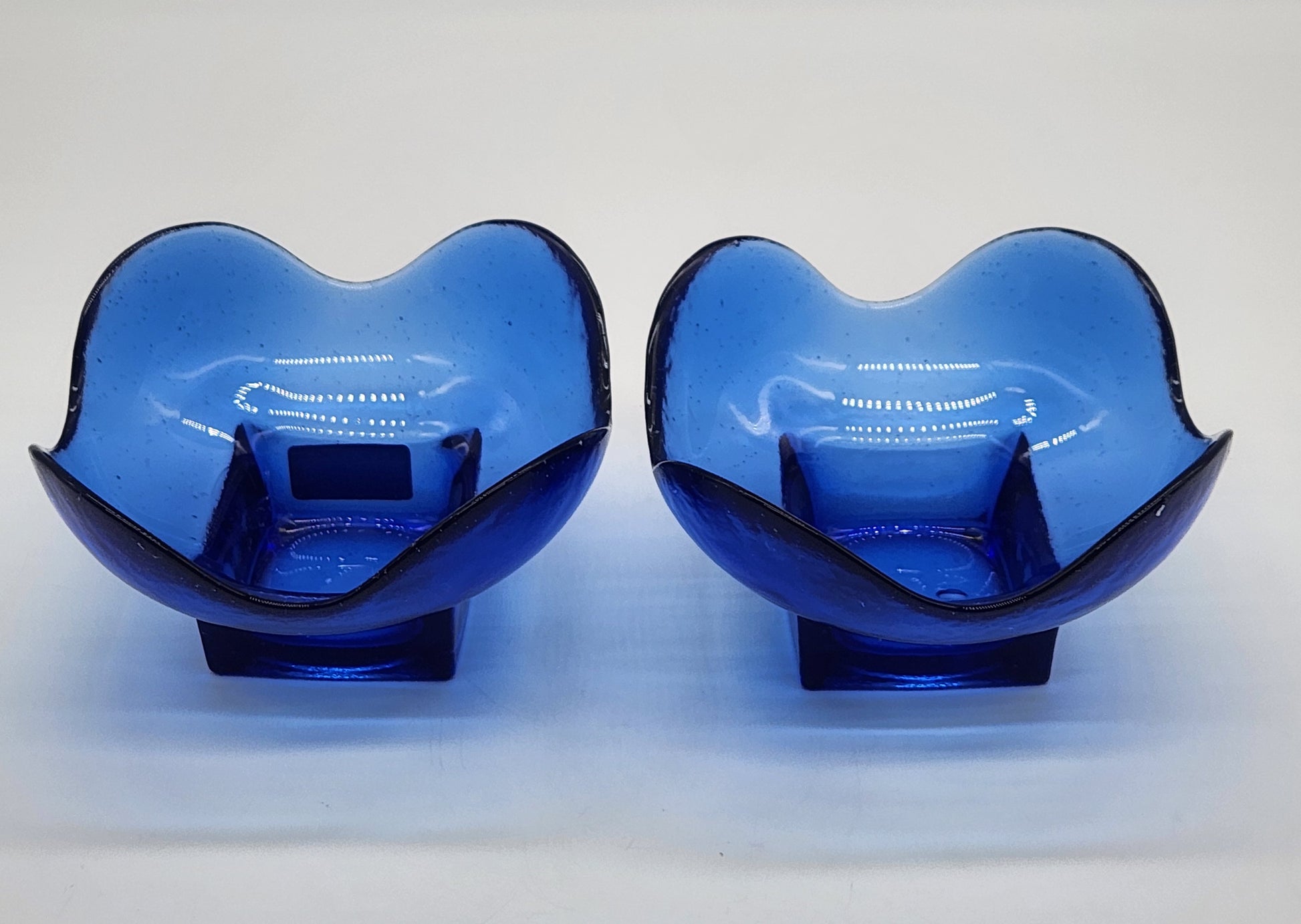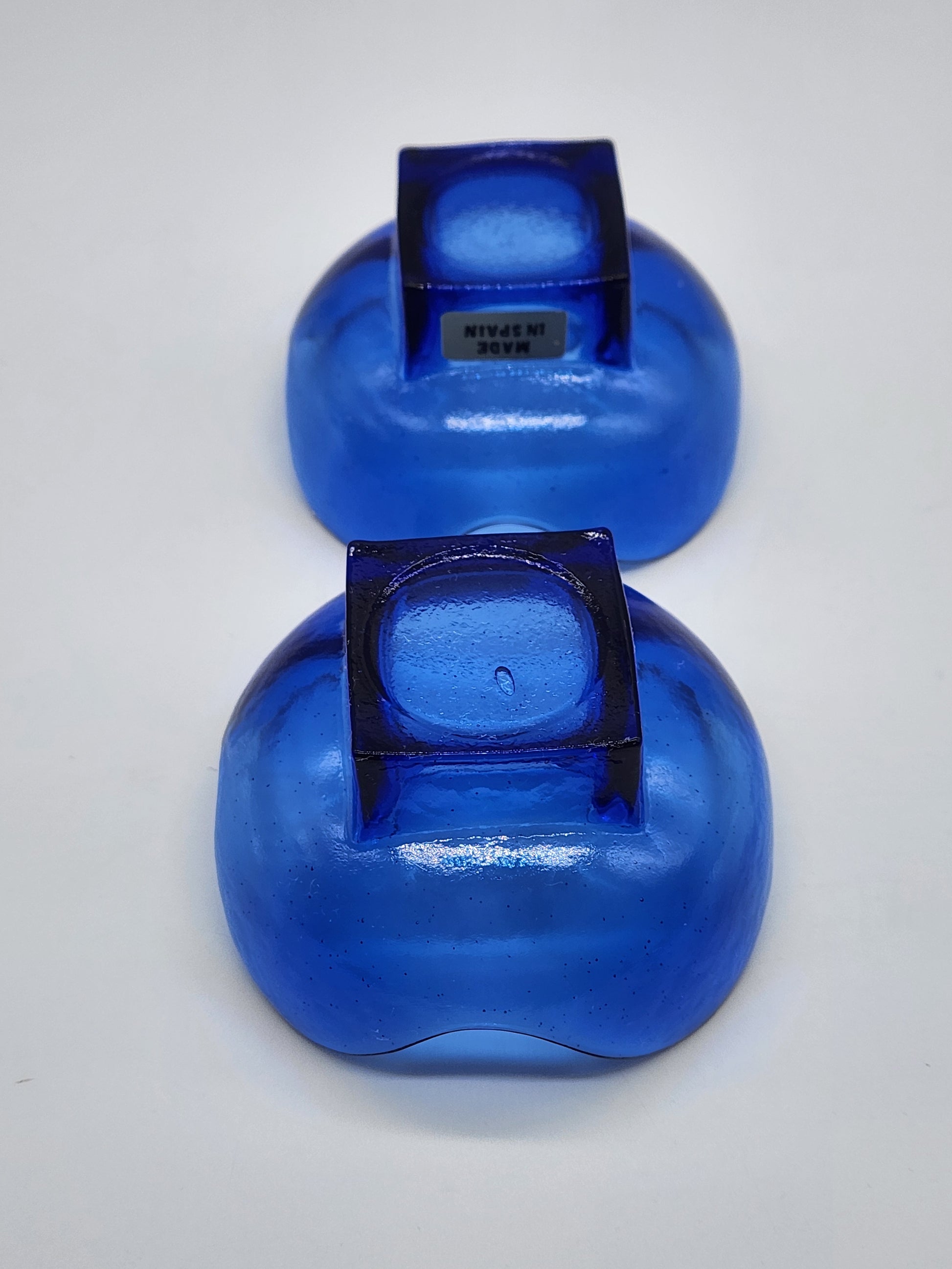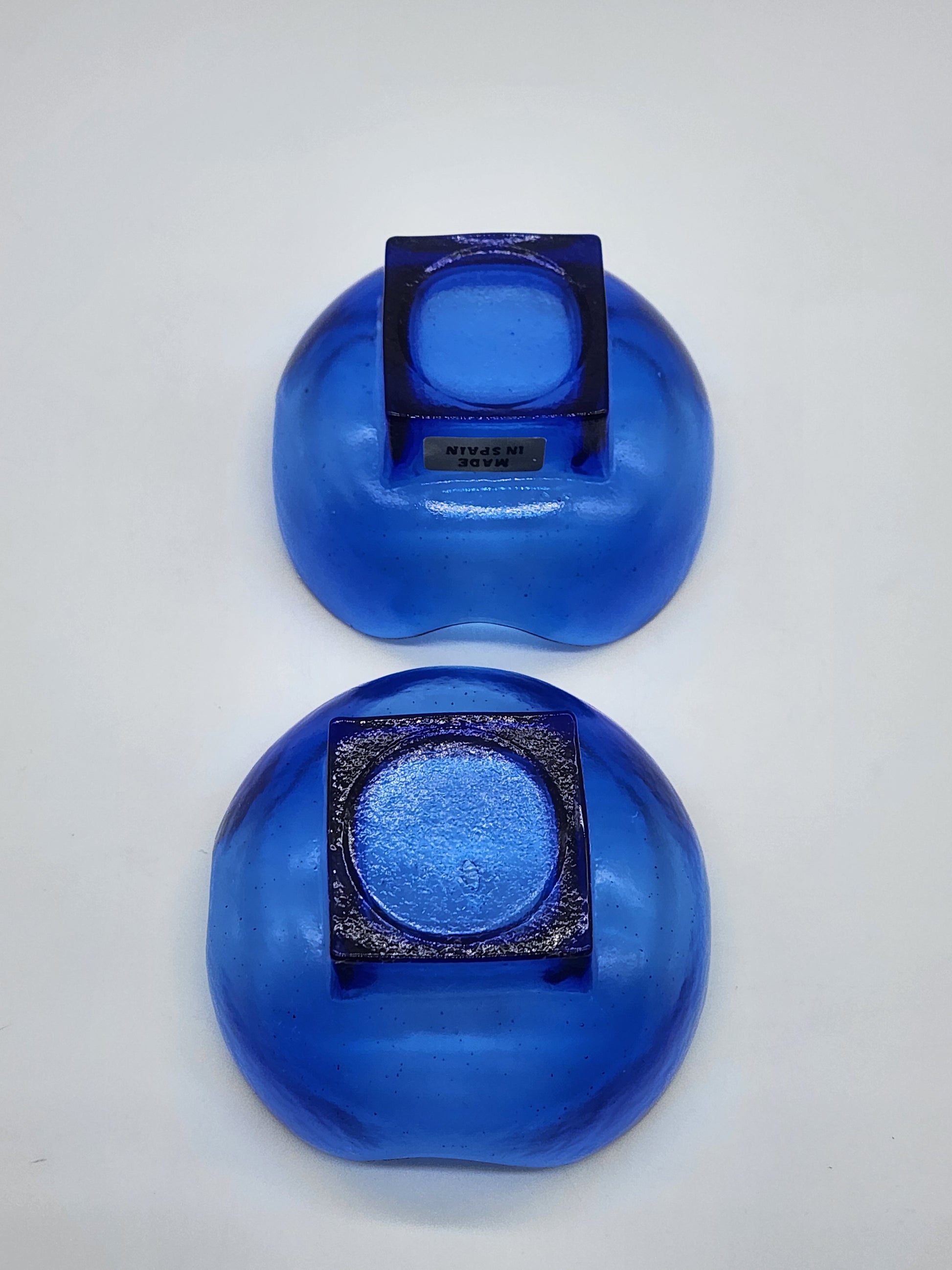Set of 2 Recycled Glass Made in Spain Cobalt Blue Tulip Floral Candle Holder