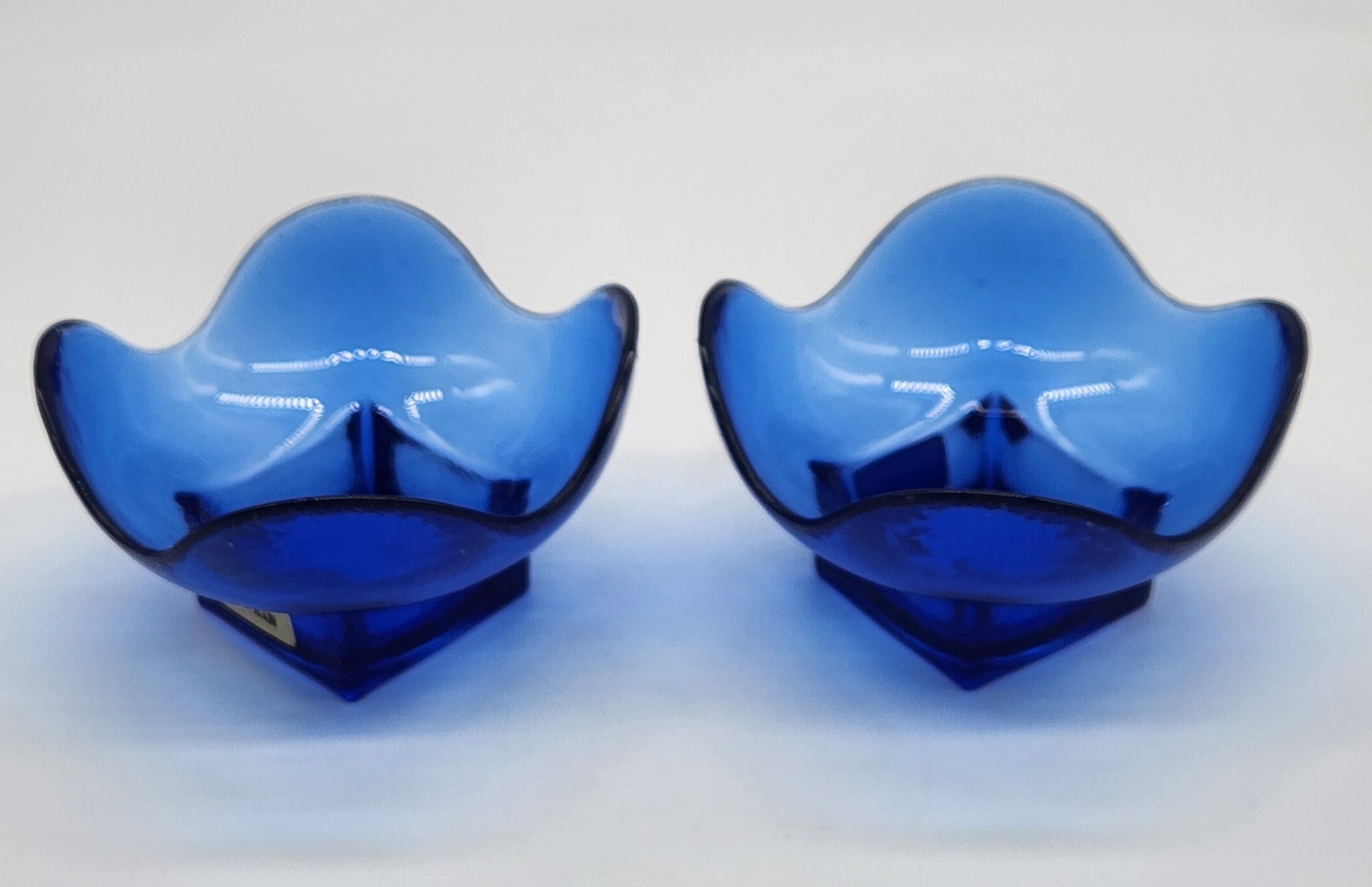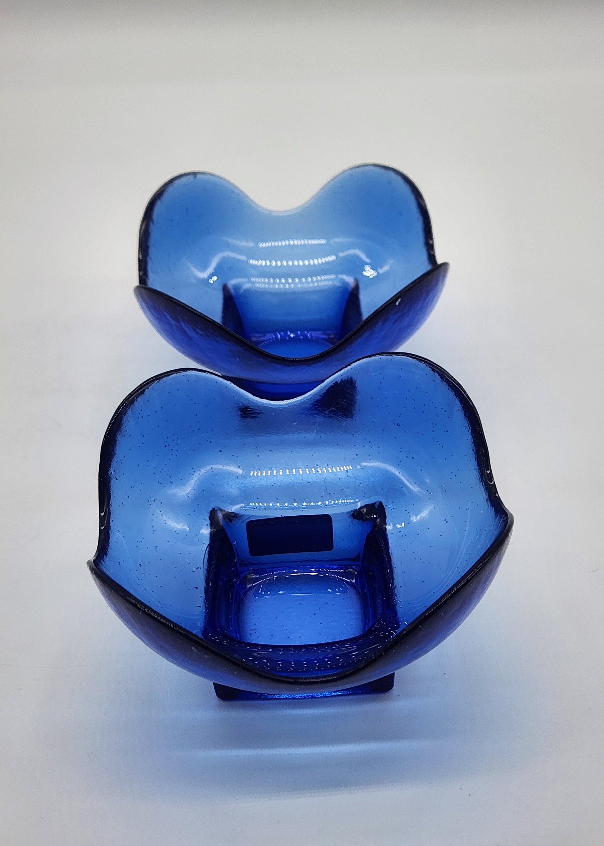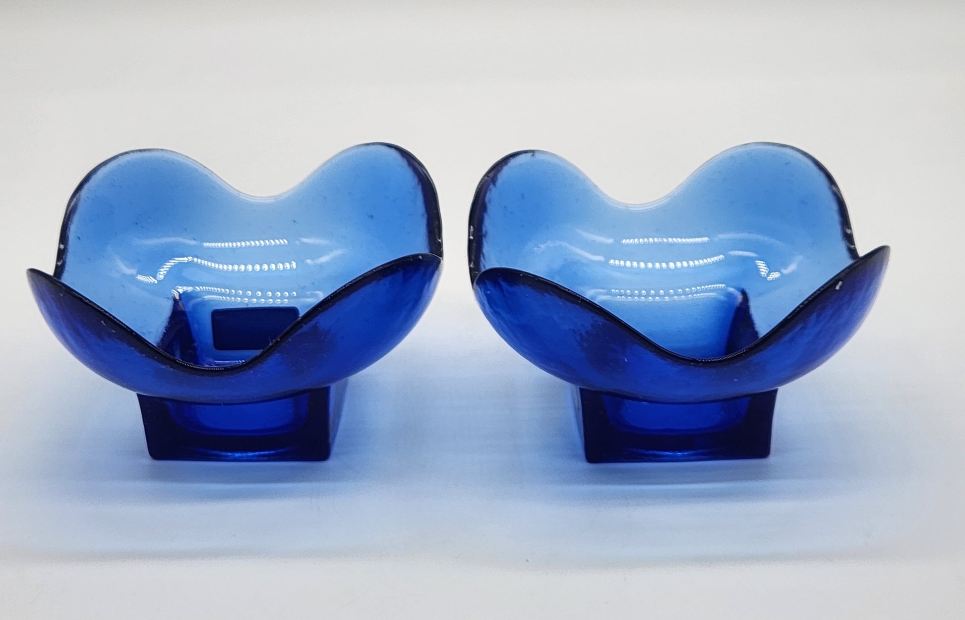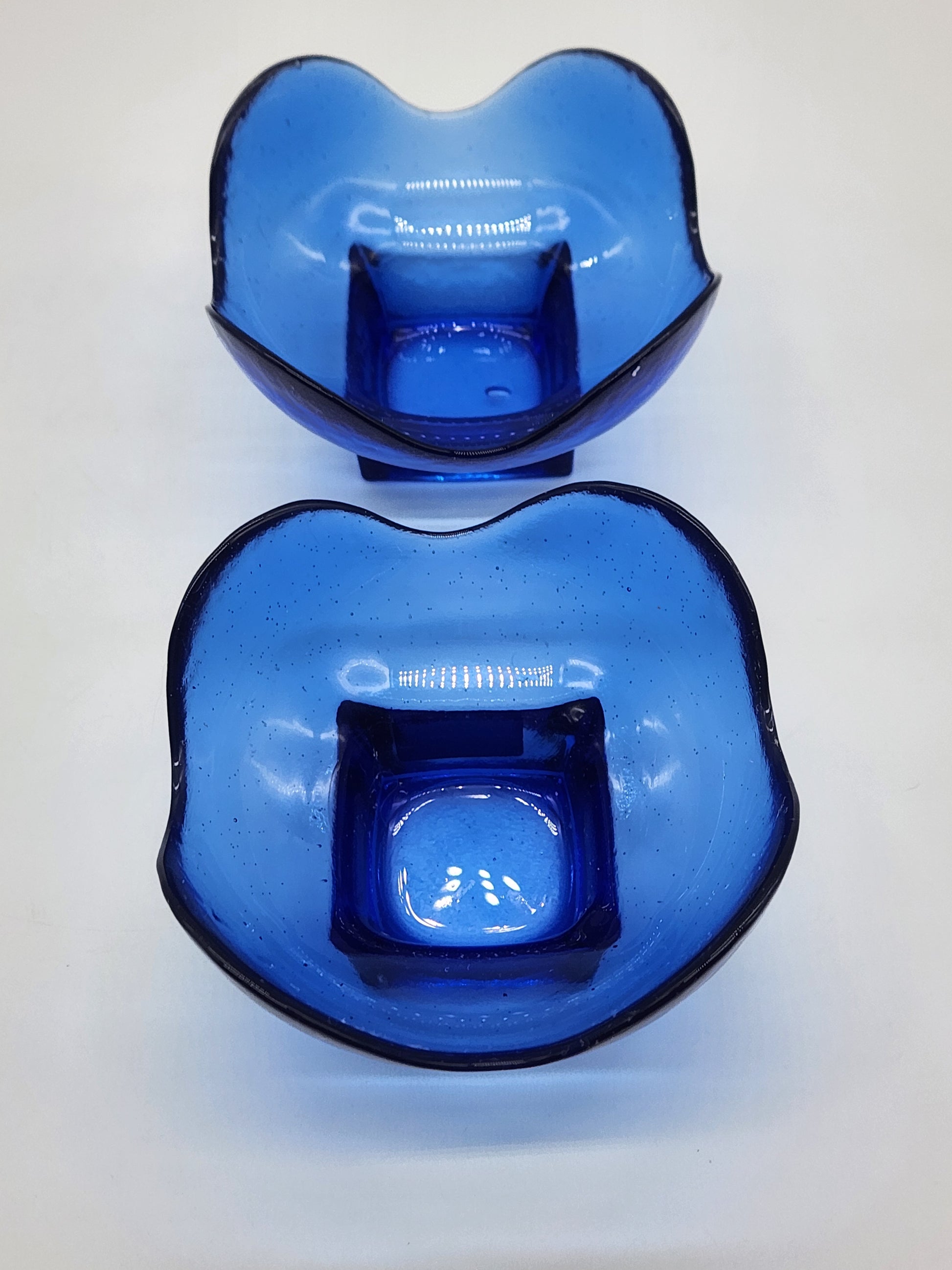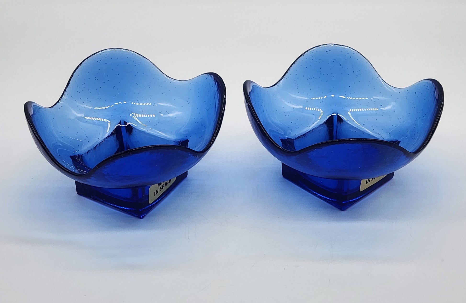Set of 2 Recycled Glass Made in Spain Cobalt Blue Tulip Floral Candle Holder