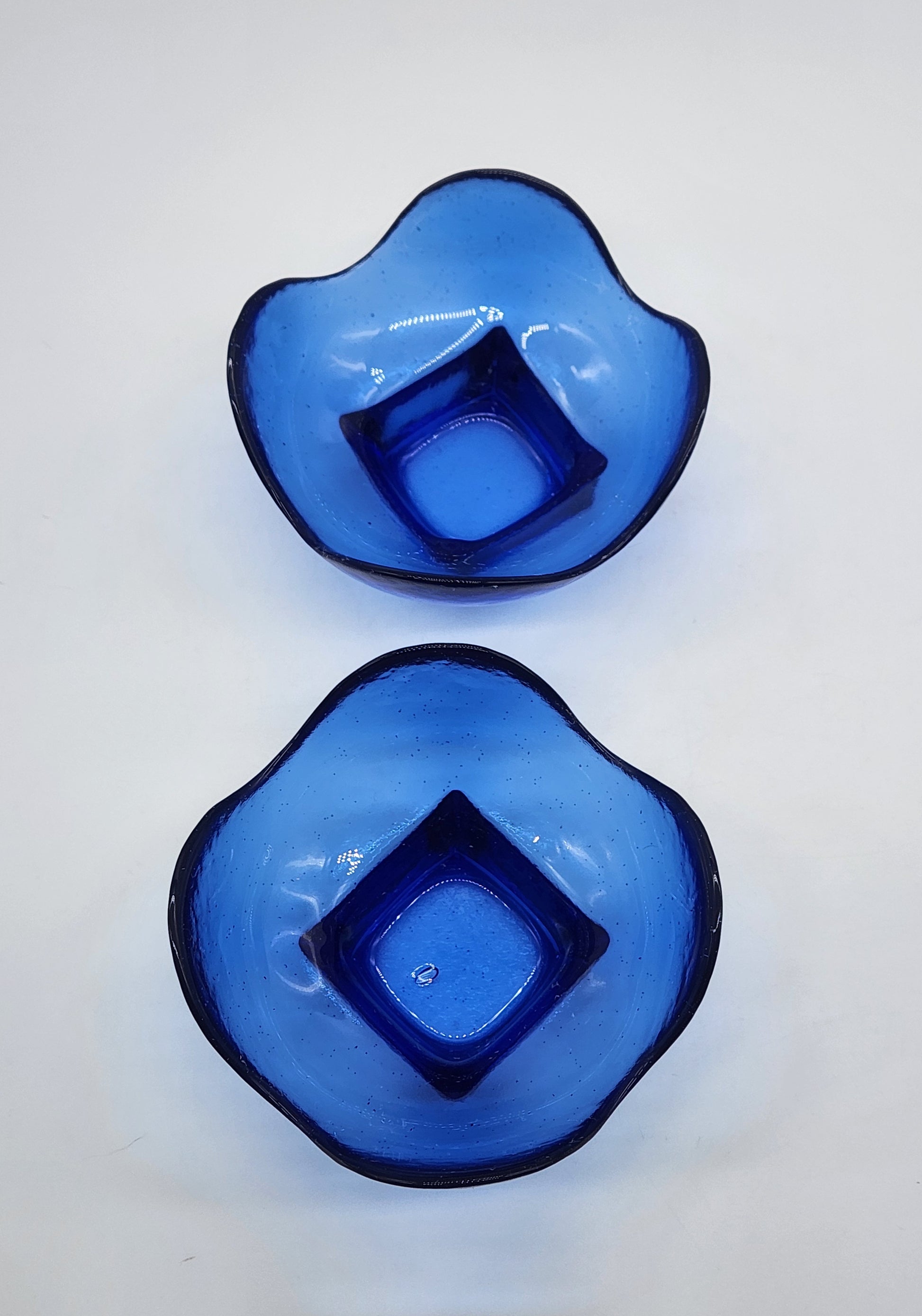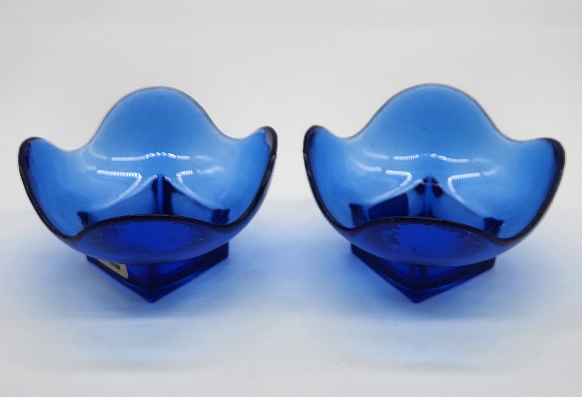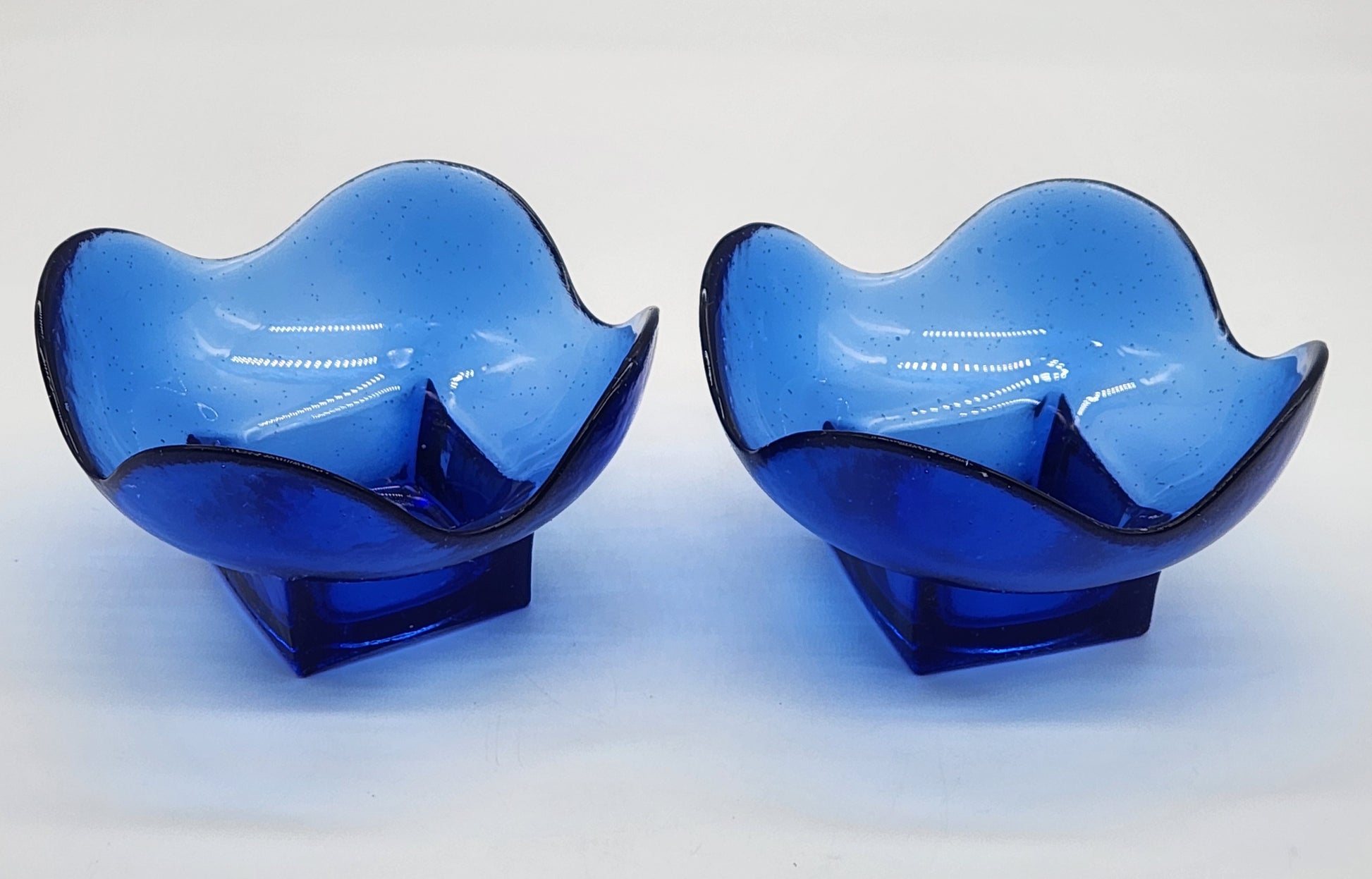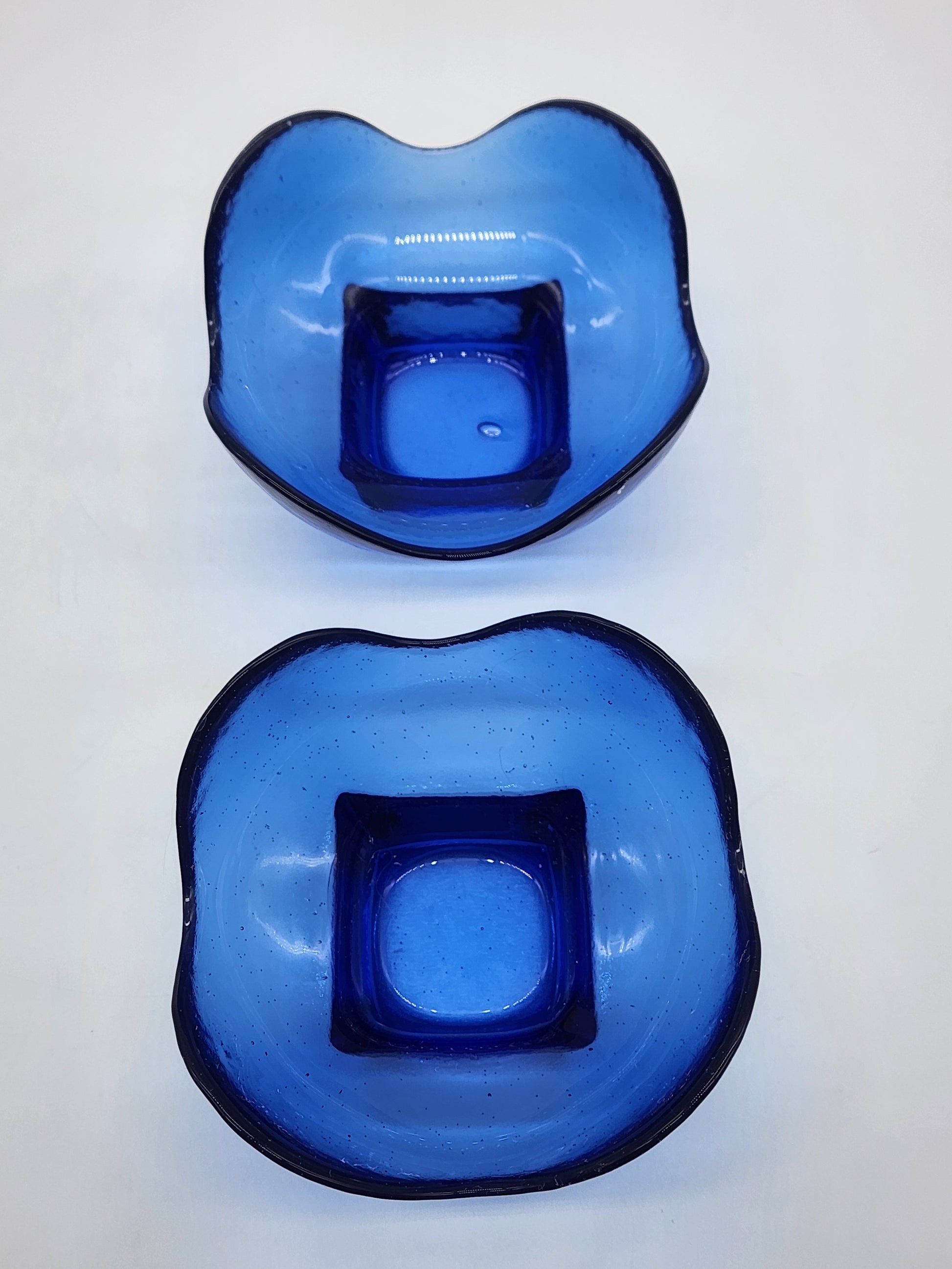 Set of 2 Recycled Glass Made in Spain Cobalt Blue Tulip Floral Candle Holder