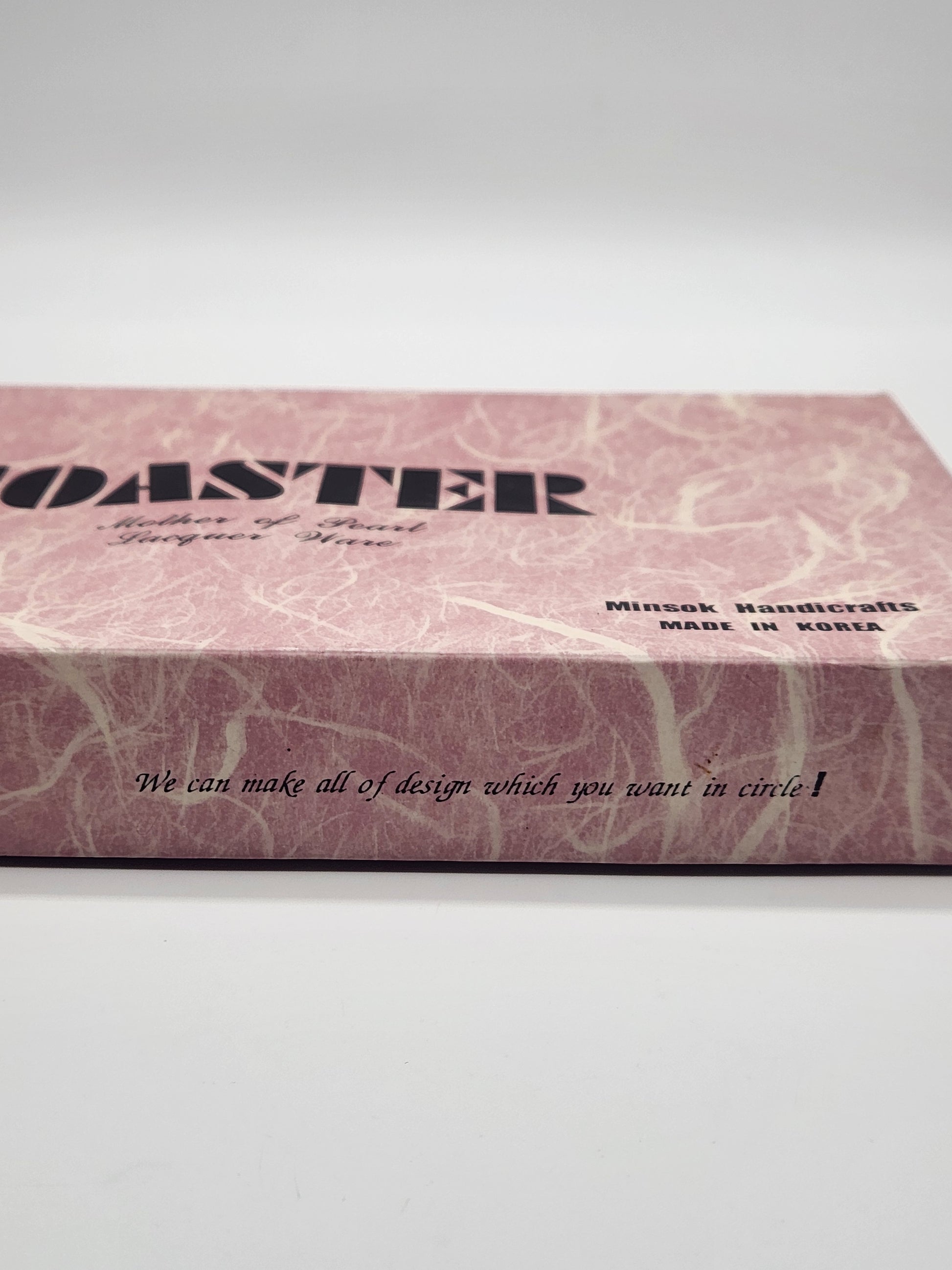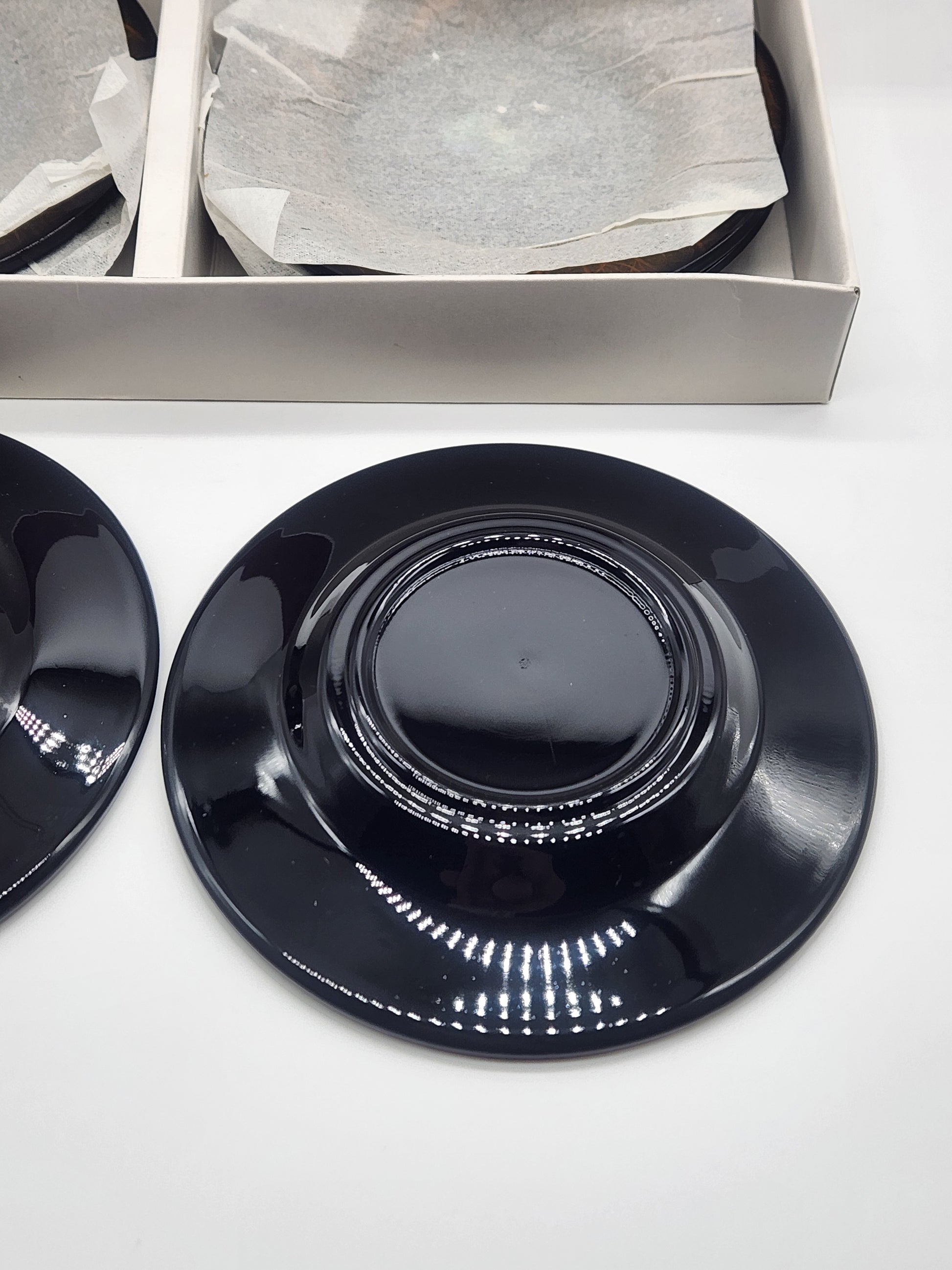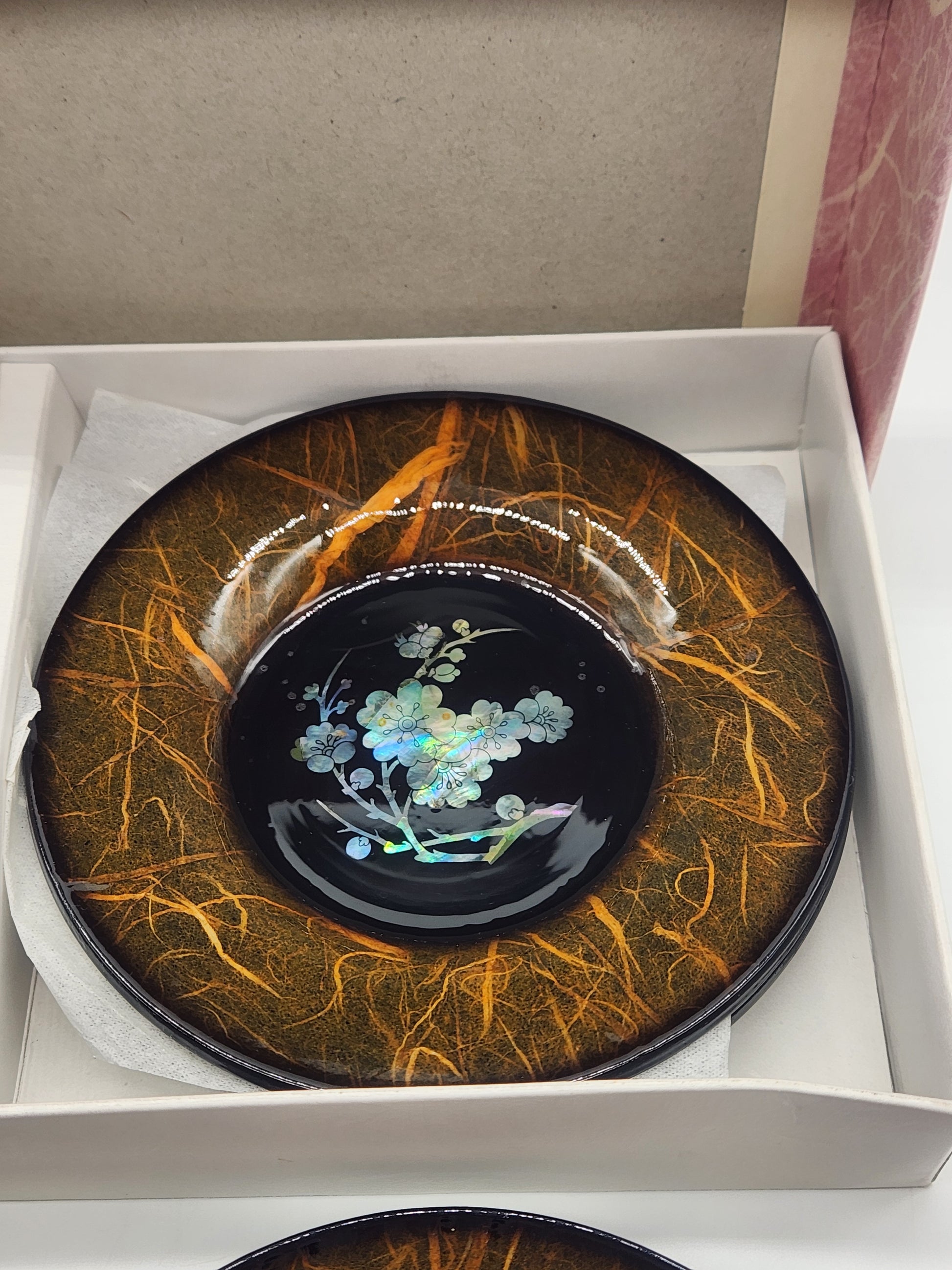 Set Of 6 Lacquer Ware Inlaid Mother of Pearl Cherry Blossom Coasters w/box