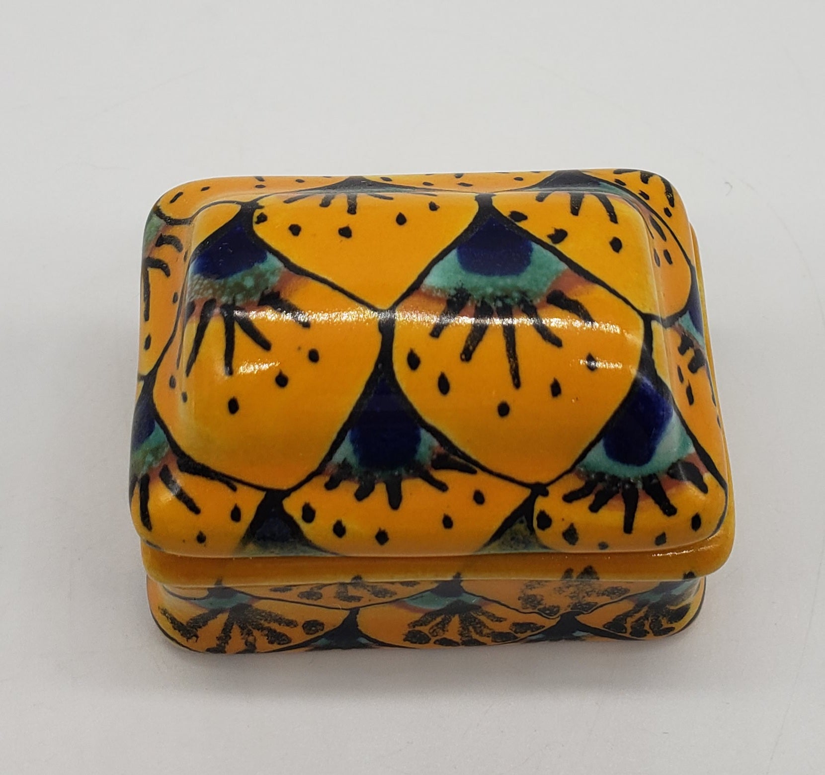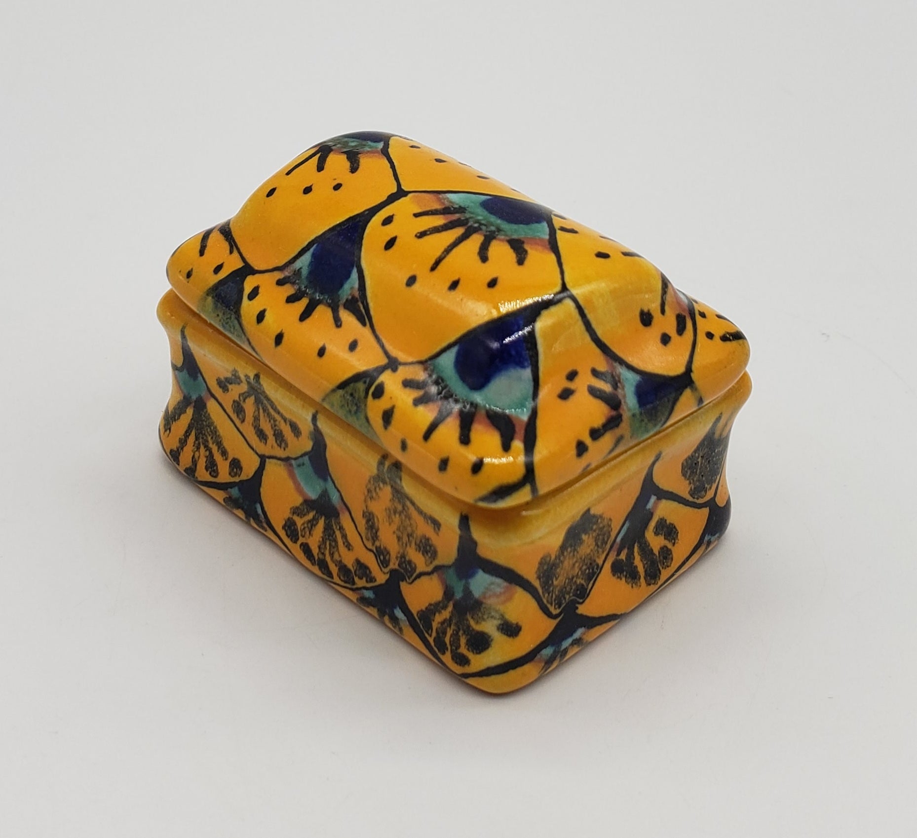 Mexican Talavera Pottery Trinket Box Treasure Chest Colorful Jar Jewelry Box.