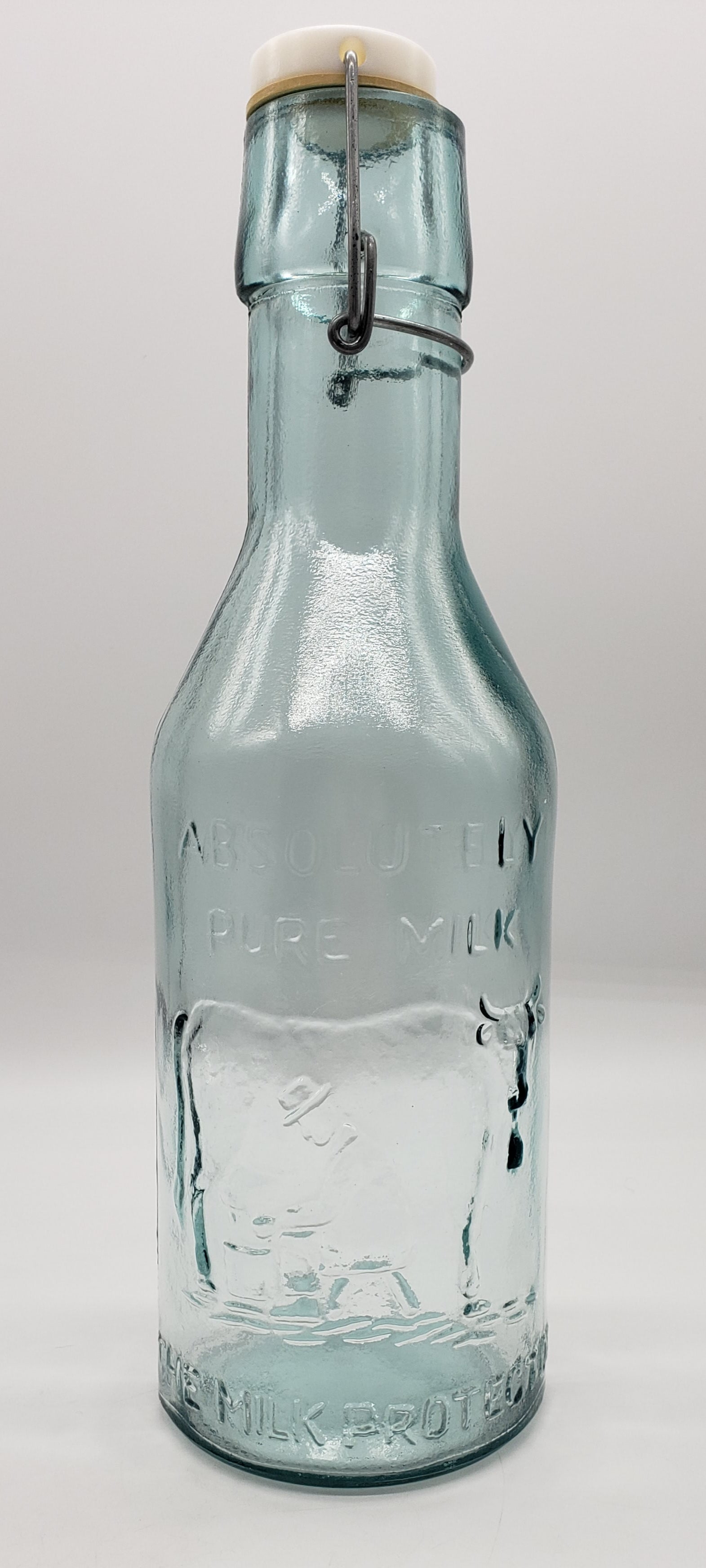 HAS AN EMBOSSED COW AND THE ABSOLUTELY PURE MILK, THE MILK PROTECTOR ON THE SIDE