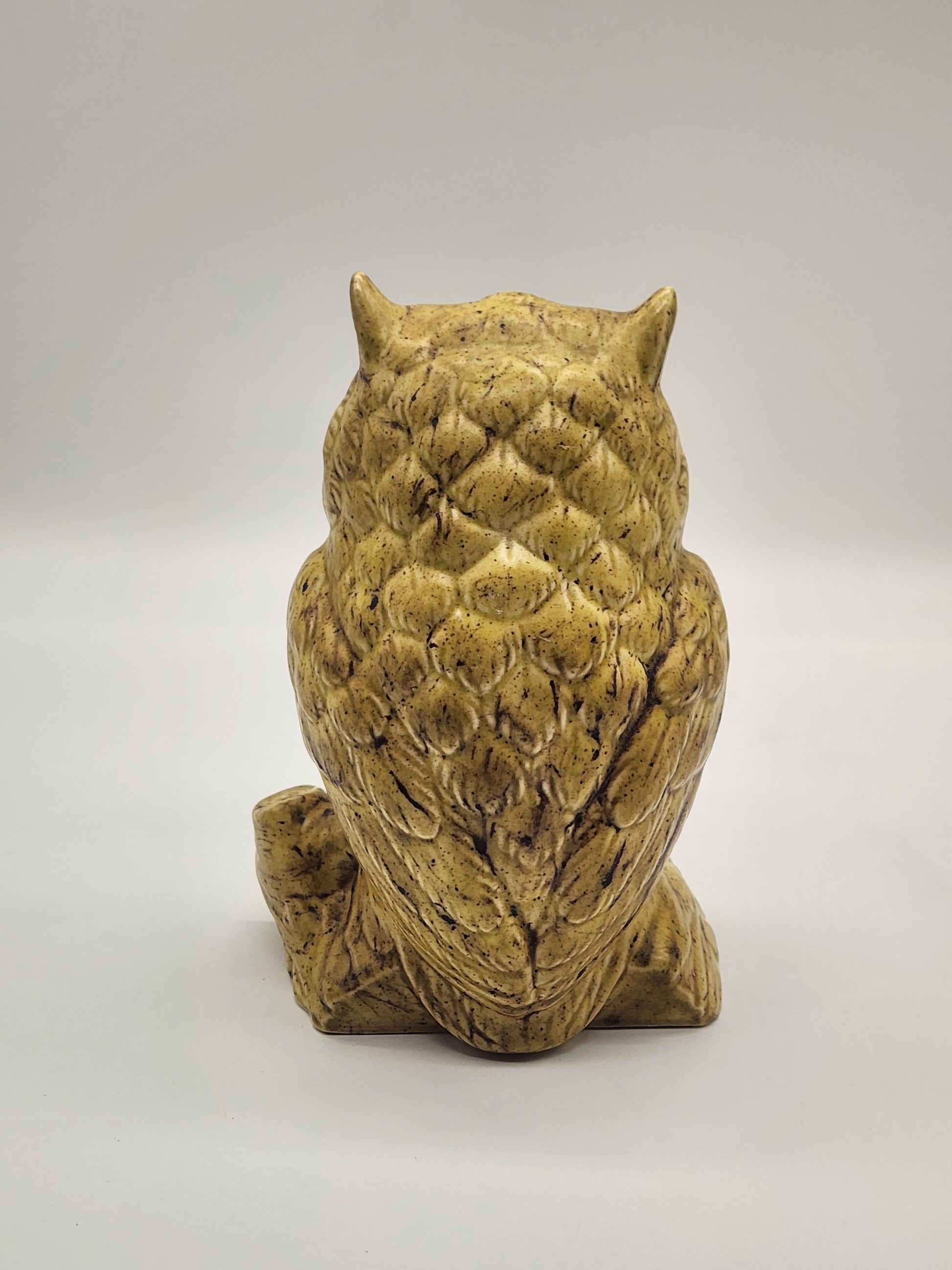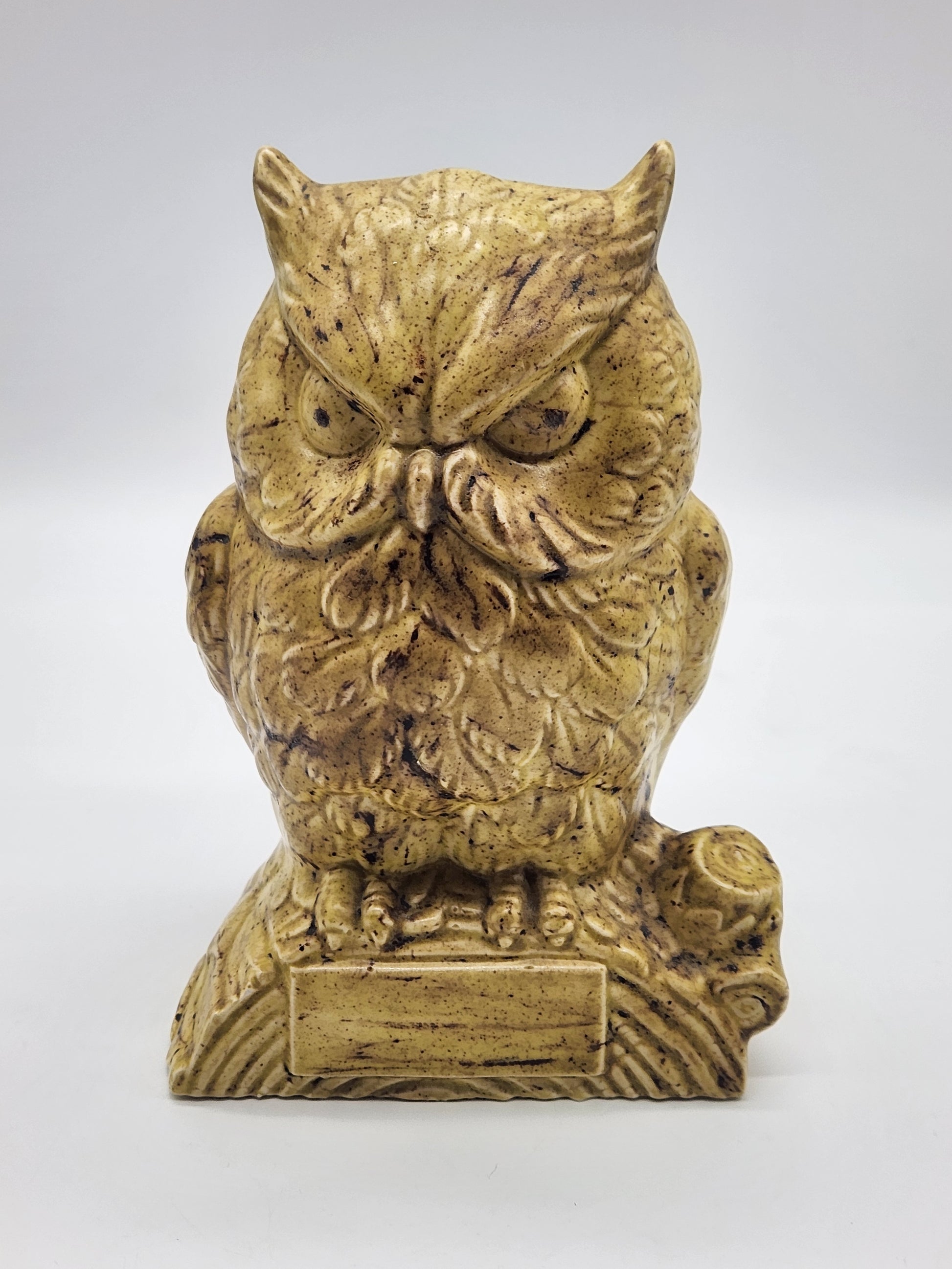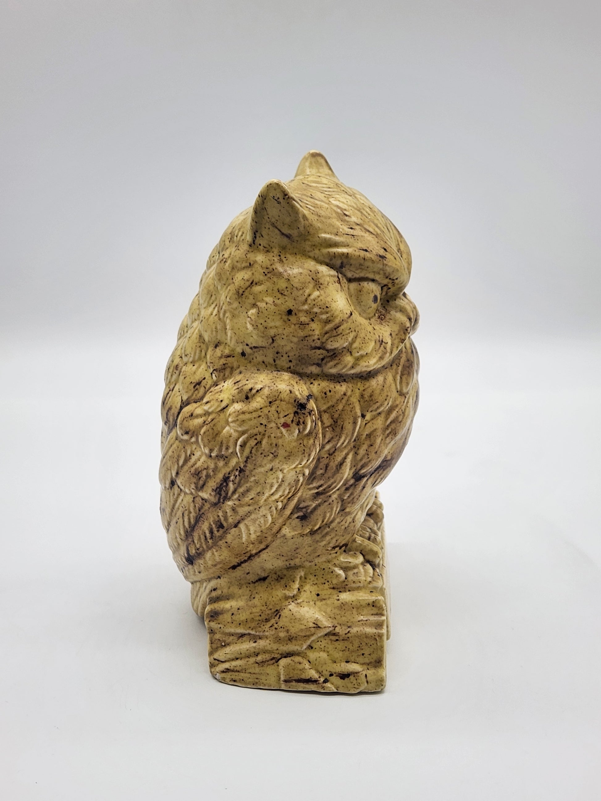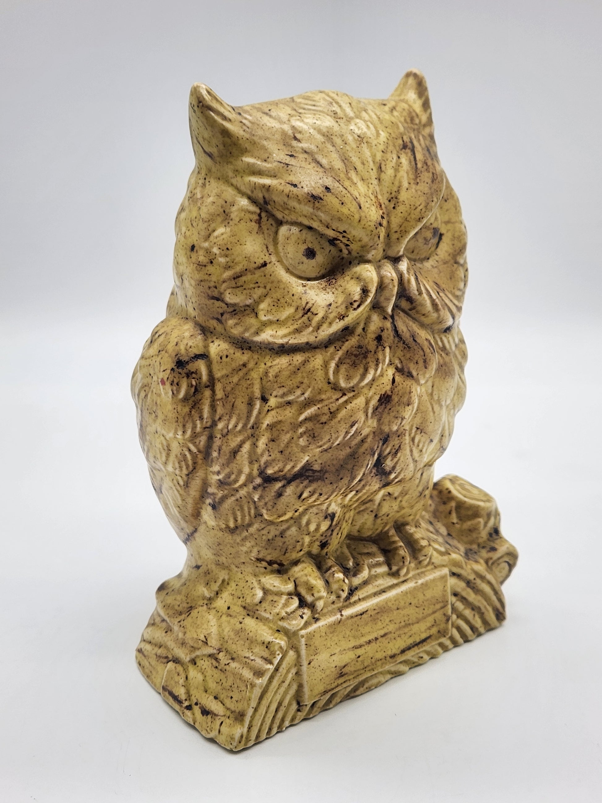 Vintage Ceramic Owl on Log Hobbyist Speckled Glaze MCM. Measures approximately 6.5" tall x 4" wide