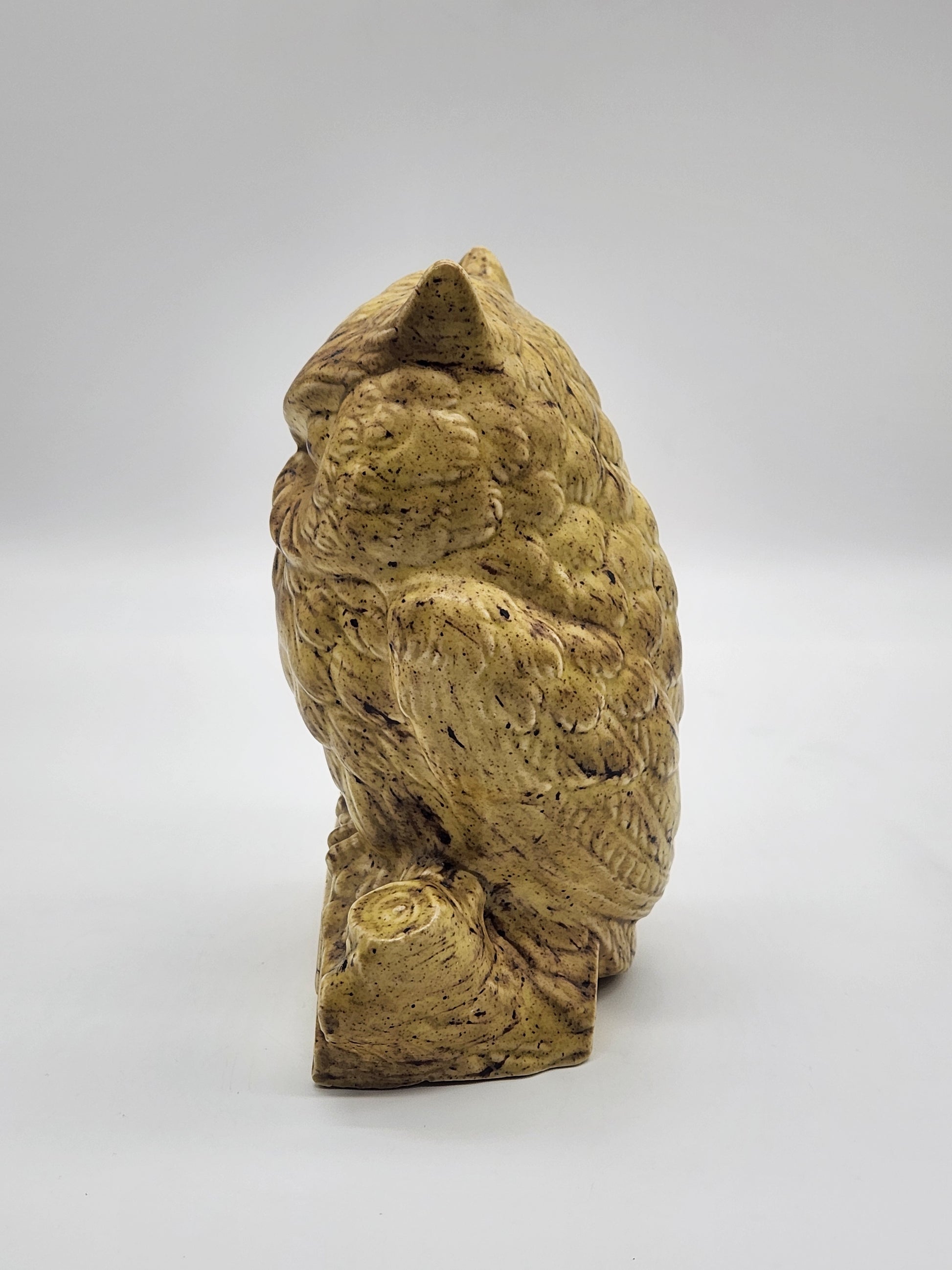 Vintage Ceramic Owl on Log Hobbyist Speckled Glaze MCM