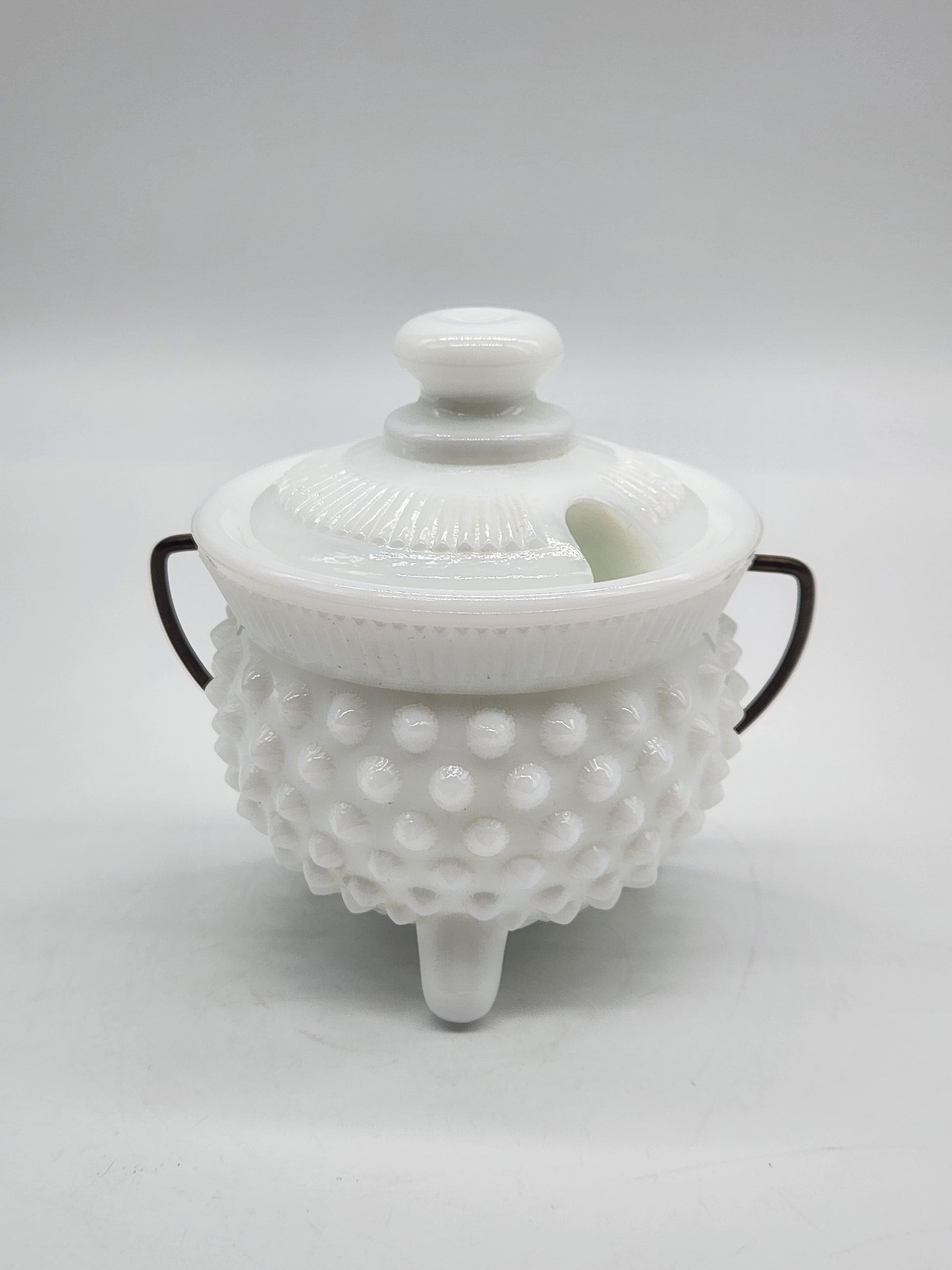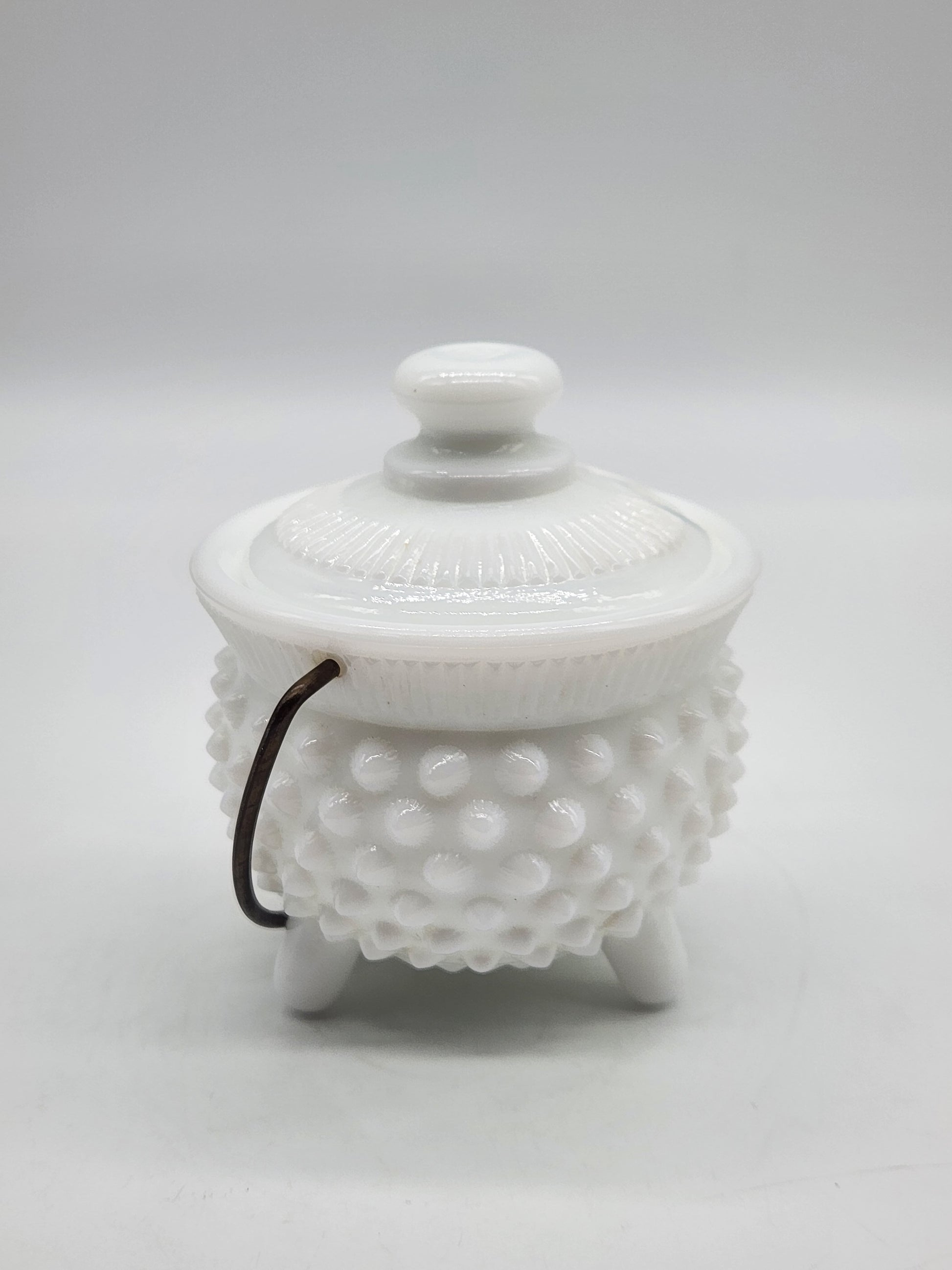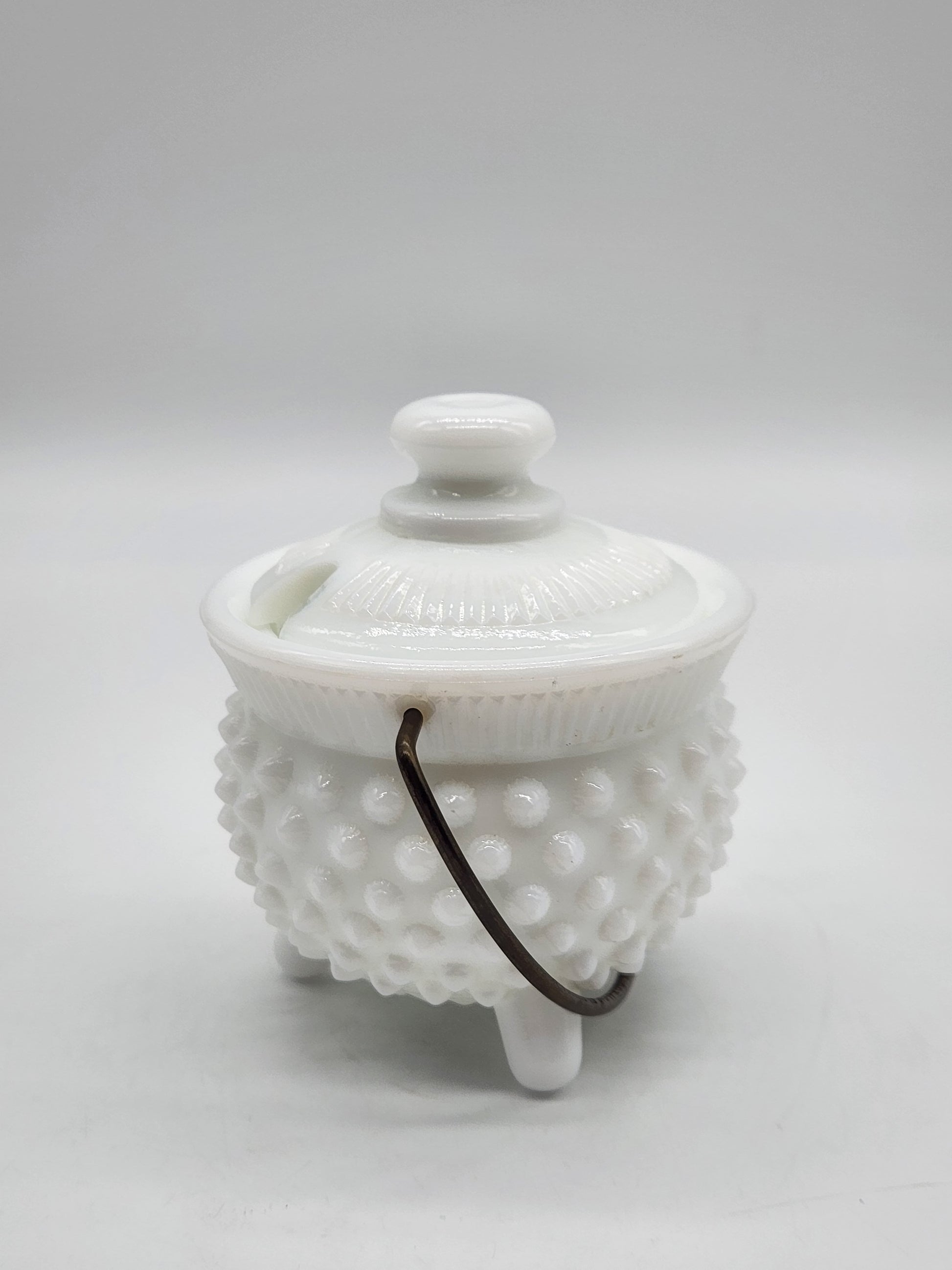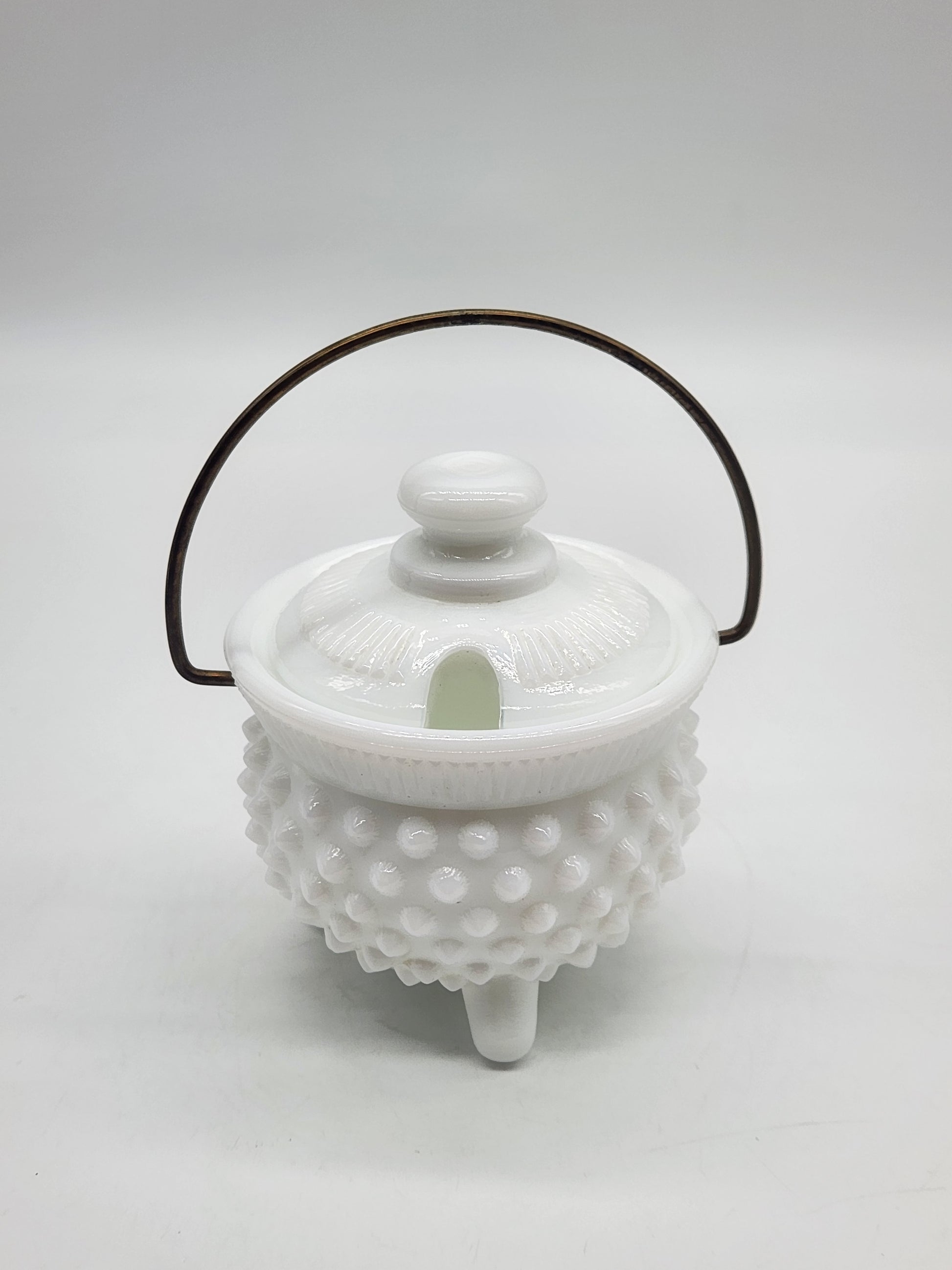 Vintage Fenton Milk Glass HOBNAIL Mustard Kettle