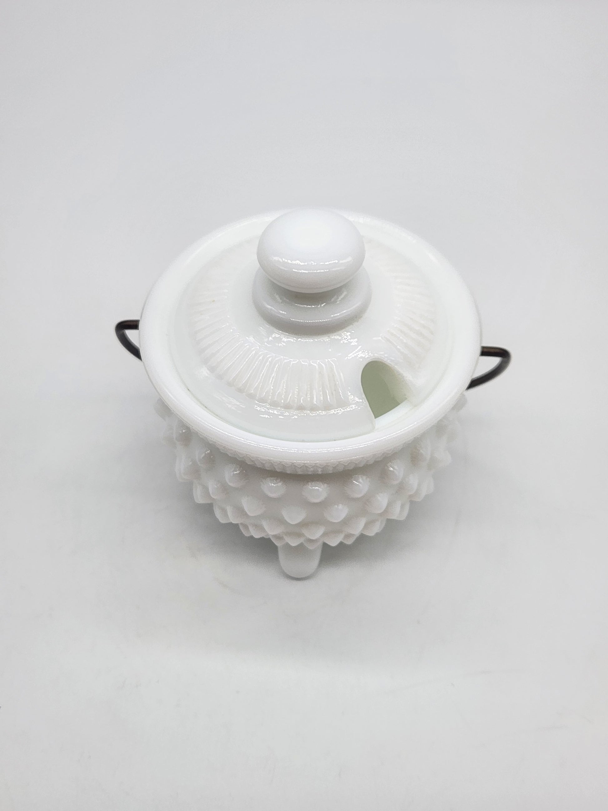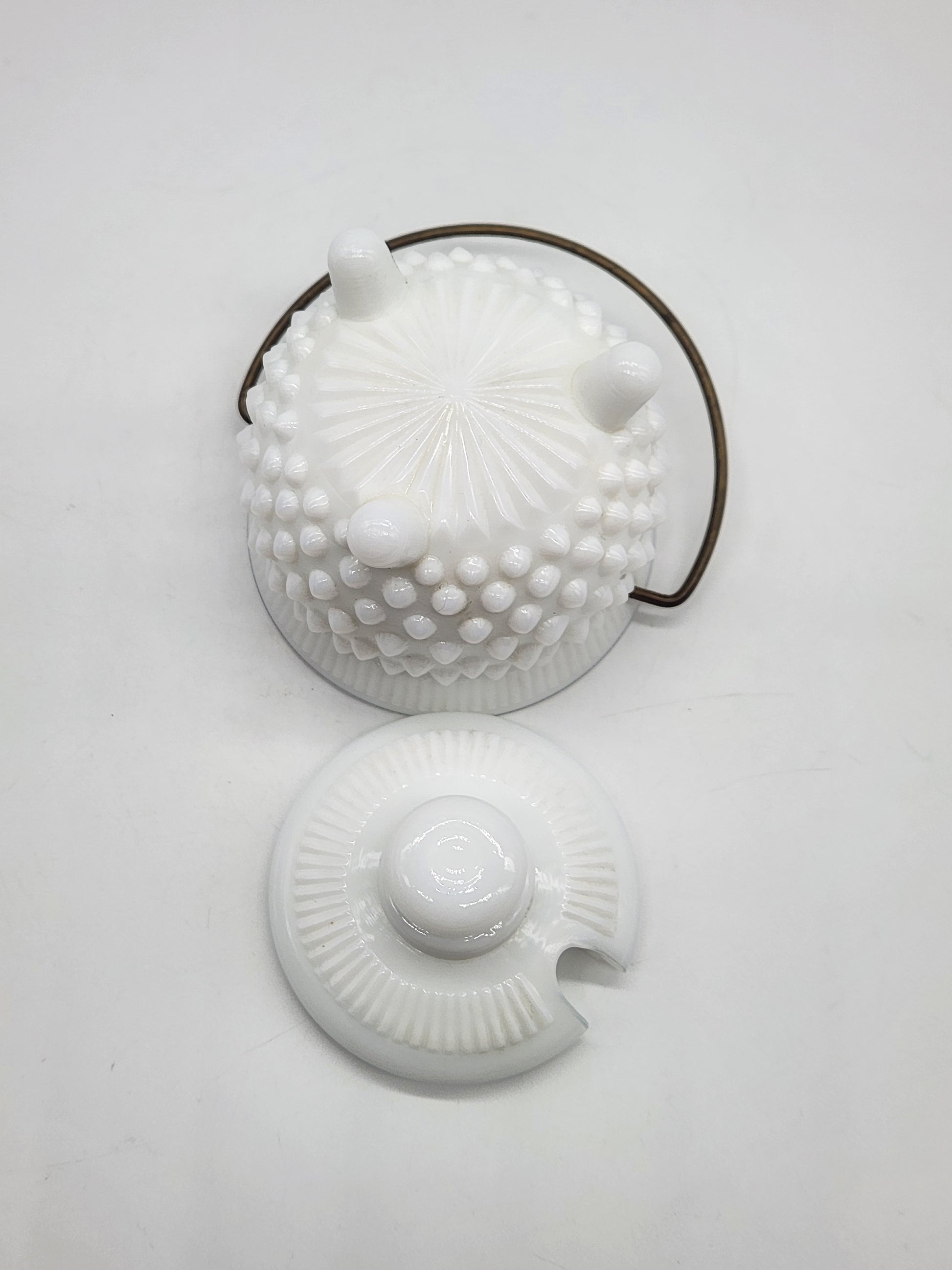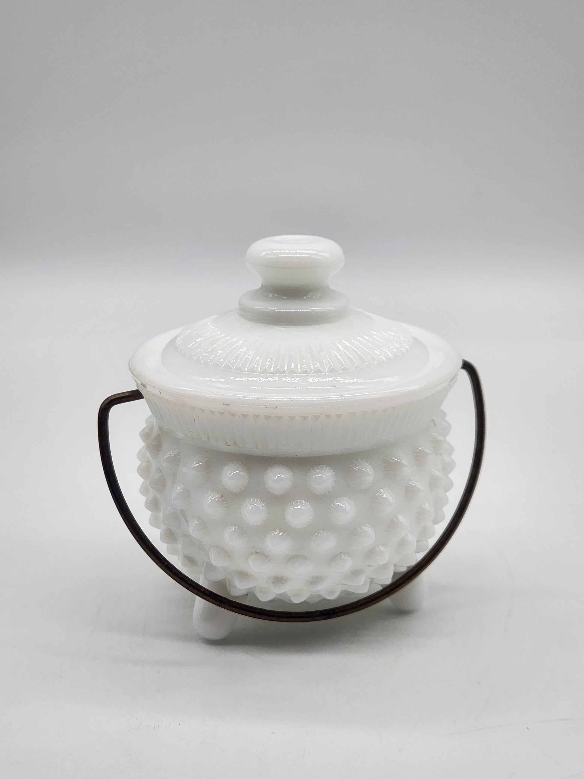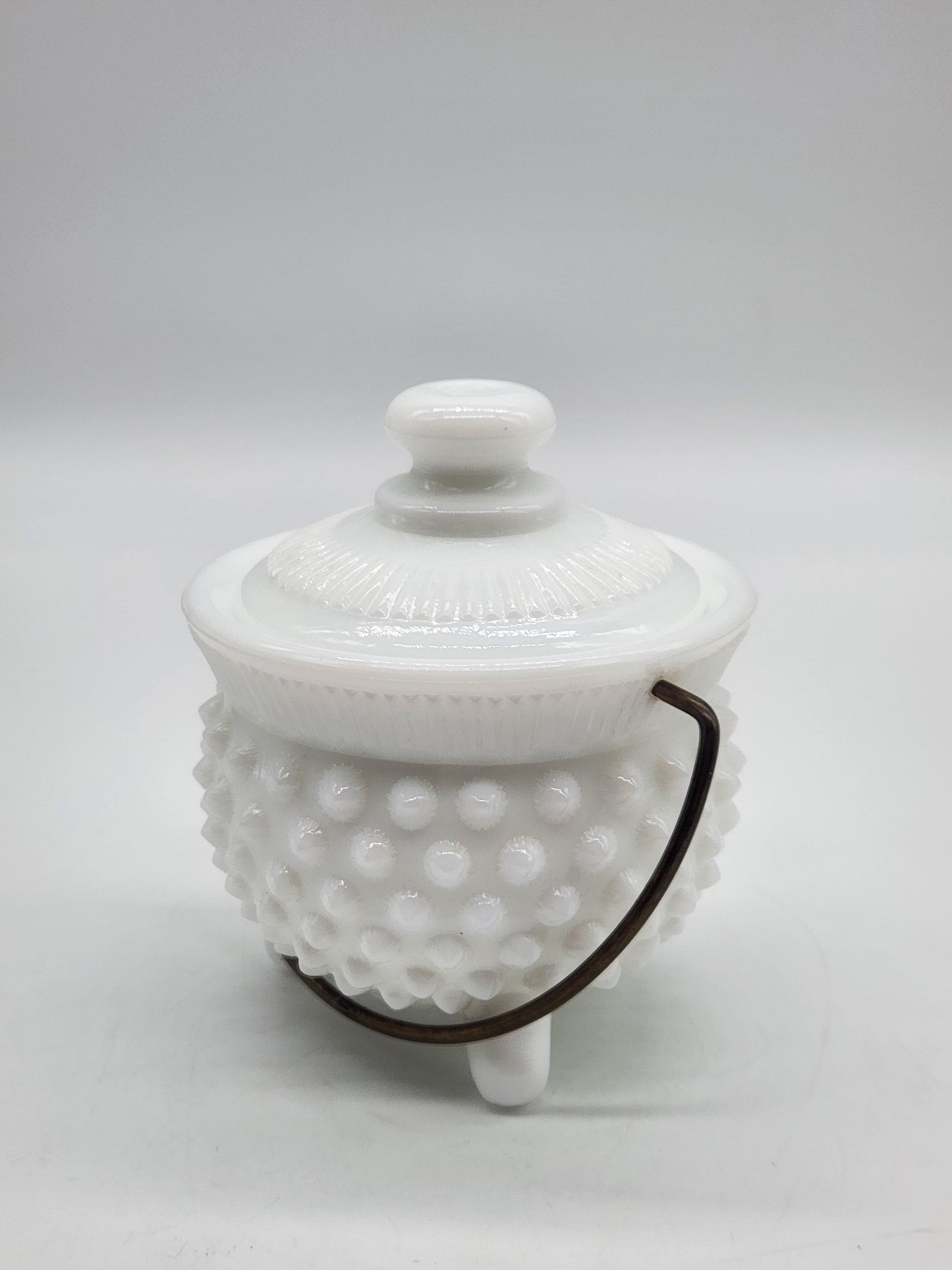 Vintage Fenton Milk Glass HOBNAIL Mustard Kettle