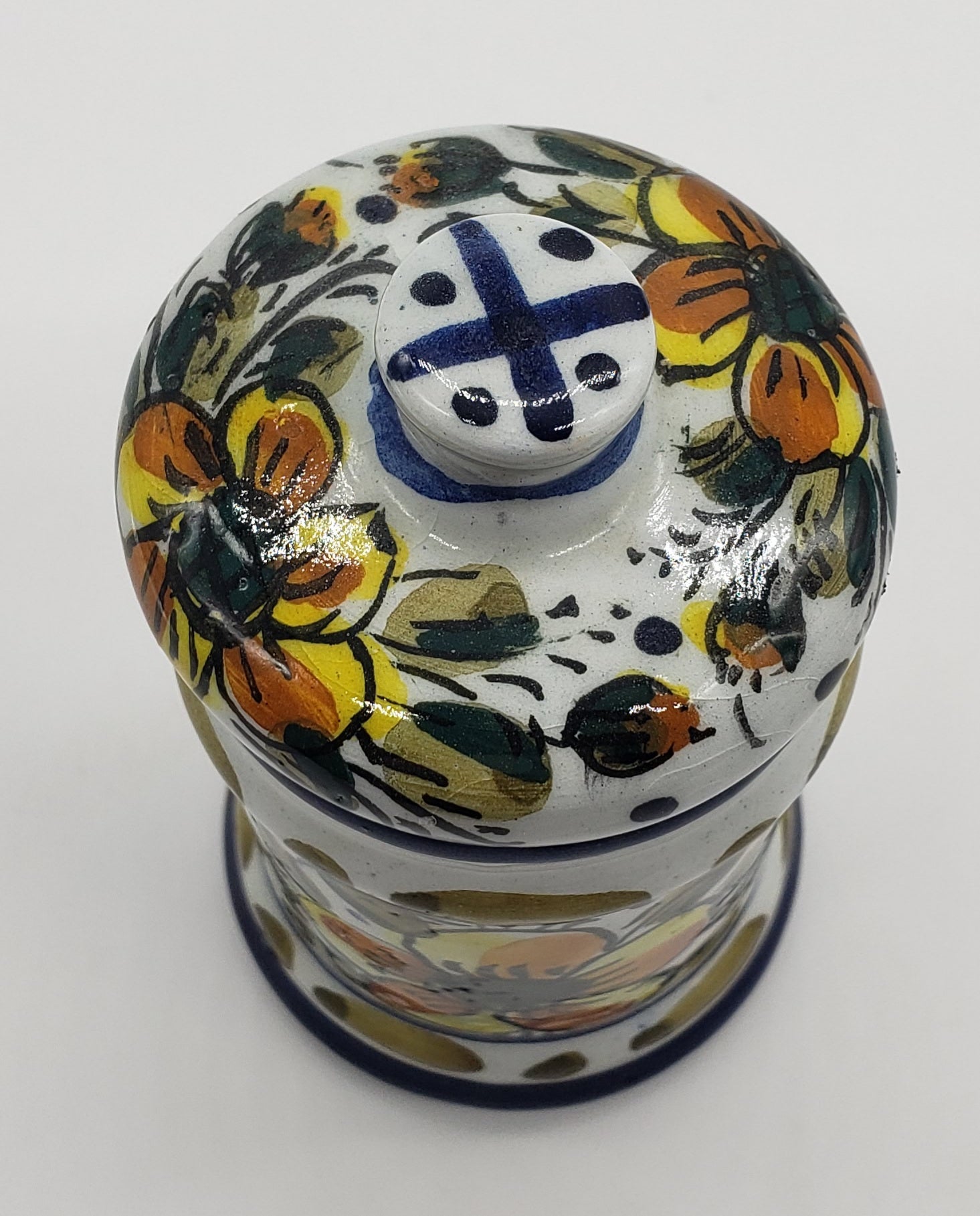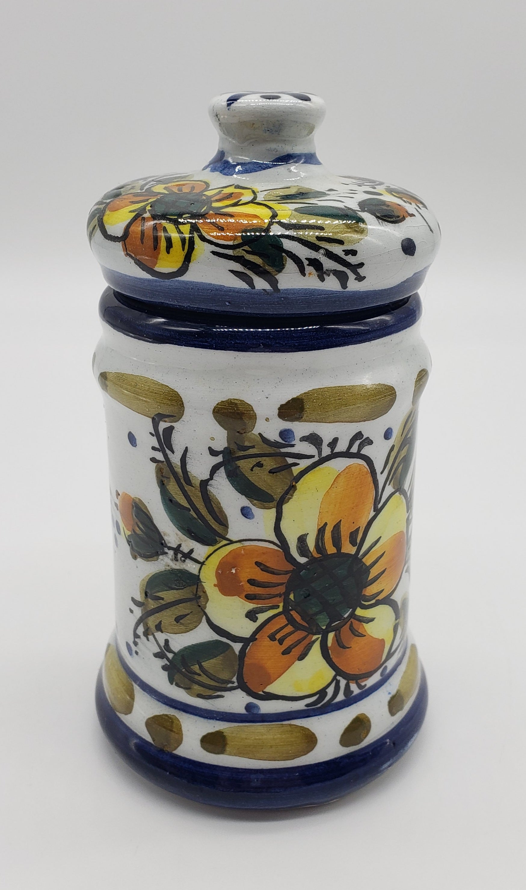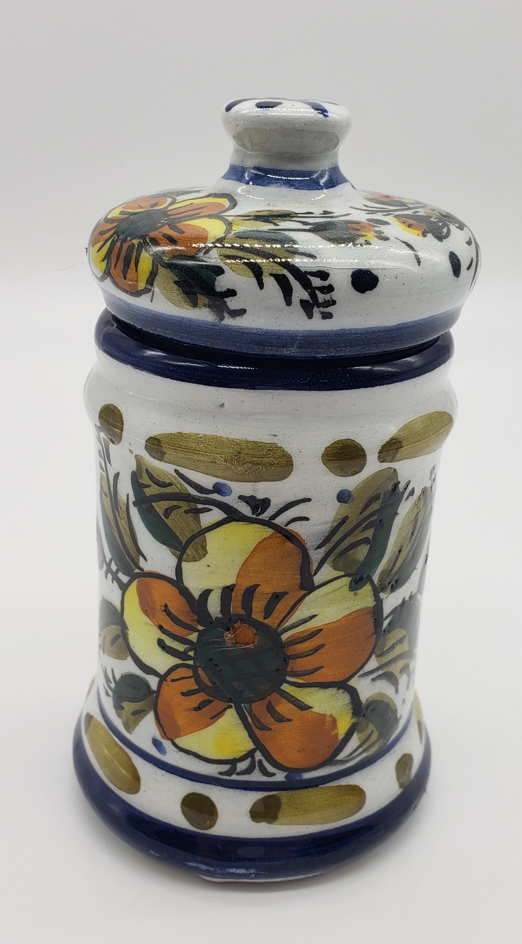 Vintage Flower Pattern Spice Jar - Made in Spain. One small paint chip.