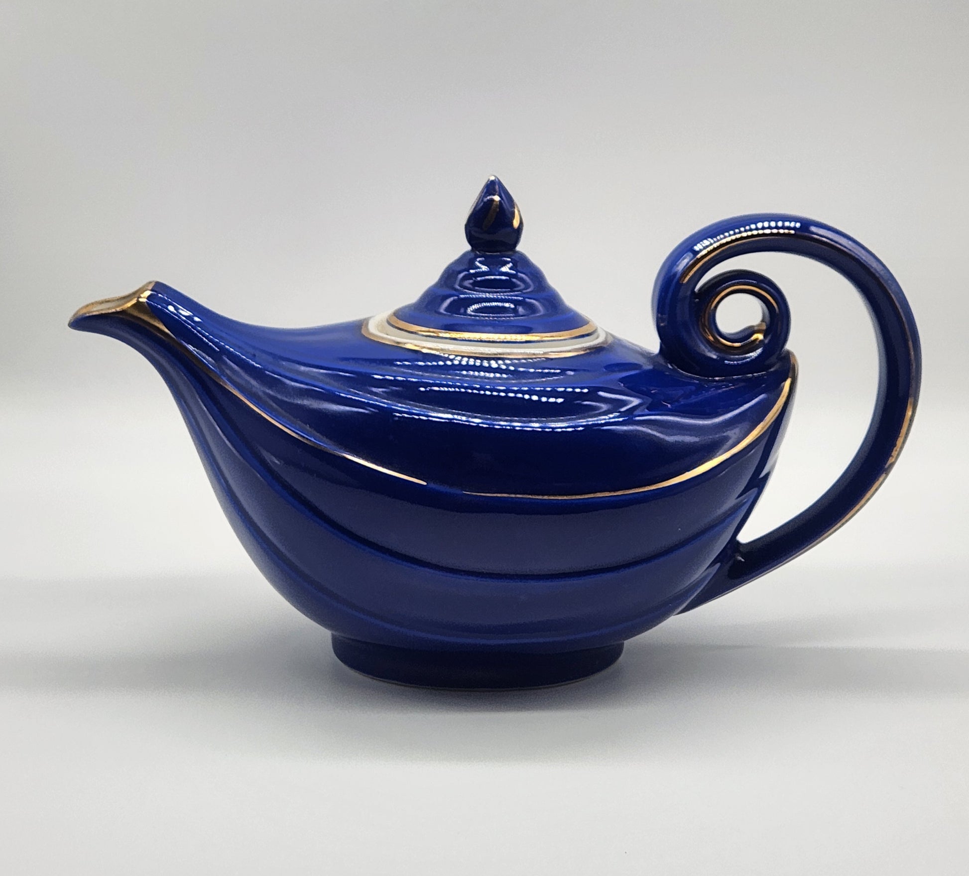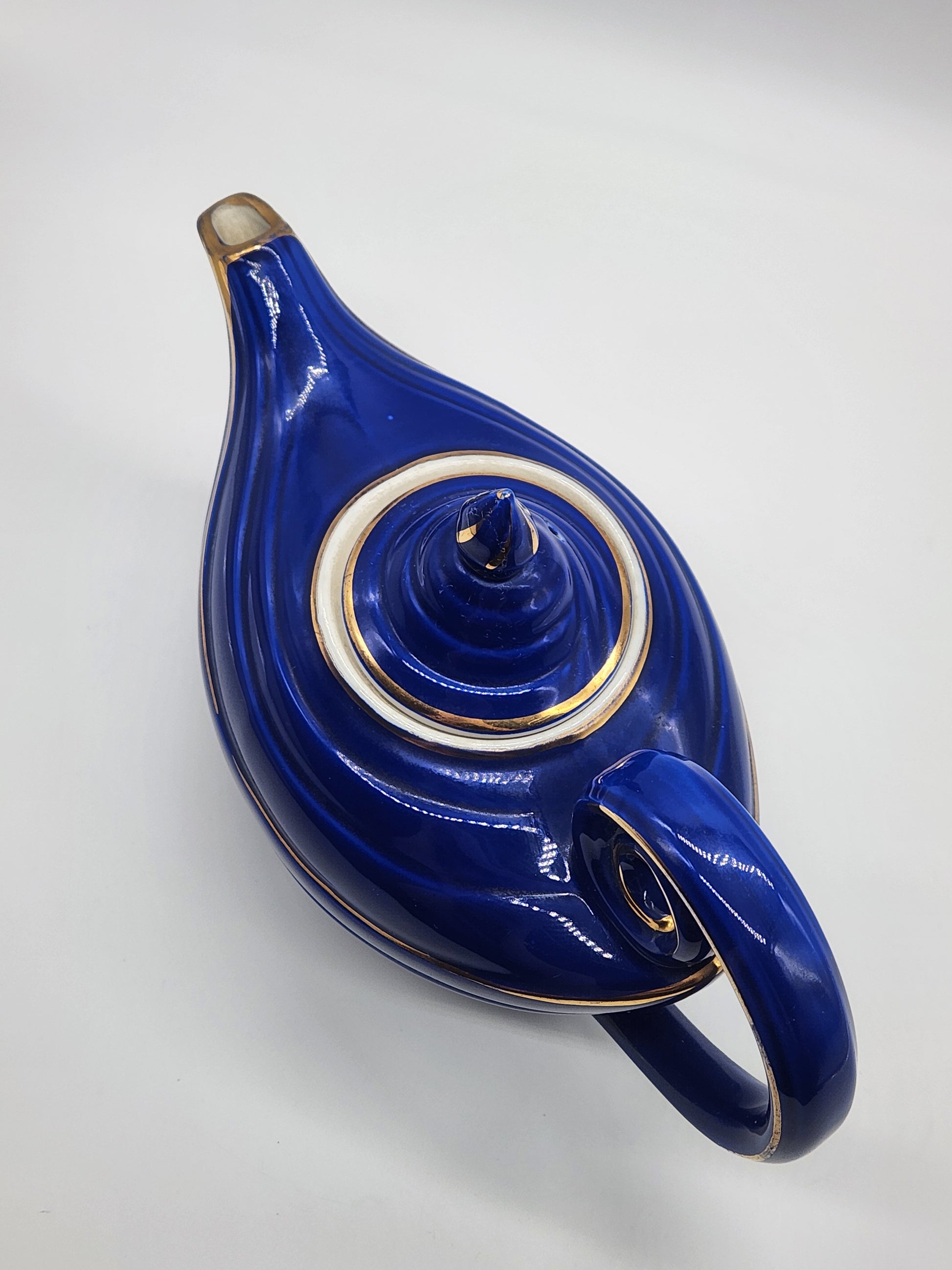 Vintage Hall Aladdin Teapot Cobalt Blue Gold Trim 0676R 6 Cup USA