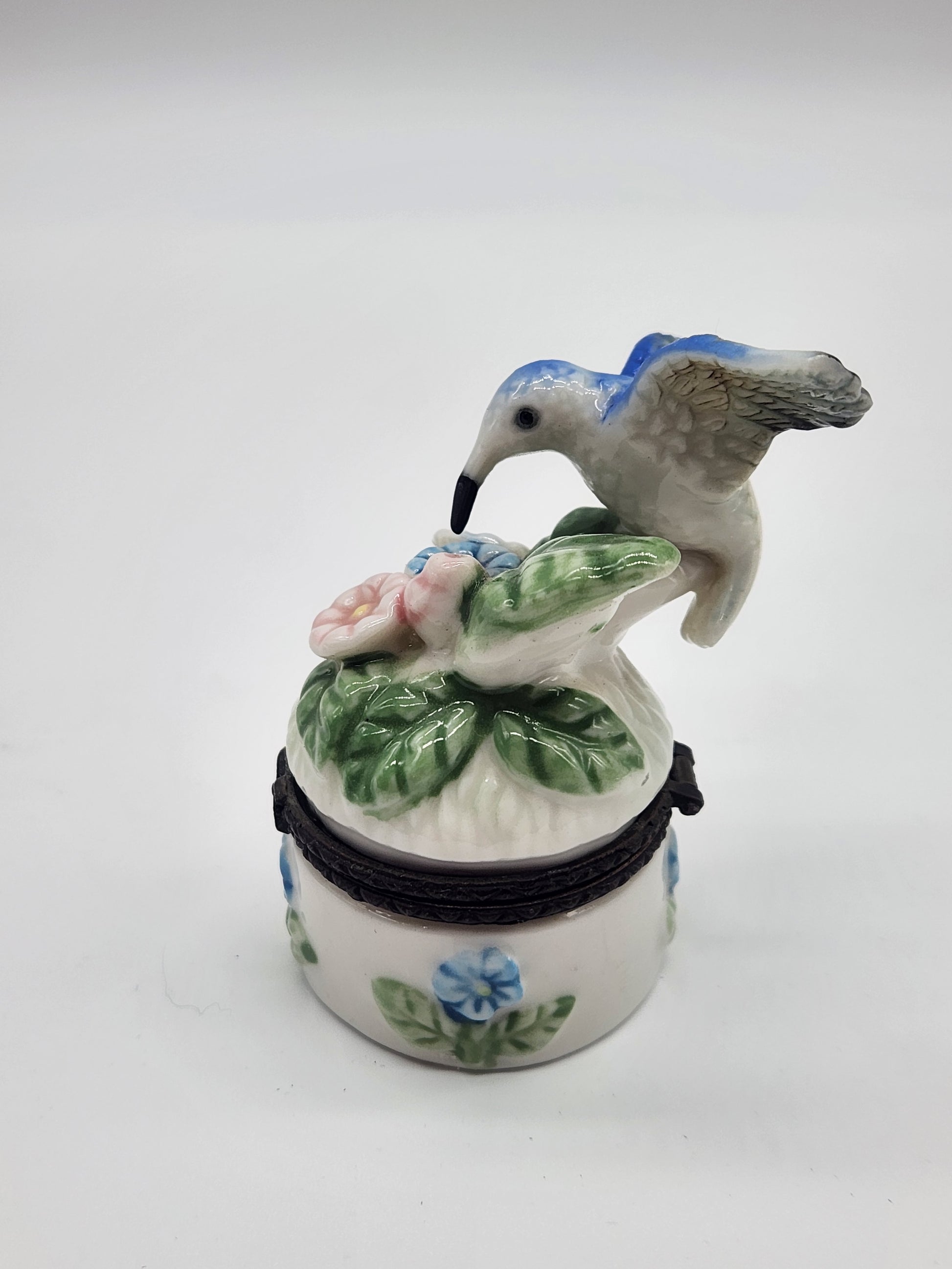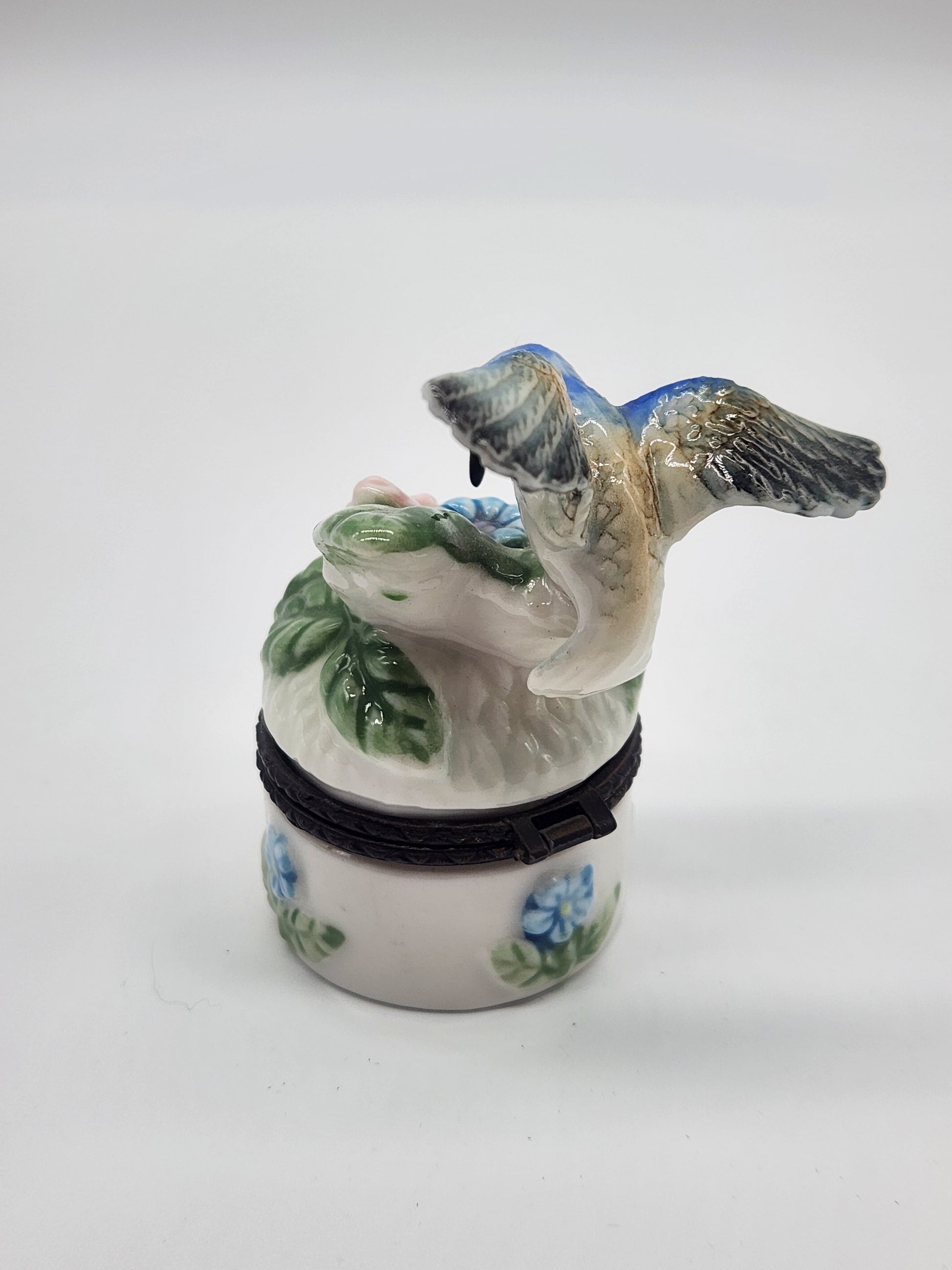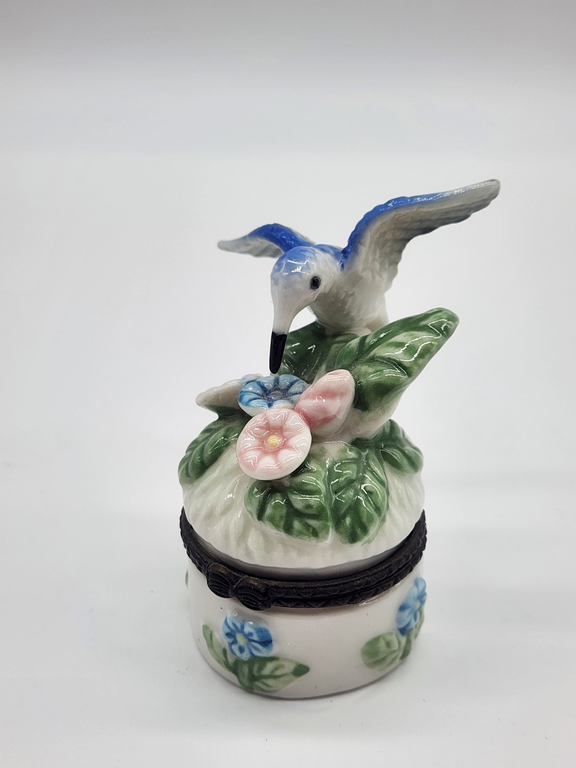 Vintage Hummingbird Trinket Box Pill Box 3" Tall