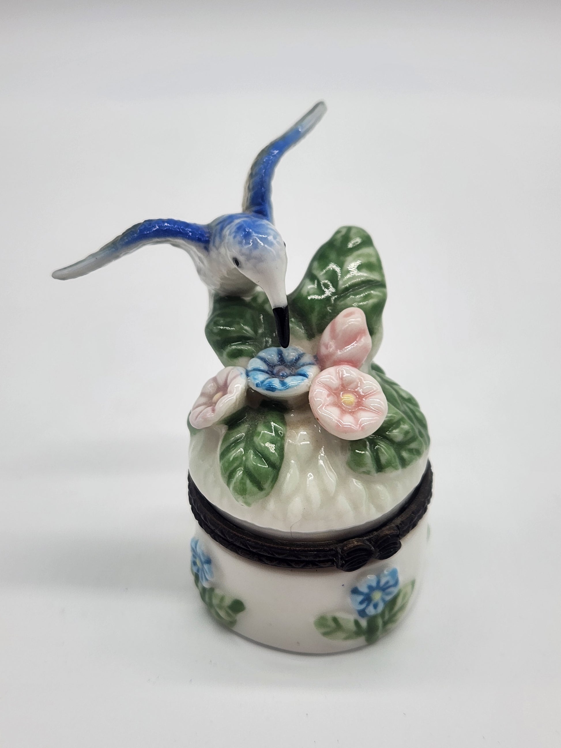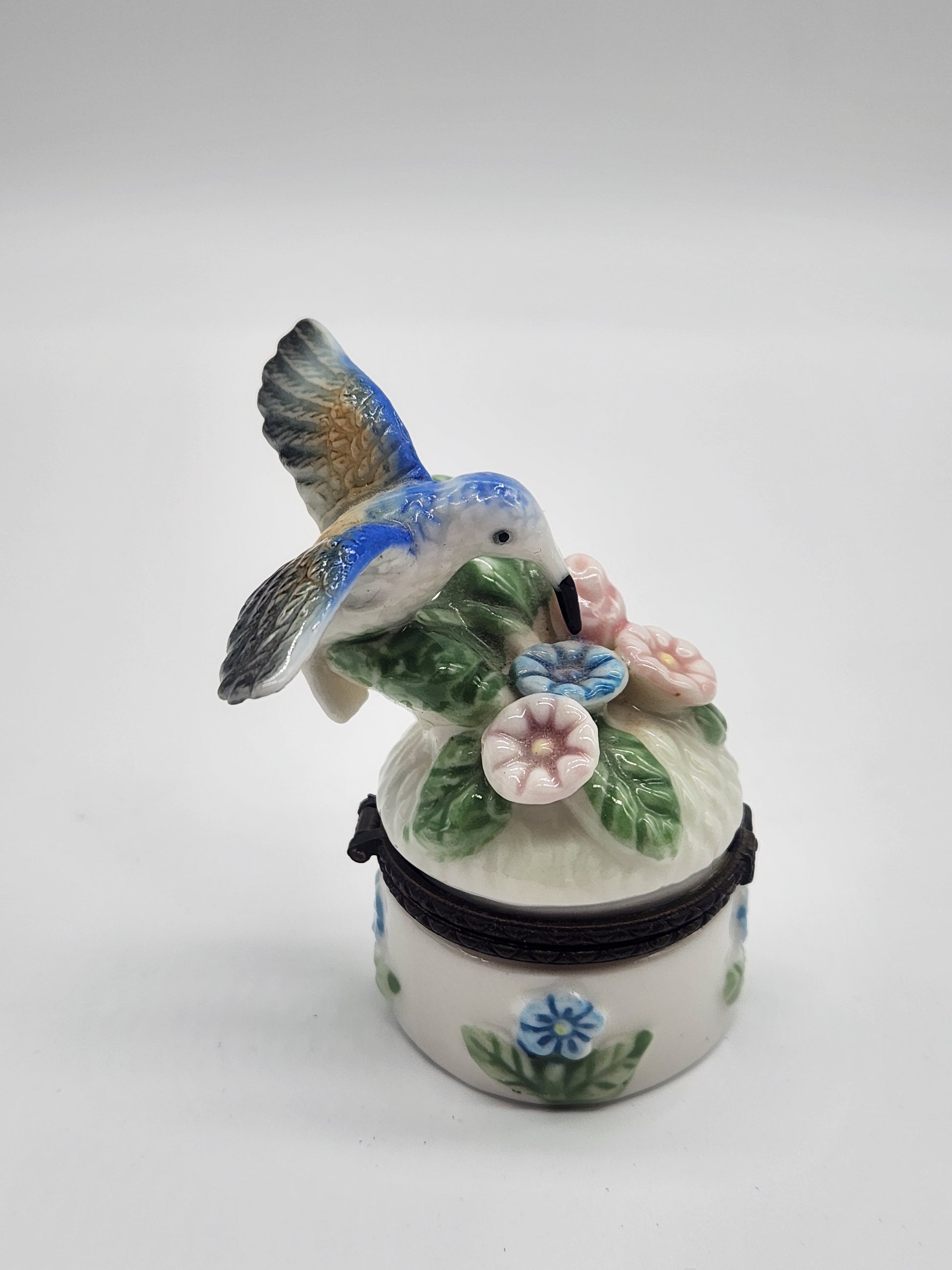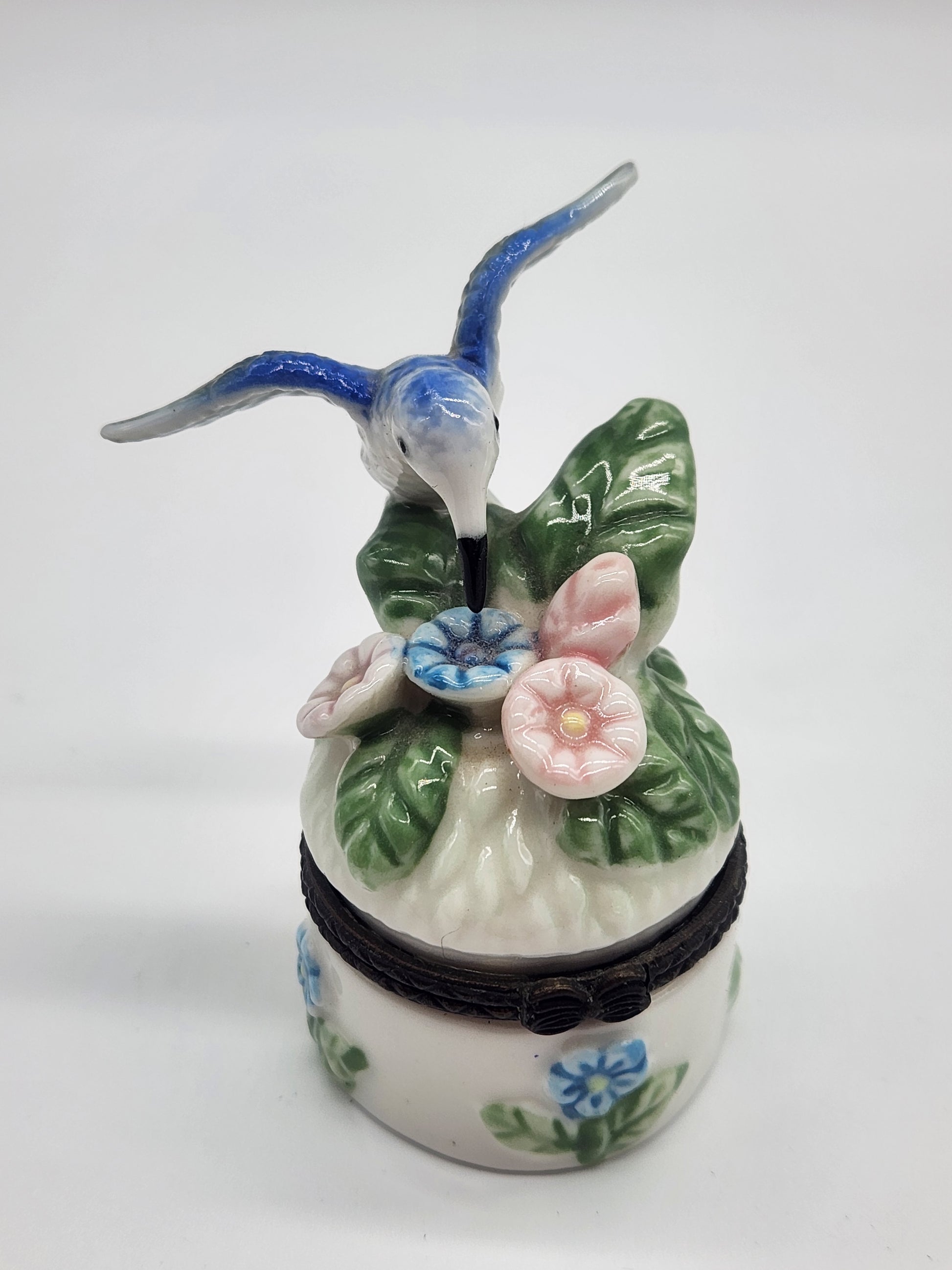 Vintage Hummingbird Trinket Box Pill Box 3" Tall