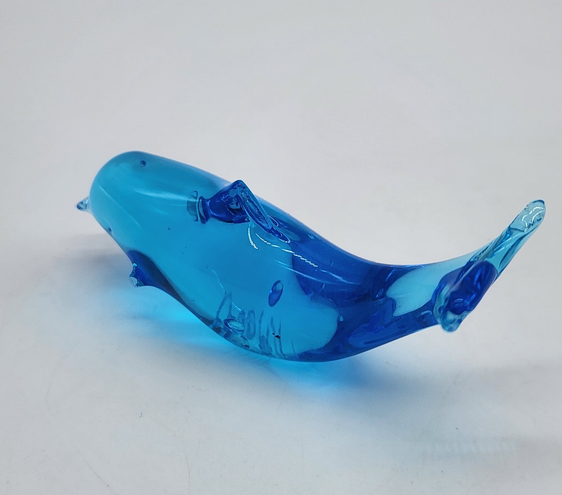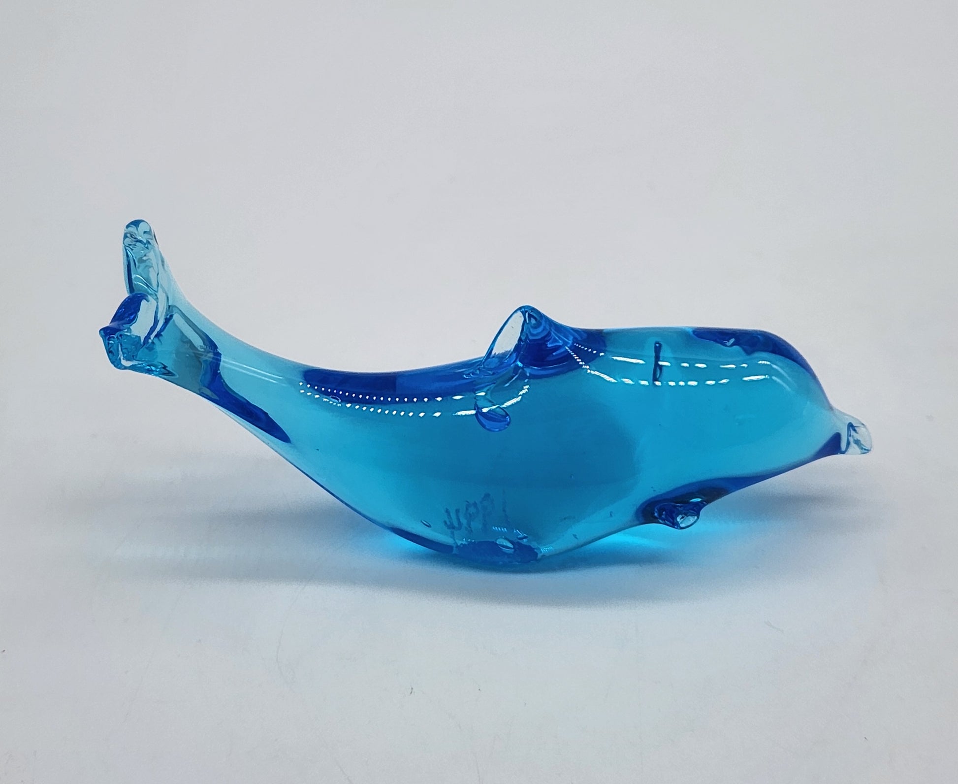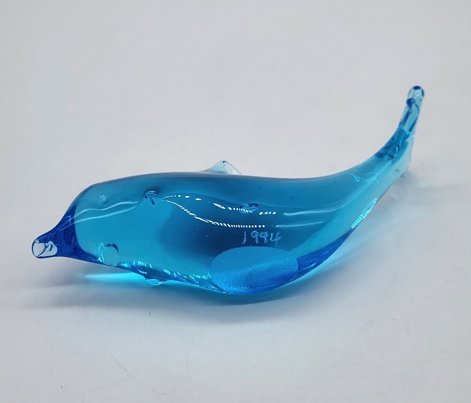 Vintage Signed W. Ward 1994 Blue Art Glass Dolphin Fish Figurine 4.5" Titan