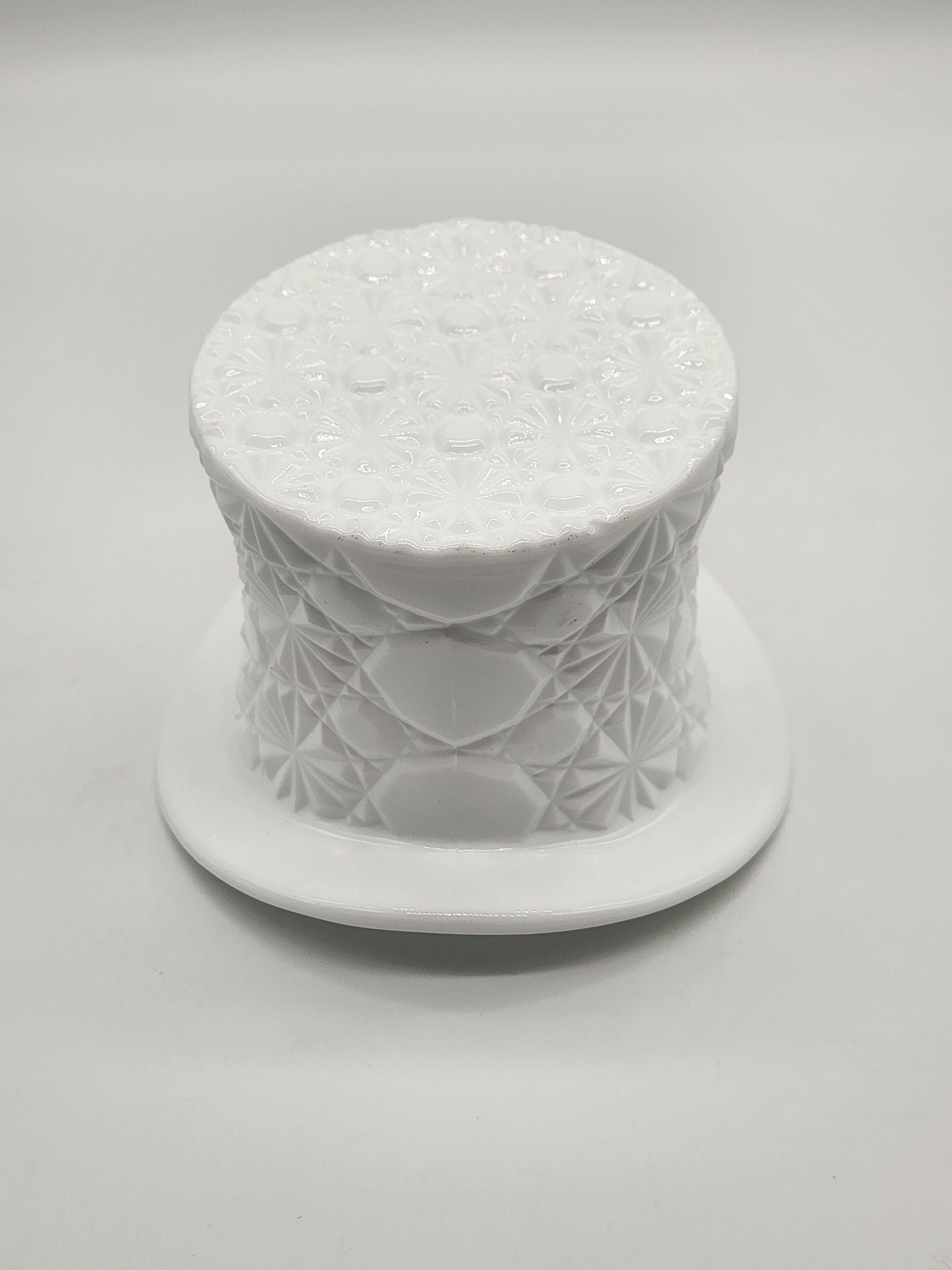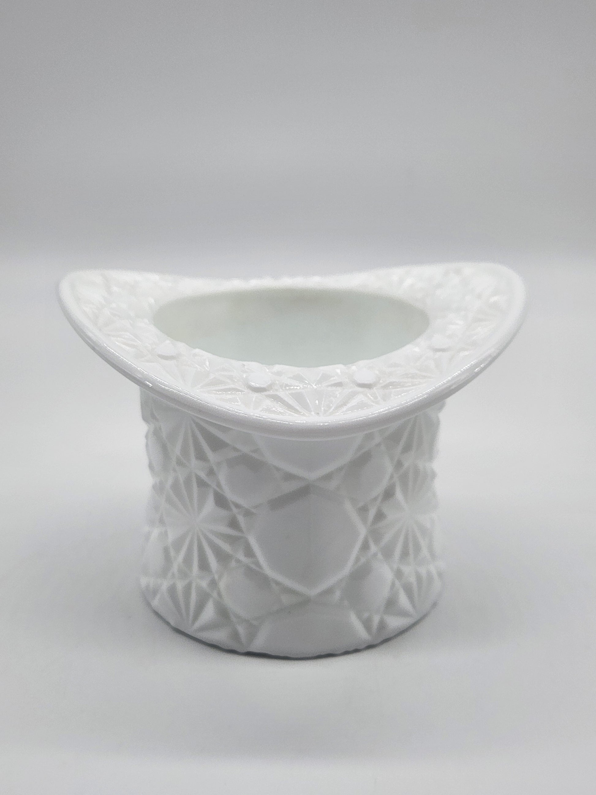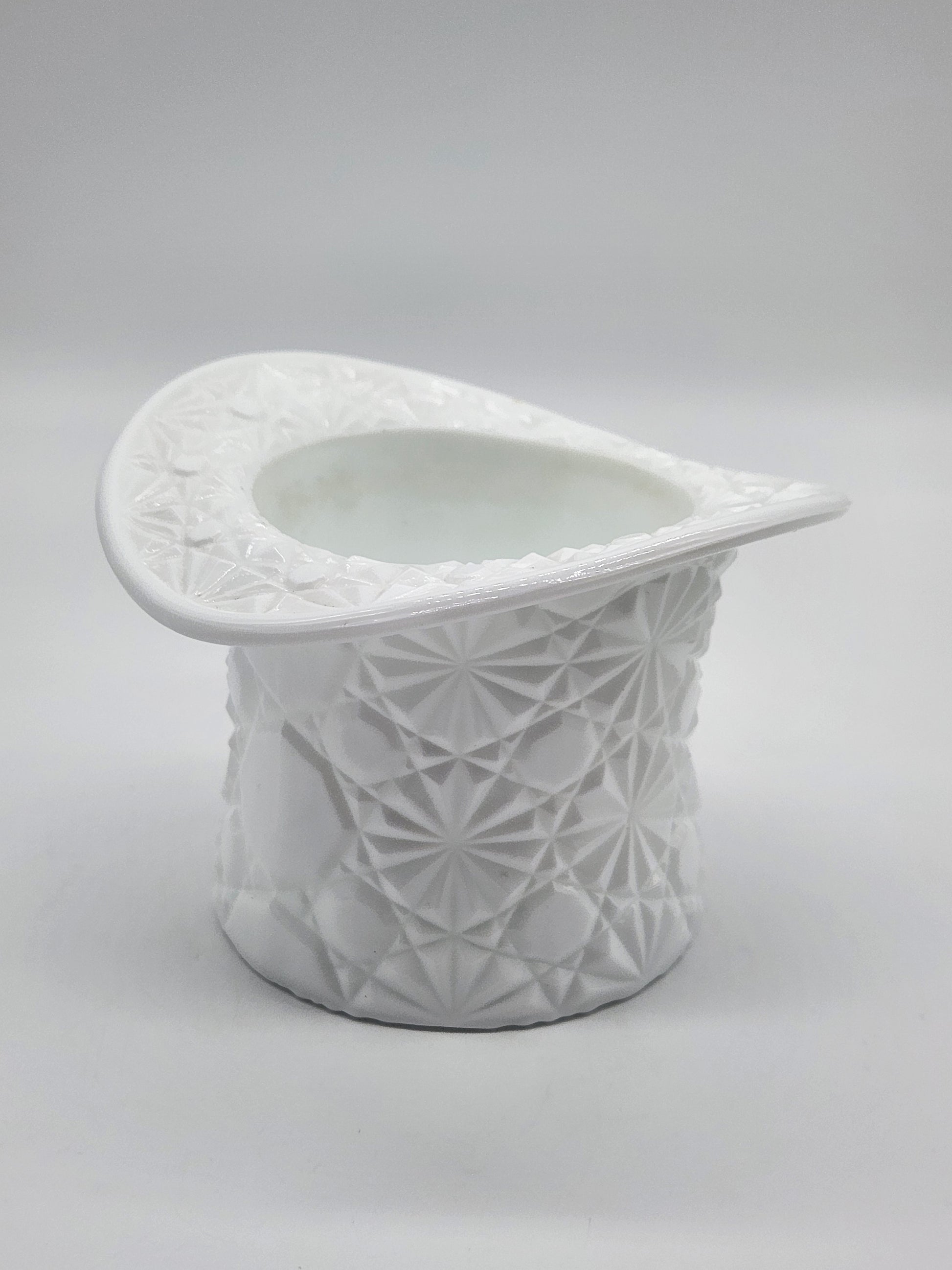 Vintage White Milk Glass Daisy & Button Top Hat