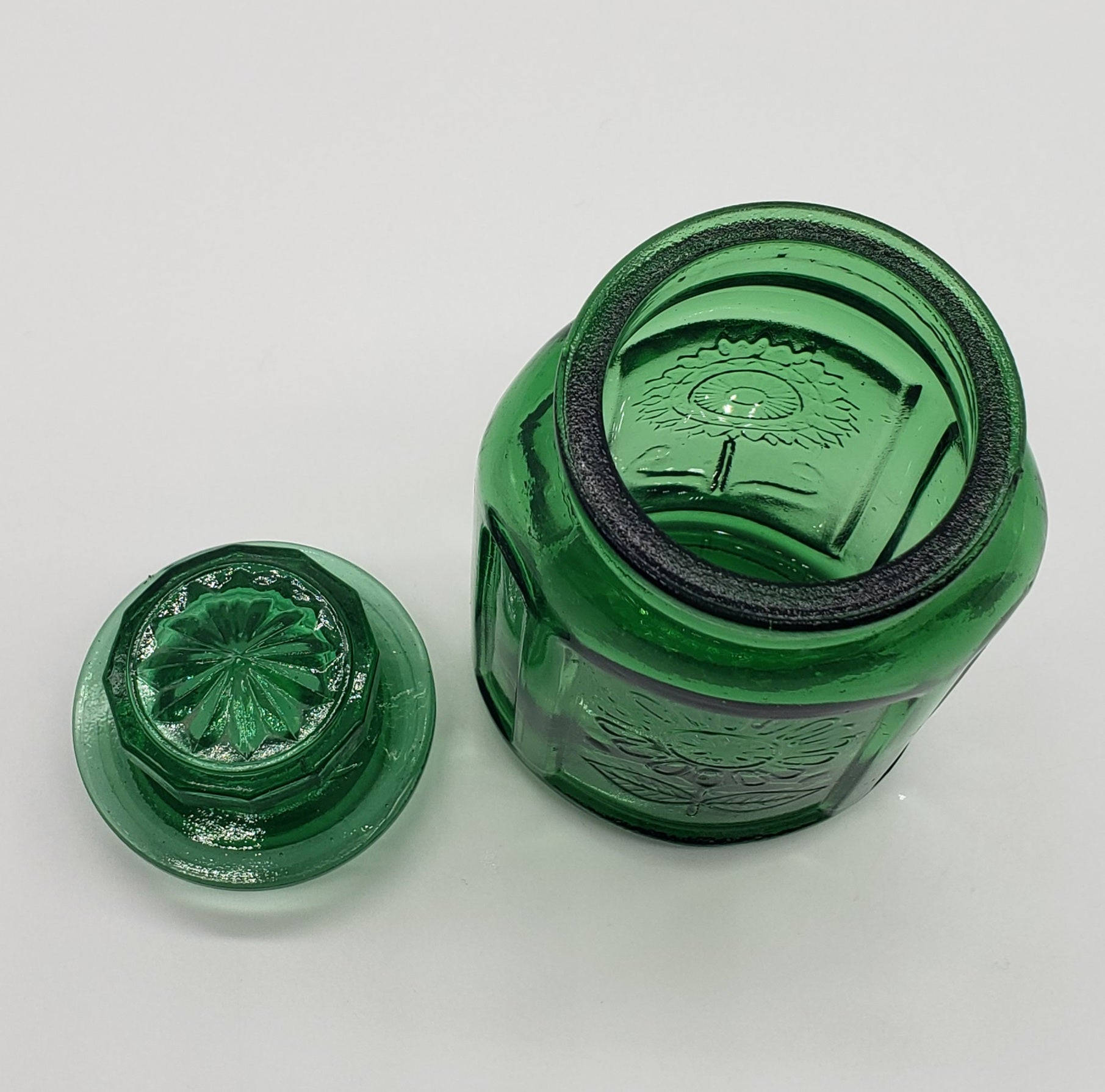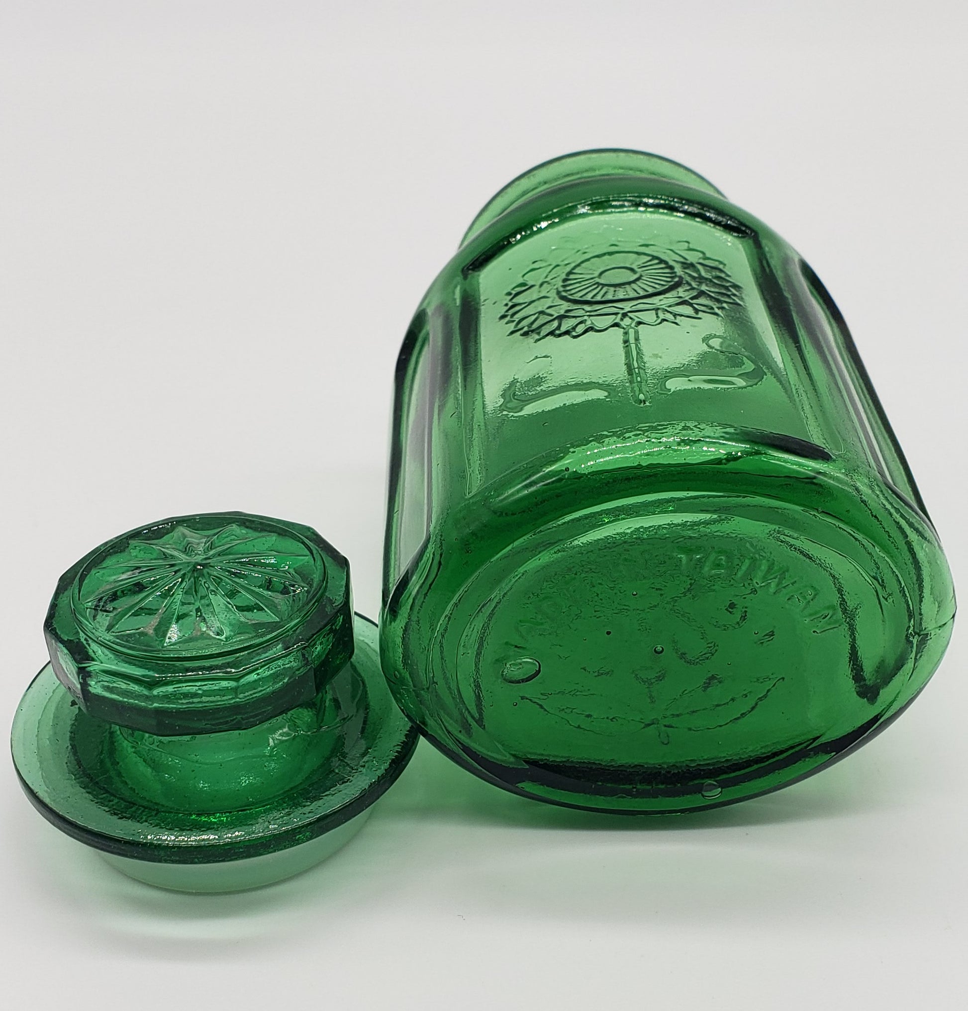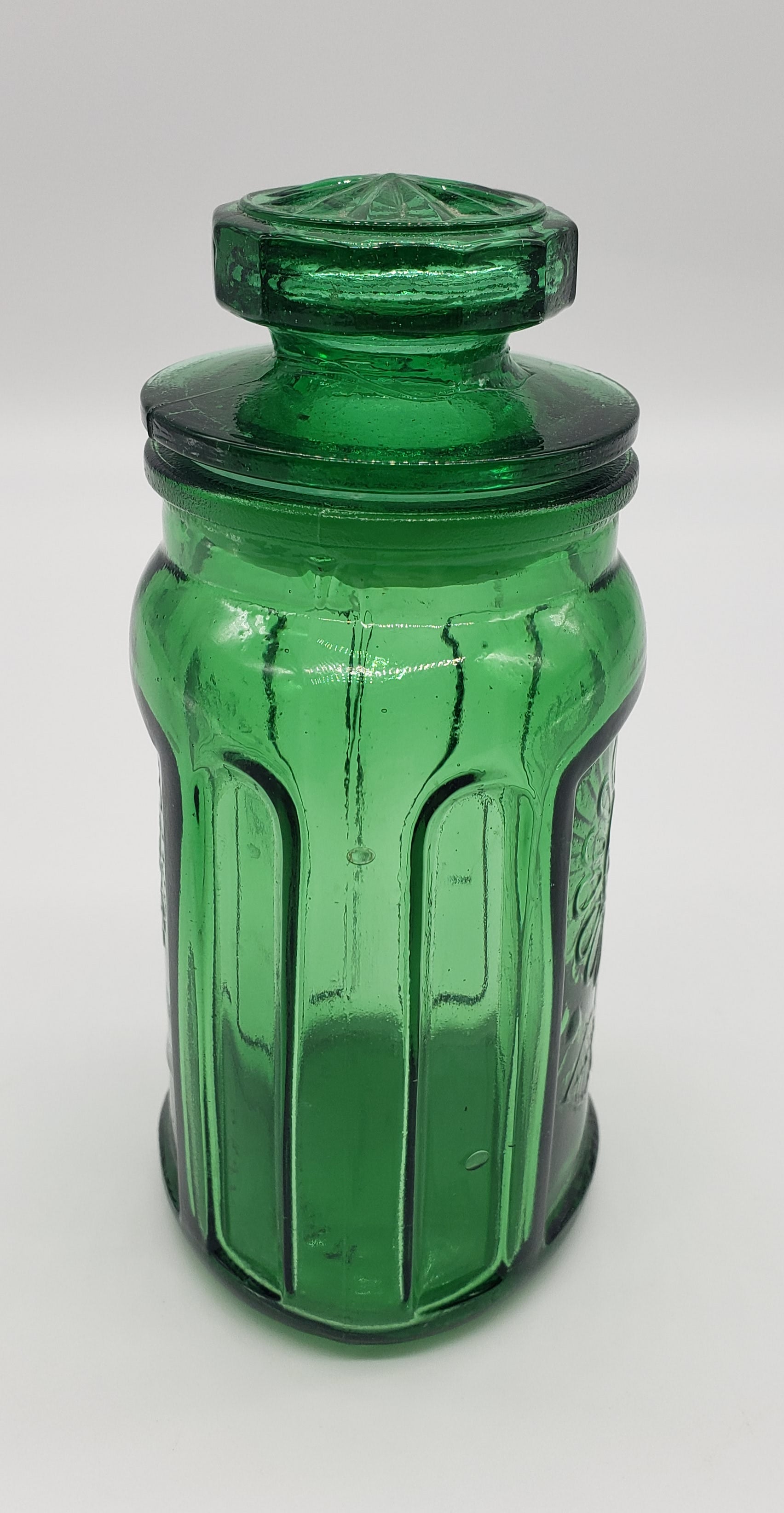 Wheaton Pressed Glass Emerald Green Sunflower Jar