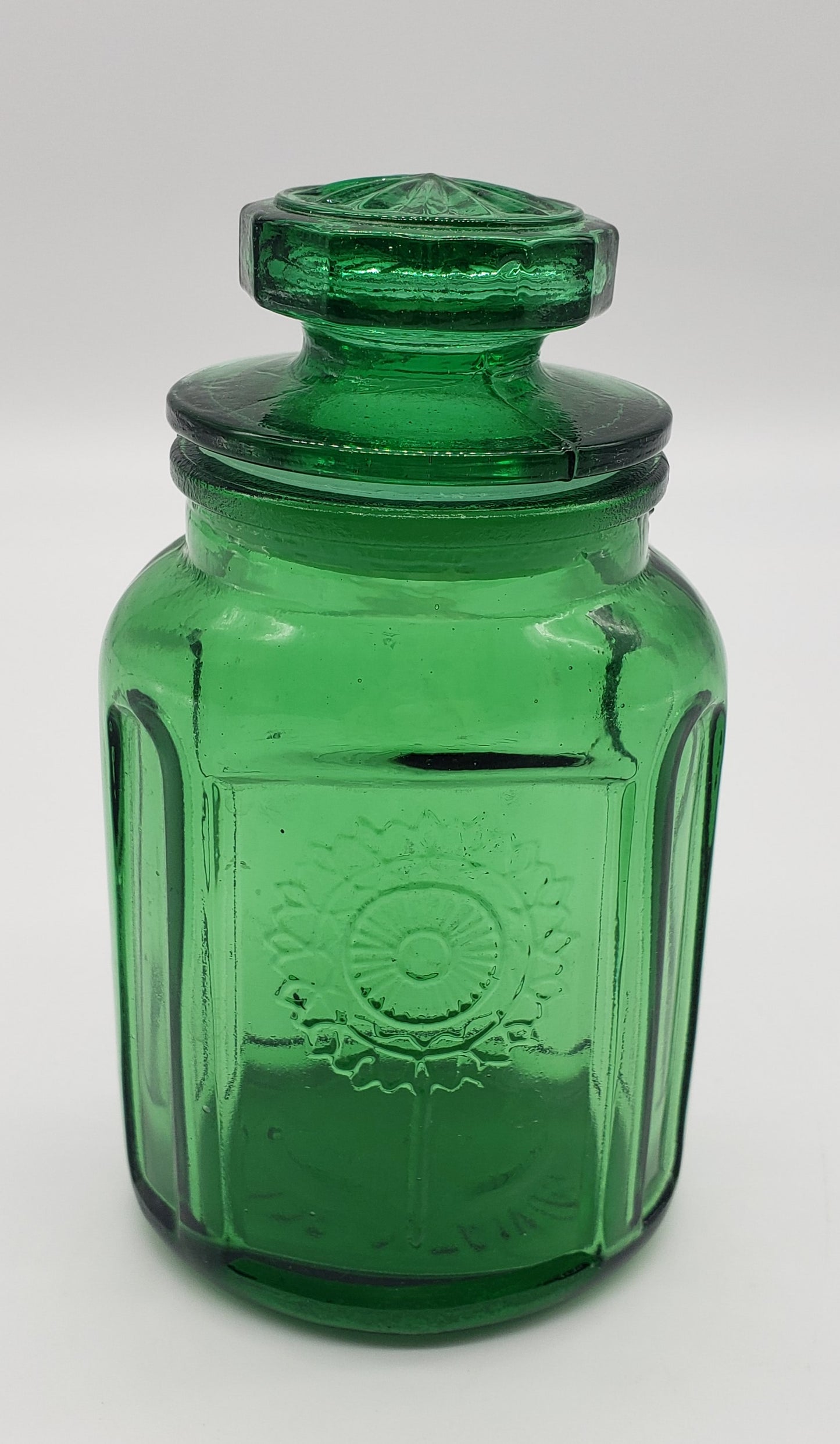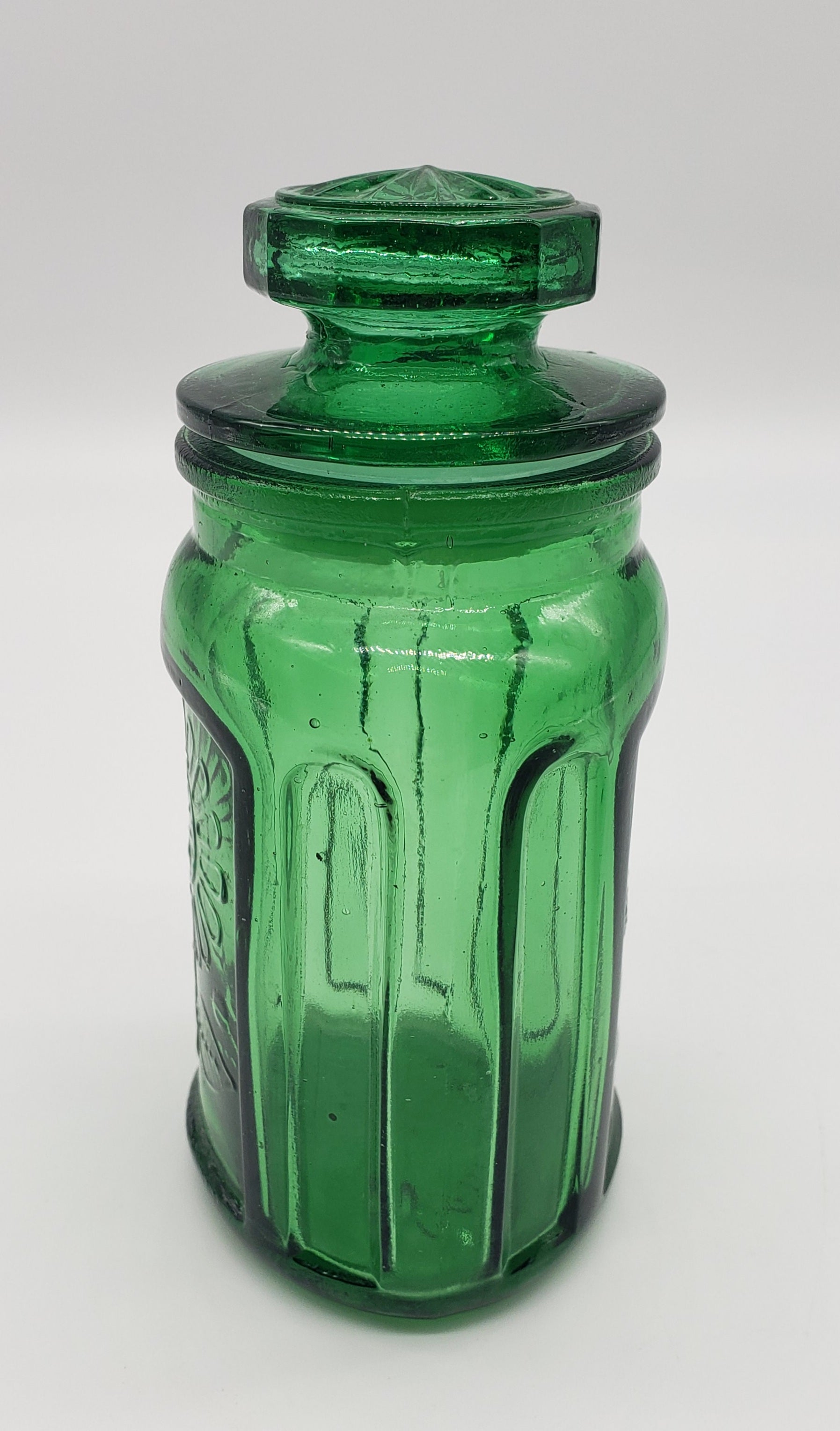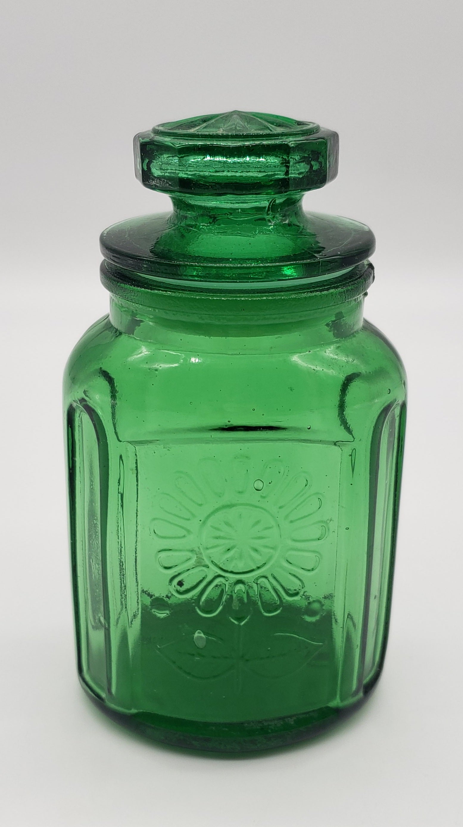 Wheaton Pressed Glass Emerald Green Sunflower Jar