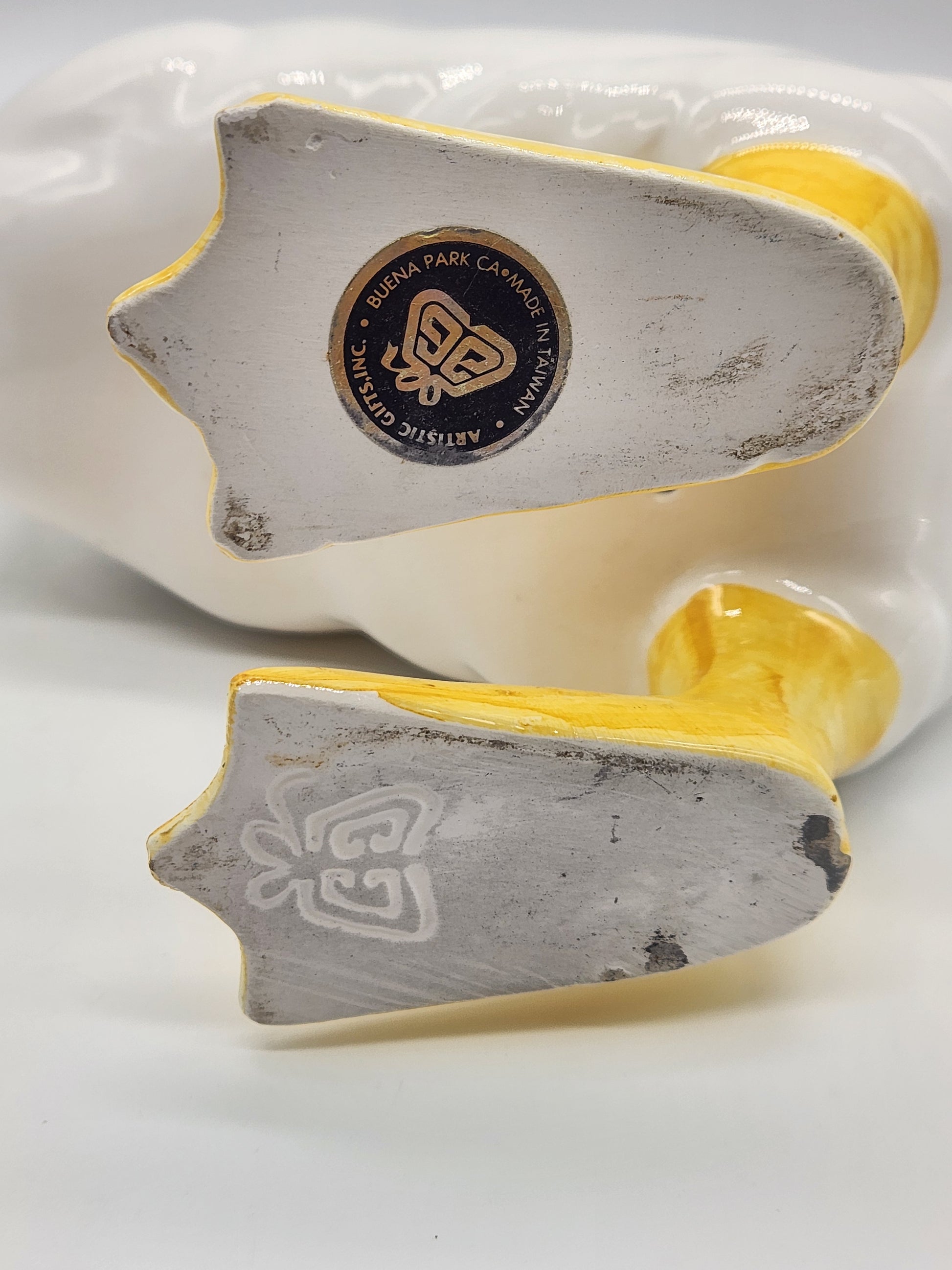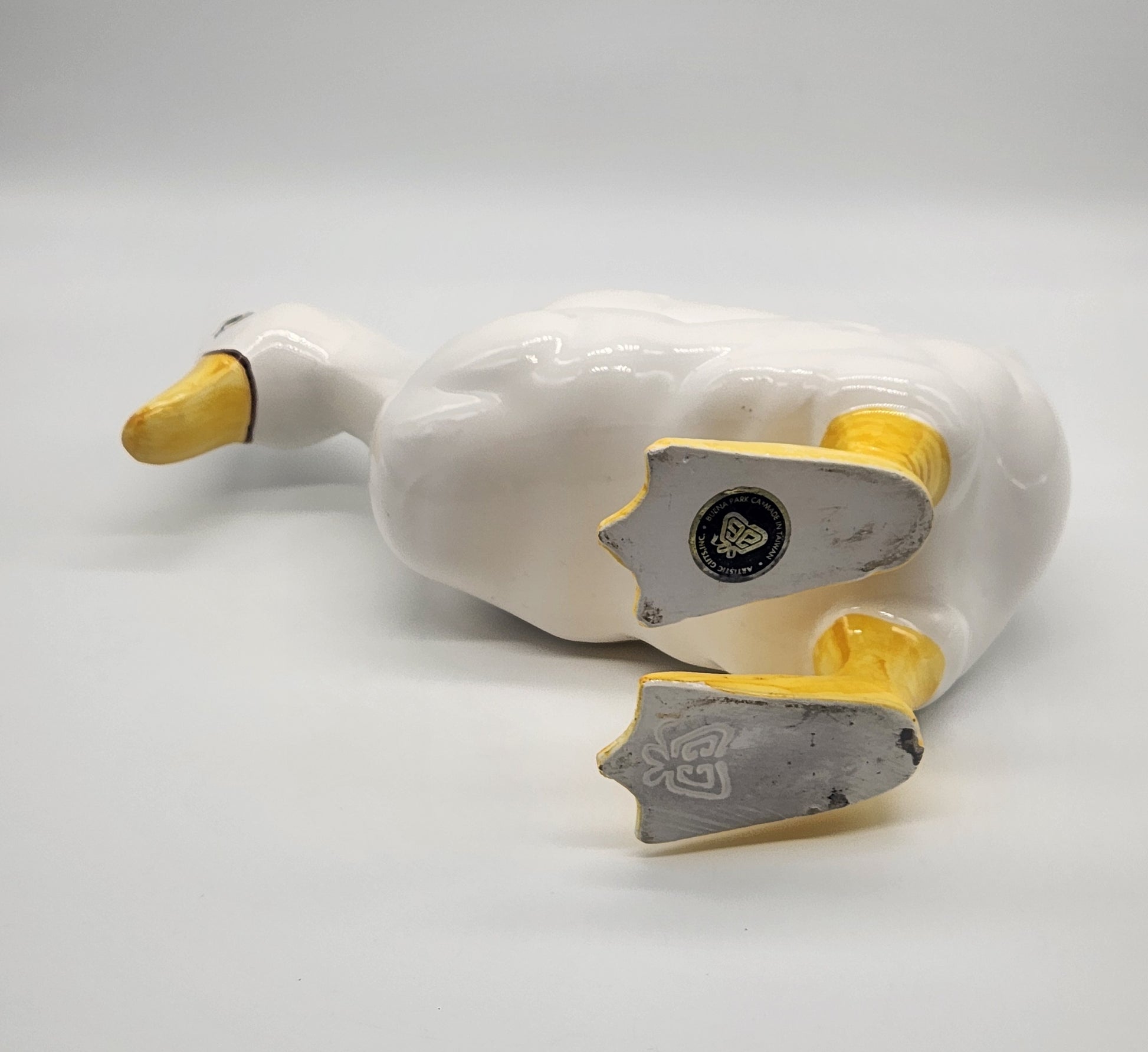 White Ceramic Duck Goose Figurine Statue Artistic Gifts AG Taiwan Signed